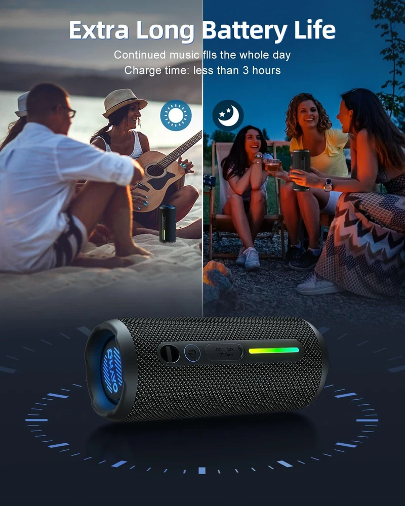 OHAYO Portable Bluetooth Speaker, Wireless Bass Speaker with 24W Loud Sound, IPX7 Waterproof, Bluetooth 5.3, RGB Lights, AUX&TF-Card, Stereo Pairing, Gift Ideas for Home/Outdoor/Party 【Portable Speaker&Powerful Bass】OHAYO bluetooth speakers are small in size, with a 5200mAh battery capacity.The portable bluetooth speaker features an in-house tuned digital signal processor that analyzes low frequencies to intensify the song’s bass in real-time. 【IPX7 Waterproof&Rugged Design】Being IPX7 waterproof, the OHAYO wireless bluetooth speaker is protected against rain, spills, and splashes, and can even survive submersion in up to 3.3 feet of water for up to 30 minutes. Engineered to withstand bumps and drops, it is more durable than others and compact enough to hold. Perfect for taking to pool parties, beach parties, barbecues, biking, hiking, camping, etc. 【Strong Bluetooth 5.3 Signal】OHAYO wireless bluetooth waterproof speaker can connect to devices from up to 66 feet away, even in difficult conditions without signal disturbance. The bluetooth 5.3 chip easily reads music playlists and connects to any device such as smartphones, PCs and laptops. It supports TF card and AUX, making it a great wireless bluetooth speaker for travel, party and home. 【True Wireless Stereo 】The speaker delivers surprisingly loud and well-balanced sound through 2 drivers and our proprietary technology. Enjoy up to 24W of room-filling sound with punchy bass, strong midranges, and crisp highs. Pair 2 speakers together via bluetooth to play the same music in perfect sync, doubling the volume and creating an immersive stereo sound experience. It is your perfect partner for playing games, listening to music and watching movies. 【RGB Colorful Light Show】The wireless bluetooth speaker with light is not only a speaker but also a unique night theme light, providing different color-changing themes. Using OHAYO bluetooth speakers, you get a totally reimagined rainbow light show that pulses, phases, and shines to the beat of your music. While you enjoy music, the gradient lights truly bring a party atmosphere. 【2 Professional EQ Modes】You just need to press the on/off button twice continuously to enjoy the switch between bass mode and music mode, thus enriching your music experience and finding the best sound for your ears! 【A Great Gift Choice】 OHAYO speakers not only have excellent sound quality but also feature an exquisite and fashionable design that is very creative. These speakers make perfect gifts for men, women, yourself, teenagers, girls, boys, mothers, fathers, friends, teachers, and more on Christmas Day, New Year, Valentine's Day, birthdays, Father's Day, Mother's Day, the school season, graduation season, and other occasions. SHIPPING Domestic Buyers - We have confidence in our products, but if you are not fully satisfied please contact us within 30 days of purchase and you will get full refund. - We ship within 3 business days of payment, usually sooner - We offer FREE shipping on all orders! - We only ship to the lower 48 states, no APO/FPO addresses or PO Boxes allowed International buyers – please note: Import duties, taxes, and charges aren't included in the item price or postage cost. These charges are the buyer's responsibility. - Please check with your country's customs office to determine what these additional costs will be prior to bidding or buying. * Order Cancellation Policy ** You can return a product for up to 30 days from the date you purchased it. 1. The seller reserves the right to cancel the special case only due to eBay cancellation fee. 2. The decision of seller is the final. 3. The seller will respond to the cancellation request within 2 business days. Please wait for the result of cancellation. 4. In case the cancellation is not completed by some reasons, the buyer can follow the options below to get the refund. 4.1 The buyer can reject the item when it arrives. 4.2 The buyer can send the item back to the seller within 30 days If the buyer receives item (USA Shipment ONLY). The seller will provide the FREE return label to the buyer when the buyer opens " Return Item" case on eBay by using the reason as "Change my mind" ONLY. 5. When buyer has placed the order. The order will be processed and completed by automatic warehouse system within 5 minutes. In case that buyer sends the cancellation request after 5 minutes of placing the order, the request will be rejected. **Sending direct message to cancel the order is not allowed for every case.* Return Policy For the return case - If buyer would like to return the items for refund or replacement, please CONTACT SELLER to receive the free return label from seller. The refund or replacement will be processed with the tracking number of return label which is provided by seller only. The other ways of return which are not approved by seller will not be processed for the refund or replacement.