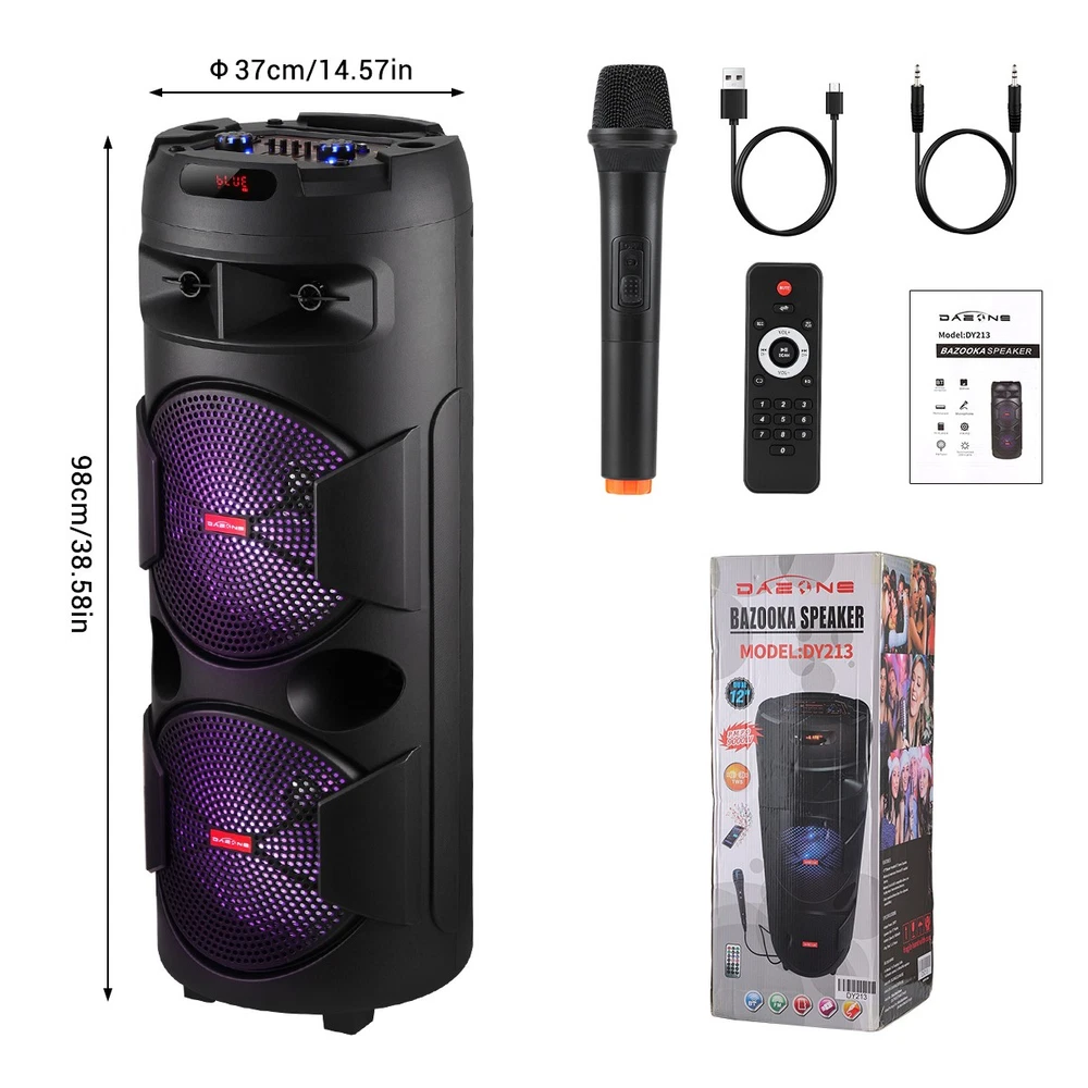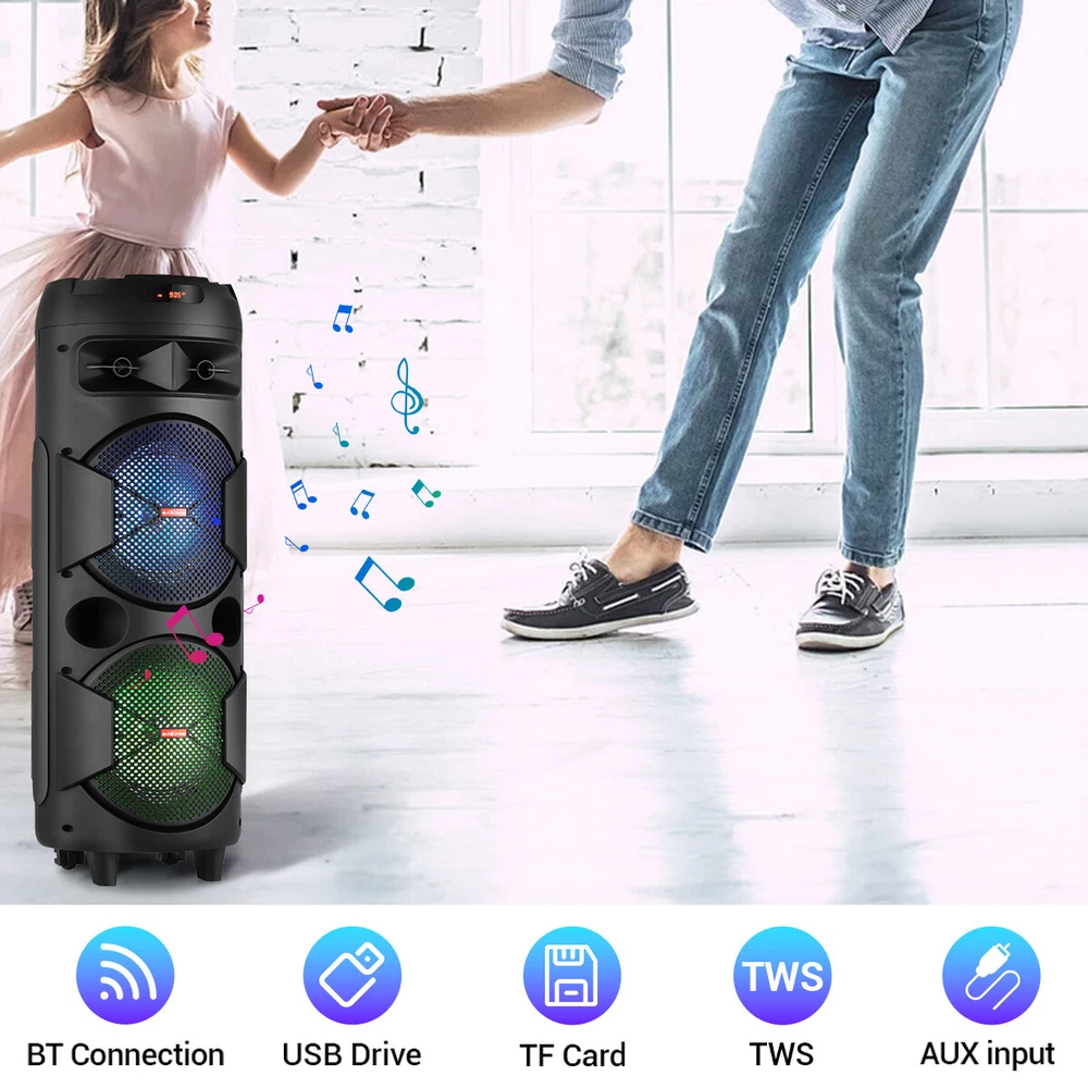 Portable Bluetooth Speaker Dual Subwoofer Party Heavy Bass Sound System w/Mic Feature: 【Dual 12''/8"/6.5" Speakers】 : Enjoy powerful sound with the speaker's 12''/ 8"/6.5" speakers, delivering rich and clear audio that fills the room. Whether it's your favorite tunes or energetic beats, the speaker ensures an immersive listening experience. 【Portable & Rechargeable Designed】 : Built-in rechargeable battery offers up to more than 5 hours of playtime, with heavy-duty top handle and telescopic carrying handle, you're free to take this speaker anywhere you go and throw up a party. 【Multi-Inputs】】 : Bluetooth Connectivity, USB, TF, FM, or AUX with Bass and Treble Controls. 【Colorful RGB Lights : Our Bluetooth karaoke speaker comes with two large disc-like RGB lights that change color and shape as music plays. It will arouse kids' interest and distract their attention from videos & games. Dynamic lights also let you feel energized and relaxed. 【TWS Function】: Two speakers interconnect via Bluetooth and play together, offering enhanced bass and engaging atmosphere. 【Versatile Use】: Whether you're hosting a backyard barbecue, a house party, or a social gathering, the speaker is the ultimate party companion. Package Included: 1 X Party Bluetooth Speaker 1 X Charging cable 1 X AUX 3.5MM Cable 1 X Microphone 1 X Remote Control 1 X User Manual Return Feedback Contact us Shipping Warranty Return ✨️ For any return-regardless of the reason, kindly select “ Ordered by Mistake ” as the return reason. This helps us provide you with a 🆓 free return label promptly☺️ 📨 reach out to us directly rather than Left a negative feedback or initiating a return right away. Before leaving , could we kindly ask you to reach out to us first? Feedback Before leaving , could we kindly ask you to reach out to us first? We promise to do our very best to find a solution that works for you and ensures your satisfaction. On the other hand, if you’re happy with our product and service, we’d be so grateful if you could share your ⭐⭐ ⭐ ⭐ ⭐ Your kind words inspire us to keep improving and delivering the best experience possible. Thank you for your support—it means the world to us! 😊 Contact us ✨️ Direct Support First -If you encounter any issues after receiving your item, please 📨 reach out to us directly rather than Left a negative feedback or initiating a return right away. We’re here to help and ensure you have a great shopping experience—we’re on your side!😇 ✨️ About Shipping Delays: If your tracking information hasn’t updated for over 5 days or shows no shipment, please reach out to us first . We’ll happily resend your item or resolve the issue—no need to escalate via eBay. We’re here to help!😇 ✨️ We’ll happily resend your item or resolve the issue—no need to escalate via eBay. We’re here to help!😇 Shipping FREE SAME BUSINESS DAY MONDAY- FRIDAY SHIPPING FROM USA. All orders and payments received before 4PM EST (1PM PST) will be shipped the same business day. All other orders within 1 business day. No shipping on Weekends or US Public Holidays. No responsibility for any custom duty Shipping information will be updated when available. Warranty ✨️We proudly offer a 60-day warranty on all our products. ✨️Every item is brand new and ar rives in perfect working condition. 📨 reach out to us directly rather than Left a negative feedback or initiating a return right away.