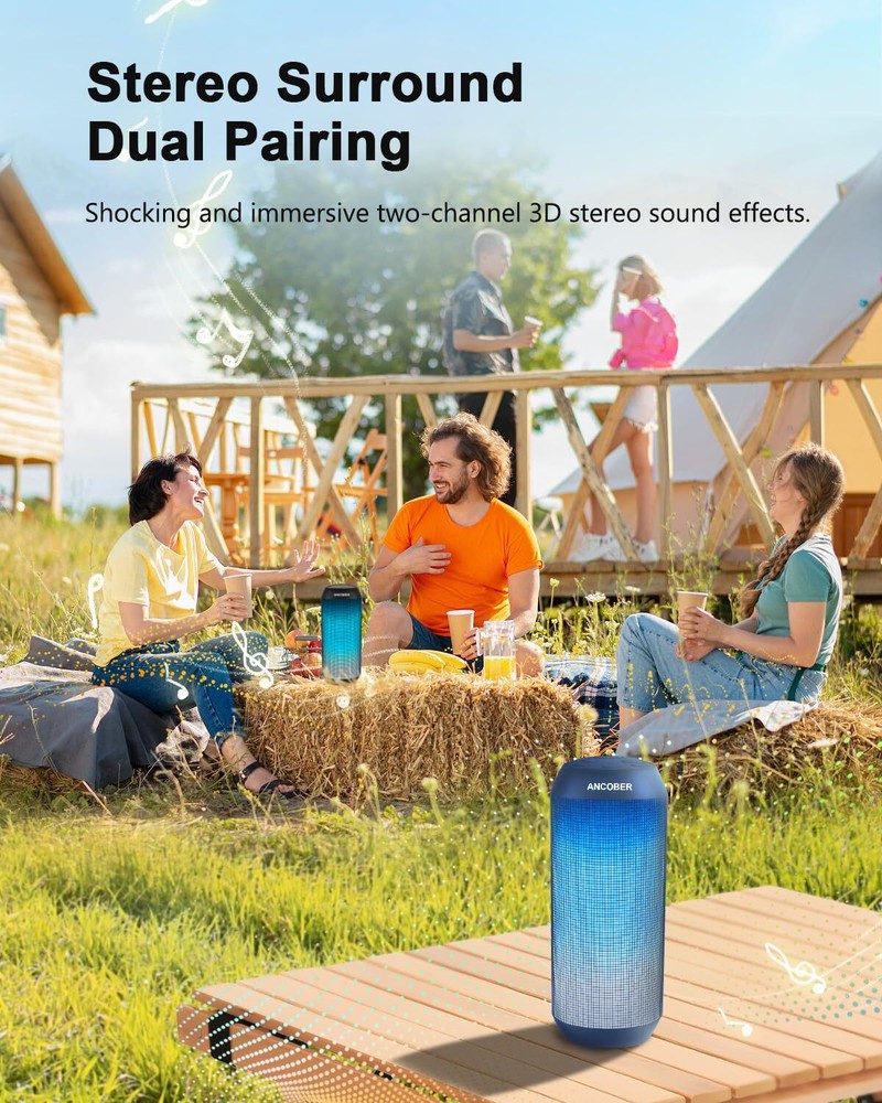 Bluetooth Speaker, Portable Wireless HD Stereo Sound with Cool Lights, IPX4 Waterproof, USB Rechargeable,TWS Pairing, for Party Outdoor Camping Travel Electronics Gadgets,Him Her Dad Boy Teens Gifts Crystal Clear Stereo Sound : Immerse yourself in the high-quality audio of the ANCOBER Bluetooth speaker, delivering crisp and crystal clear stereo sound for an enhanced listening experience. Compact and Portable Speaker : Designed for on-the-go convenience, the ANCOBER wireless speaker is compact and easy to carry, making it perfect for outdoor adventures, parties, or travel. Cool Dazzling Colorful Light Show : ANCOBER Bluetooth speakers are uniquely stylish and have a cool light design, you can enjoy multiple lighting modes that add a vibrant touch to your music listening sessions, creating a dynamic and visually appealing atmosphere for any party or gathering. Long Battery Life : With up to 12 hours of playtime at medium volume with lights off mode, this wireless portable speaker ensures uninterrupted entertainment wherever you go. Wide Compatibility : Benefit from the advanced Bluetooth 5.3 technology, offering wide compatibility and stable connectivity, easy to compatible with iPhone, Samsung, etc., for seamless pairing with your devices such as cell phones, computers, laptops, TVs, tablets, game consoles, projectors, and more. TWS Stereo Pairing : Experience immersive surround sound with True Wireless Stereo (TWS) pairing, creating a dual-channel surround sound effect by connecting two speakers for a more engaging audio experience. USB C Rechargeable : Stay powered up with the convenience of USB C charging, allowing you to quickly and efficiently charge this wireless speaker. (Full charge time: 4 hours) Built-in Microphone for Calls : Take hands-free calls with the built-in microphone, allowing you to stay connected while on the move by this wireless Bluetooth speaker whether you're cooking, working or playing. IPX4 Waterproof : Built to withstand splashes and light rain, the IPX4 waterproof rating ensures the speaker remains protected in outdoor or shower environments. Perfect Gift : With its impressive features and stylish design, the ANCOBER Wireless Portable Bluetooth speaker makes for a ideal gift for music and outdoor lovers, him, her, and teens on holidays, birthdays, or any special occasion. SHIPPING Domestic Buyers - We have confidence in our products, but if you are not fully satisfied please contact us within 30 days of purchase and you will get full refund. - We ship within 3 business days of payment, usually sooner - We offer FREE shipping on all orders! - We only ship to the lower 48 states, no APO/FPO addresses or PO Boxes allowed International buyers – please note: Import duties, taxes, and charges aren't included in the item price or postage cost. These charges are the buyer's responsibility. - Please check with your country's customs office to determine what these additional costs will be prior to bidding or buying. * Order Cancellation Policy ** You can return a product for up to 30 days from the date you purchased it. 1. The seller reserves the right to cancel the special case only due to eBay cancellation fee. 2. The decision of seller is the final. 3. The seller will respond to the cancellation request within 2 business days. Please wait for the result of cancellation. 4. In case the cancellation is not completed by some reasons, the buyer can follow the options below to get the refund. 4.1 The buyer can reject the item when it arrives. 4.2 The buyer can send the item back to the seller within 30 days If the buyer receives item (USA Shipment ONLY). The seller will provide the FREE return label to the buyer when the buyer opens " Return Item" case on eBay by using the reason as "Change my mind" ONLY. 5. When buyer has placed the order. The order will be processed and completed by automatic warehouse system within 5 minutes. In case that buyer sends the cancellation request after 5 minutes of placing the order, the request will be rejected. **Sending direct message to cancel the order is not allowed for every case.* Return Policy For the return case - If buyer would like to return the items for refund or replacement, please CONTACT SELLER to receive the free return label from seller. The refund or replacement will be processed with the tracking number of return label which is provided by seller only. The other ways of return which are not approved by seller will not be processed for the refund or replacement.