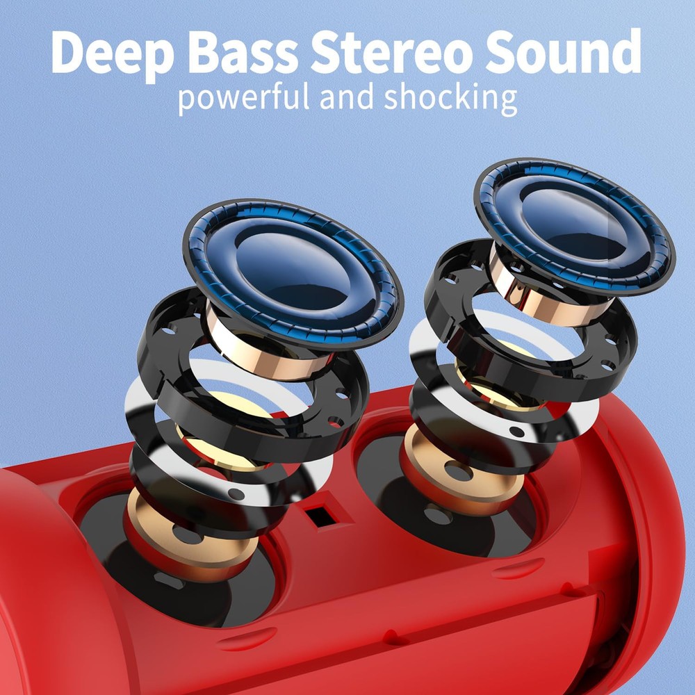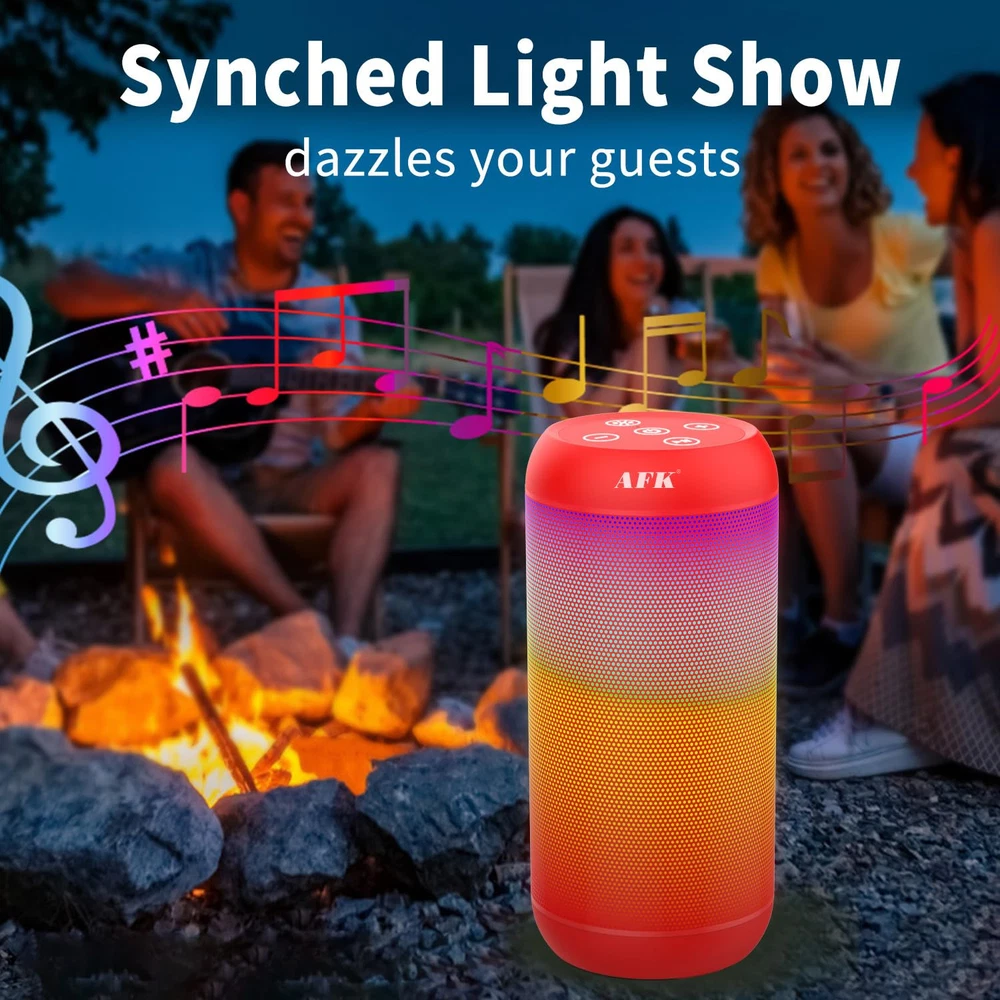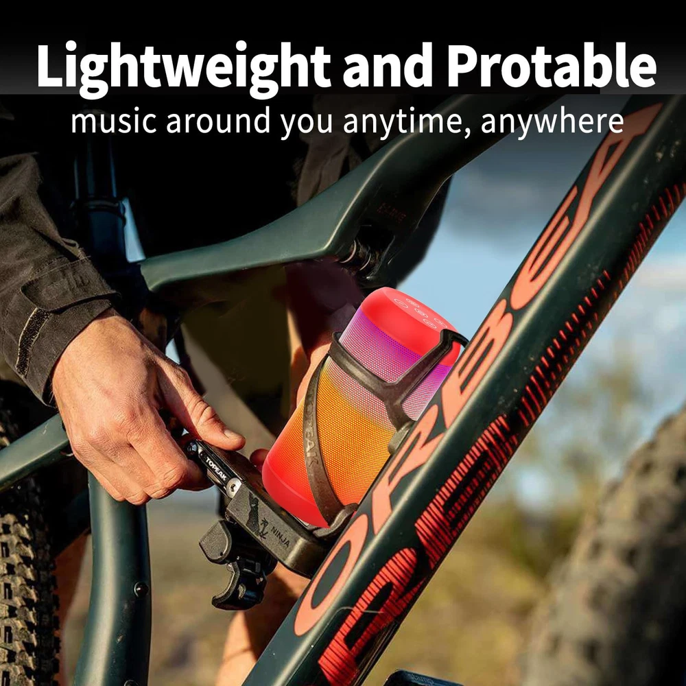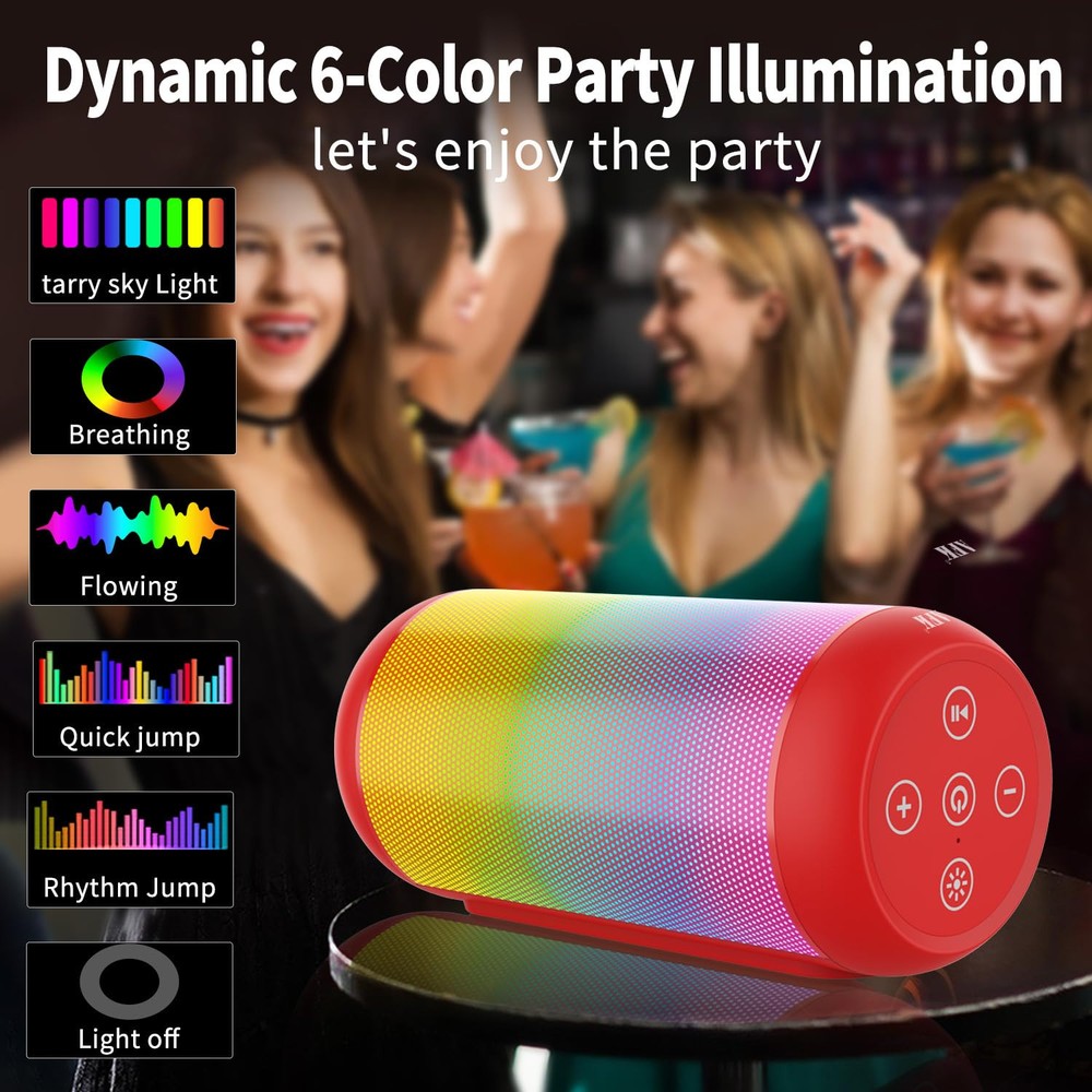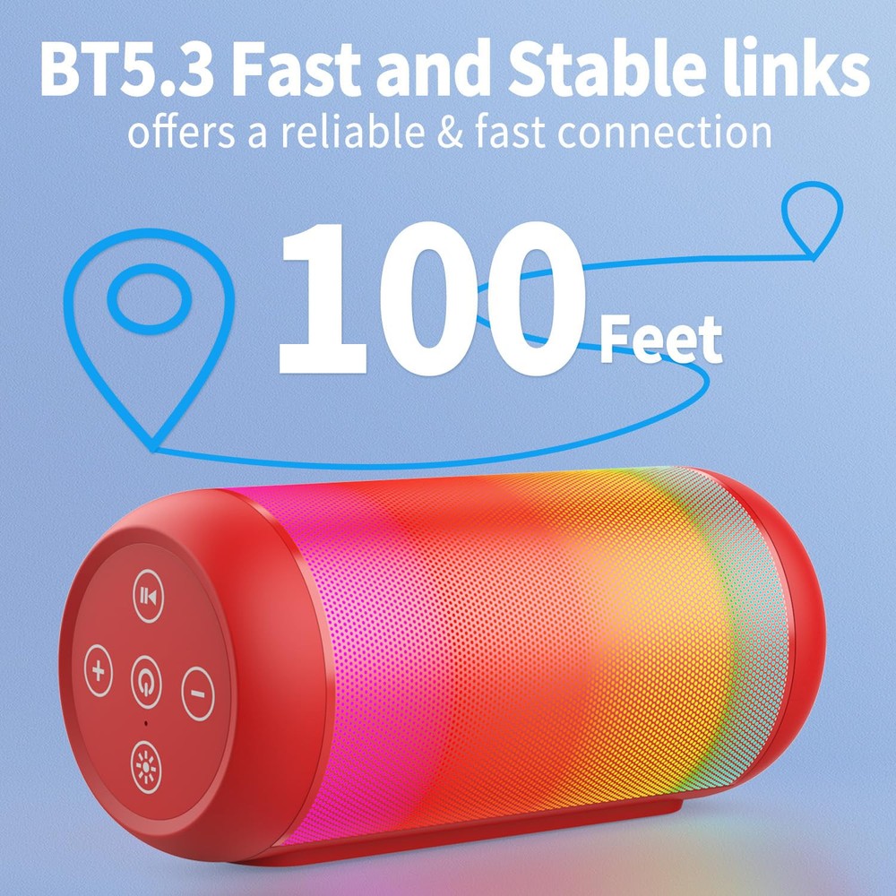 【Wireless Speaker with Bluetooth】 With dual speaker drivers and a more powerful amplifier module,Enjoy up to 15W room-filling sound with punchy bass, strong midranges, and crisp highs. 【Outdoor Portable Speaker 】Rechargeable bluetooth speaker portable wireless playback via Bluetooth, TF card or USB, ideal for any setting. You can carry it anywhere outdoors and indoors including camping, hiking, biking, office, etc. 【Music with Dynamic Lights】The portable bluetooth speakers features built-in with 5 RGB light colors and 6 light modes, mixed color flashes that sync with the beat, create a vibrant and immersive audio experience. 【Battery lastes long time】Enjoy a full 18 hours of non-stop playback under 50% Volume, and up to 4 hours under 100% Volume. The lights can be TURN OFF and that the actual playtime can vary depending on volume level, audio content, and usage. 【Plug and Play USB C Speaker】This is a portable bluetooth speaker with plug and play functionality and a USB-C charge port. Simply connect your device to the speaker via Bluetooth and start enjoying your favorite music without any complicated setup.