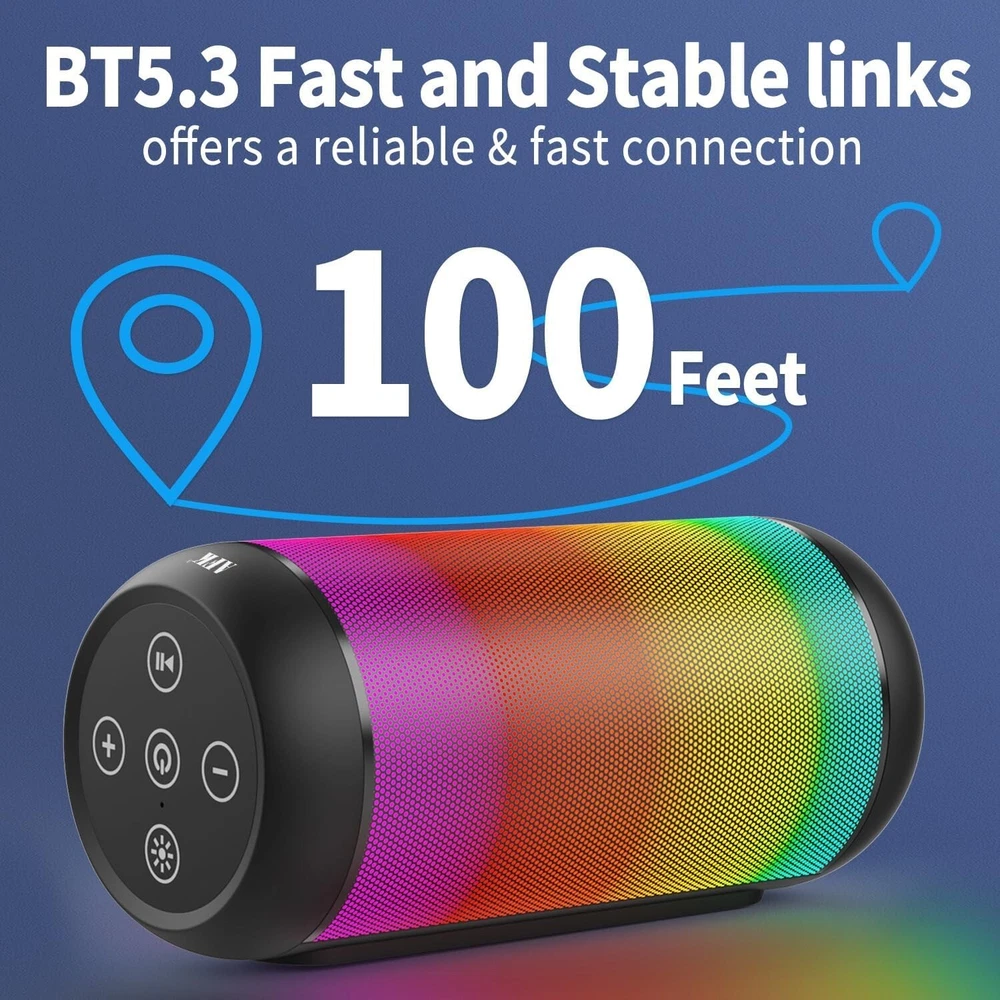 -Brand New - Never Used - Questions: Feel free to ask any Questions - BOX: Never Opened - DESCRIPTION:【Wireless Speaker with Bluetooth】 With dual speaker drivers and a more powerful amplifier module,Enjoy up to 15W room-filling sound with punchy bass, strong midranges, and crisp highs. 【Outdoor Portable Speaker 】Rechargeable bluetooth speaker portable wireless playback via Bluetooth, TF card or USB, ideal for any setting. You can carry it anywhere outdoors and indoors including camping, hiking, biking, office, etc. 【Music with Dynamic Lights】The portable bluetooth speakers features built-in with 5 RGB light colors and 6 light modes, mixed color flashes that sync with the beat, create a vibrant and immersive audio experience. 【Battery lastes long time】Enjoy a full 18 hours of non-stop playback under 50% Volume, and up to 4 hours under 100% Volume. The lights can be TURN OFF and that the actual playtime can vary depending on volume level, audio content, and usage. 【Plug and Play USB C Speaker】This is a portable bluetooth speaker with plug and play functionality and a USB-C charge port. Simply connect your device to the speaker via Bluetooth and start enjoying your favorite music without any complicated setup. - OFFERS: Reasonable offers are considered, LOWBALLERS, Best price and Lowest askers will be ignored - all sales final/no refunds/ no exchanges/ no returns - Disclaimer: I do not own the brand's trademarks, logos, pictures, or products posted. I do not intend to infringe on copyright. I find such content available on the internet. Contents are considered fair use. - Portable Bluetooth Wireless Speaker with RGB Lights, Loud Speaker with Stereo Sound,Speaker for Party, Home, Outdoor(Black)