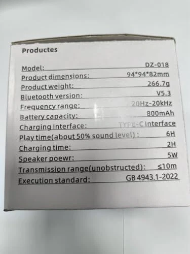 Bluetooth Speaker with Stereo Bass, Portable Speakers Bluetooth Wireless V5.3 with RGB Lights, TF-Card USB, Double Pairing, 4H Playtime, IP7 Waterproof Speakers for Travel Party Home Theater Outdoor Immersive Sound Experience: The DZ-018 Bluetooth speaker is equipped with a 45mm aluminum alloy bass diaphragm and an innovative four-unit cavity design, delivering crisp highs, detailed mids, and deep, powerful lows for a rich and layered sound. Additionally, the portable speaker supports true wireless stereo technology, allowing you to connect two speakers simultaneously to easily create a surround sound effect, providing an unparalleled, immersive audio experience Cool Light Show: The portable Bluetooth speakers feature 7 dynamic color-changing modes, with lights that pulse in sync with the beat of your music, instantly adding vibrant energy to your party. Simply press the light button to easily customize the lighting effects, adjusting both the color and rhythm to perfectly match your mood and setting. Whether you're hosting a lively gathering or enjoying a relaxing music session, it creates a unique audiovisual experience that enhances any occasion Bluetooth 5.3 and Wide Compatibility: The wireless speaker is equipped with advanced Bluetooth 5.3 technology, ensuring you enjoy a smoother and more stable music playback experience. Say goodbye to signal loss and music interruptions and listen to every song with ease. This Bluetooth speaker is compatible with iOS 9.0/Android 5.0 and above smartphones and supports all Bluetooth 4.0 and higher devices, including cell phones, tablets, PCs, laptops, etc., so you can enjoy quality music anytime! Long Playback Time: The PRSCFUM wireless Bluetooth speaker is powered by a durable 800mAh lithium battery, providing up to 4 hours of music playback with just 1.5 hours of charging (actual playtime may vary depending on volume, audio content, and usage). It features a built-in charging indicator, so you can easily check the battery status at any time. Additionally, the outdoor speakers are equipped with a TF card slot, offering more flexibility and variety for your music enjoyment IPX7 Waterproof and Compact: This waterproof speaker is made of rugged ABS material with impact, high and low temperature resistance, ensuring stable operation in various environments. Its compact and lightweight design (94*94*82mm) makes it easy to carry. Meanwhile, the Bluetooth speaker has IPX7 waterproof performance, which prevents splashing and soaking, perfectly adapting to outdoor use. Whether you are at a party, beach, camping or on a hiking trip, this speaker is your ideal companion SHIPPING Domestic Buyers - We have confidence in our products, but if you are not fully satisfied please contact us within 30 days of purchase and you will get full refund. - We ship within 3 business days of payment, usually sooner - We offer FREE shipping on all orders! - We only ship to the lower 48 states, no APO/FPO addresses or PO Boxes allowed International buyers – please note: Import duties, taxes, and charges aren't included in the item price or postage cost. These charges are the buyer's responsibility. - Please check with your country's customs office to determine what these additional costs will be prior to bidding or buying. * Order Cancellation Policy ** You can return a product for up to 30 days from the date you purchased it. 1. The seller reserves the right to cancel the special case only due to eBay cancellation fee. 2. The decision of seller is the final. 3. The seller will respond to the cancellation request within 2 business days. Please wait for the result of cancellation. 4. In case the cancellation is not completed by some reasons, the buyer can follow the options below to get the refund. 4.1 The buyer can reject the item when it arrives. 4.2 The buyer can send the item back to the seller within 30 days If the buyer receives item (USA Shipment ONLY). The seller will provide the FREE return label to the buyer when the buyer opens " Return Item" case on eBay by using the reason as "Change my mind" ONLY. 5. When buyer has placed the order. The order will be processed and completed by automatic warehouse system within 5 minutes. In case that buyer sends the cancellation request after 5 minutes of placing the order, the request will be rejected. **Sending direct message to cancel the order is not allowed for every case.* Return Policy For the return case - If buyer would like to return the items for refund or replacement, please CONTACT SELLER to receive the free return label from seller. The refund or replacement will be processed with the tracking number of return label which is provided by seller only. The other ways of return which are not approved by seller will not be processed for the refund or replacement.