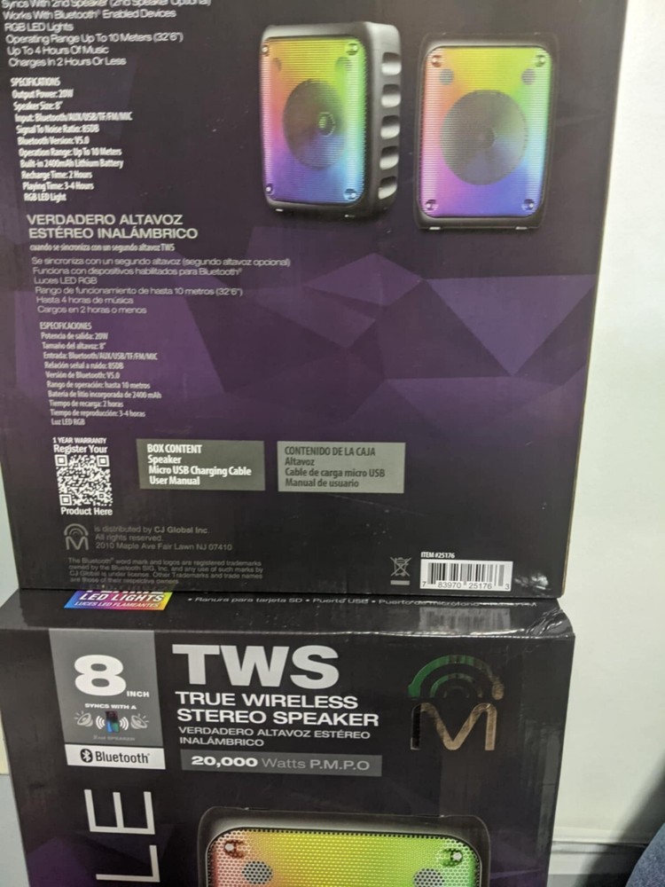 15β TALL Portable Bluetooth Speaker π20000W π20000W POWERFUL SOUND HEAVY SPEAKER 8 POUNDS Feature: 1.Stereo Sound: The stereo sound can make you feel better music quality, and its strong penetration brings you an unprecedented listening experience. 2.Pretty Appearance: Its pretty appearance is suitable for all kinds of occasions, such as shopping mall, bar, various parties, etc. 3.Long Lasting Life: The bluetooth speaker can play for 4 hours, you can enjoy your party without worrying about charging. 4.Wireless Bluetooth Speaker: You can stream music directly from your mobile device via bluetooth, the bluetooth is compatible with most devices in the market. 5.Portable Design: Travel box design, you can easily take it to anywhere you want and enjoy music there. 6.Support USB/AUX/TF Card: You can also play music through USB/AUX/TF card, simple and convenient. Specification: Control Distance: 10m Product Size: 15 " 9" 10" Weight: 8 POUNDS AUX Port: 6.5mm Peak power outpet: 20000W Charging: USB Rechargeable Package Included: 1 * Bluetooth Speaker 1 * Charging Cable 1 * MANUAL