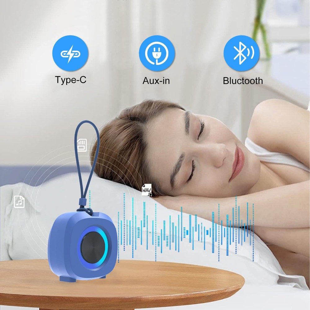 Portable Bluetooth Speakers, RGB Lights TWS Speakers,Wireless IPX5 Waterproof Mini Speaker with Loud Stereo Sound,15 Hours Playtime, Rechargeable Battery, Black.IPX5 WATERPROOF BLUETOOTH SOUNDER This portable wireless speaker is designed with IPX5, with good protection against rain and splash, you can enjoy your music in the pool, beach, bathroom and other places.with high-quality speakers, the sound quality is thick and bass-enhanced, far beyond its size. Bring you a loud and clear sound experience. You can maintain uninterrupted use for more than 6-8 hours.Designed for the night, the RGB lights are colored to synchronize with the beat, shine with any song, and keep the party going with HD streaming music. Perfect for hosting a party! Small and exquisite appearance, with a lanyard, let you go out to carry more convenient, the lanyard can be hung in many places to use.This Bluetooth speaker comes with Bluetooth 5.0 , which accepts signals faster, allowing you to link to this Bluetooth speaker faster. 【IPX5】 IPX5 WATERPROOF BLUETOOTH SOUNDER This portable wireless speaker is designed with IPX5, with good protection against rain and splash, you can enjoy your music in the pool, beach, bathroom and other places. 【Long lasting battery】 with high-quality speakers, the sound quality is thick and bass-enhanced, far beyond its size. Bring you a loud and clear sound experience. You can maintain uninterrupted use for more than 6-8 hours. 【RBG light】 Designed for the night, the RGB lights are colored to synchronize with the beat, shine with any song, and keep the party going with HD streaming music. Perfect for hosting a party! 【Exquisite appearance】 Small and exquisite appearance, with a lanyard, let you go out to carry more convenient, the lanyard can be hung in many places to use. 【Bluetooth 5.0】 This Bluetooth speaker comes with Bluetooth 5.0 , which accepts signals faster, allowing you to link to this Bluetooth speaker faster.