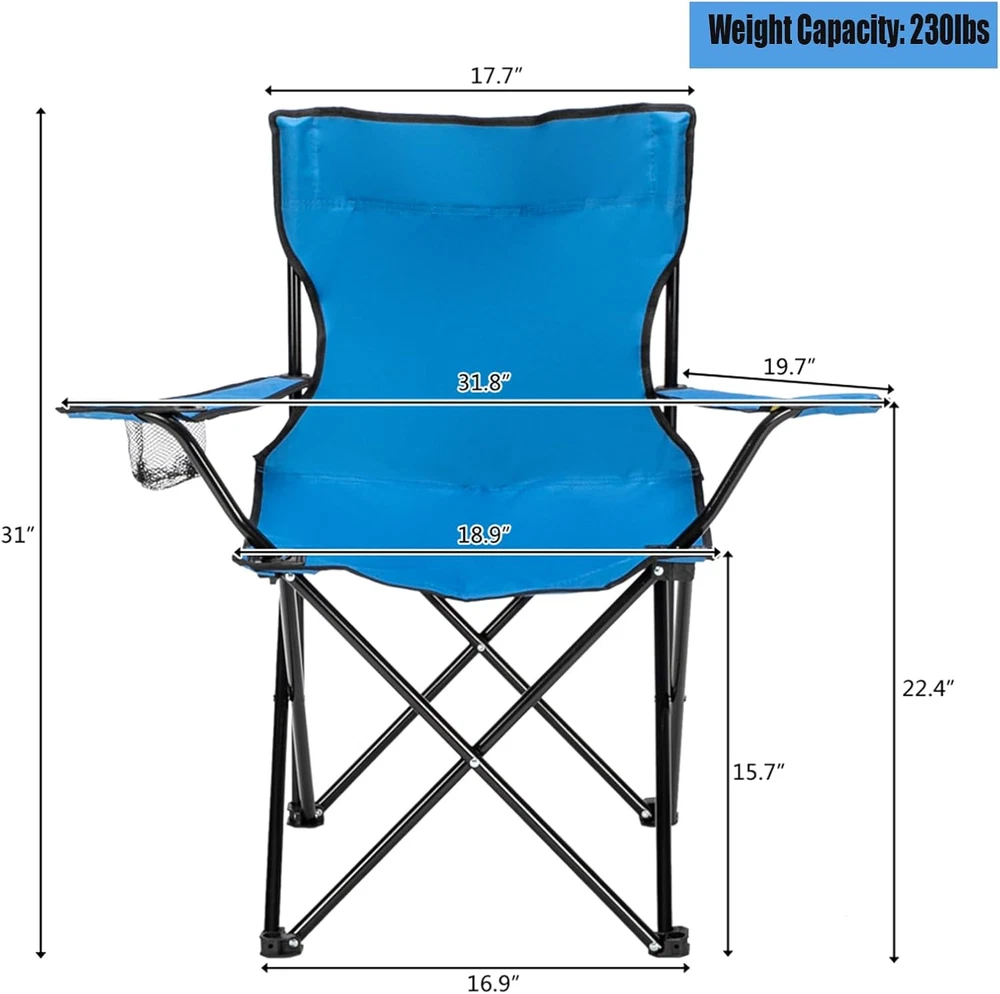 Menu Other Items Feedbacks About Us Contact Us Add To Favorites Portable Camping Chairs Enjoy the Outdoors with a Versatile Folding Chair,Sports Chair,Outdoor Chair & Lawn Chair, Ideal for Camping, Hiking,Backpacking,Beach,Fishing and Picnics with Carry Bag,Blue 🍀[Folding Camping Chairs for Adults]:Our outdoor chairs are constructed using high-density 600D Oxford fabric,which is resistant to weather conditions,long-lasting, and easy to clean.Using engineering mechanics design, the force is uniform and very stable. Lawn chairs carry up to 232 pounds and are suitable for most people. 🍀[Lightweight Camping Chair]:The folding camping chair weighs 3.5lbs. So you can take it everywhere with ease. It comes with a carrying bag for easy travel and to make storage easy. Whether you're tailgating, camping or watching your favorite sports team, the collapsible lounge chair is the perfect choice for you. 🍀[Oversized Dimensions]:Camp Chair Overall Dimension:32" x 19" x 31" ,Weight: 3.5lbs .Seat Depth:47cm/18.5" .Seat Height: 42cm/16.54" inch.Seat Width: 50cm/19.9" 🍀[Convenient & Versatility]:Camping chair comes with arm rest with a built-in cup holder for keeping beverages close at hand.Carry bag included for easy transport and storage. Just make your camping enjoyable and hassle-free. Ideal for patio, lawn, beach, fishing, picnic, travel, camp, hiking, backpacking, tailgating, mountaineering, music festival, park, BBQ, road trip, adventuring and anyone looking for lightweight travel without the bulk. 🍀[Folding Compact Camping Chairs]:Camping chair is easy to set up & fold in seconds and You're ready to go! It’s a long lasting camping folding chairs to enjoy outdoors. IDEAL CHOICE & DECENT GIFT for backpackers, hikers, concertgoers, campers and anyone looking for comfort without the bulk. Any problem please feel free to contact. If you're enjoy camping or fishing, you can't miss this Small Camp Chair. This chair features durable, abrasion-resistant . With engineering mechanics design, it's very stable. Moreover, it's also easy to clean. Its small size and foldable design is very convenient for you to bring it outside. You can bring this chair at any place you like. So what are you waiting for? Don't hesitate, just take it home!Why choose our camping chairs?PortableEasy to set upCup holderConvenient carry bagFolds for storageFeatures:1. Made of high quality material, durable, abrasion-resistant2. Engineering mechanics design, stress evenly3. It is very simple to open and fold away4. Best gift choice for outdoor sports enthusiasts5. This chair provides an excellent form of relaxation when you plan to hunt, fish, or just enjoy the day on the beach, campingSpecifications: No assembly requiredSpecifications:1. Camping Chair Material: Iron Pipe 600D Oxford Cloth2. Color: Red/Blue3. Camping Chair Dimensions: 32" x 19" x 31"4. Weight: 3.5lbs / 1.59kg5. Seat Depth: 47cm/18.5"6. Seat Height: 42cm/16.54"7. Seat Width: 50cm/19.7"8. Camping Chair Load Bearing: 230lbs / 104.33kgPackage Includes:1 x Camp Chair1 x Outside BagNote: The size is measured by hand, there may be an error of 0.2-1 inch. Item Specification Item model number 03 Style Modern Pattern Solid Age Range (Description) Adult Product Dimensions 19.69"D x 19.69"W x 31.5"H Number of Cup Holders 1 Unit Count 1.0 Count Room Type Lawn, Outdoor, Tailgating, Camping, Sporting event Is Customizable No Tilting No Maximum Weight Recommendation 230 Pounds Model Name Camping Chairs Arm Style With arms Leg Style Straight Leg Finish Type Painted Included Components Carry Bag Indoor/Outdoor Usage Outdoor Chair Backrest Width 19.69 Inches Back Style Solid Back Item Weight 3.5 pounds Surface Recommendation Hard Floor Is Foldable Yes Special Feature Portable, Folding, Lightweight, Ergonomic, Cup Holders Reclining Position Count 1 Color Blue Form Factor Foldable Shape Rectangular Frame Material Iron Seat Material Type Oxford fabric Recommended Uses For Product Camping Material Iron Pipe 602D Oxford Cloth Item Weight 3.5 Pounds Seat Depth 18.5 inches Dimensions Shipping Returns Additional Info Product Dimensions: 19.69 "h x 19.69 "h x 31.5 "h. Weight: 3.5 lb Fast shipping is very important for us. Our standard shipping service is FREE. Your order will be shipped within 1-3 business days upon full payment received. Most items are delivered within 3-5 business days, however, please allow 3-10 business days. We are shipping only to USA. We only ship to the confirmed Paypal address. We reserve the right to cancel any order for any reason at any time. We are not responsible for undeliverable addresses. We offer a 30 day return policy from checkout winning date. Your satisfaction is guaranteed! If for any reason you are unhappy with your item, just return it within 30 days for a full refund, minus shipping cost. Please contact us prior to initiating a return so that we can issue you a refund authorization. Items defective upon receipt must be packaged in their retail packaging as if new and returned with a detailed description of the problem. Return shipping fees are not refundable. We reserve the right to decline any returns if the above guidelines are not followed. All of our items, unless otherwise stated, will only run on 120 volts. Please check to make sure your country complies with these specifications. If you have a problem or question regarding your transaction please contact us before leaving any type of feedback. We will work with you to resolve any problem you may have.