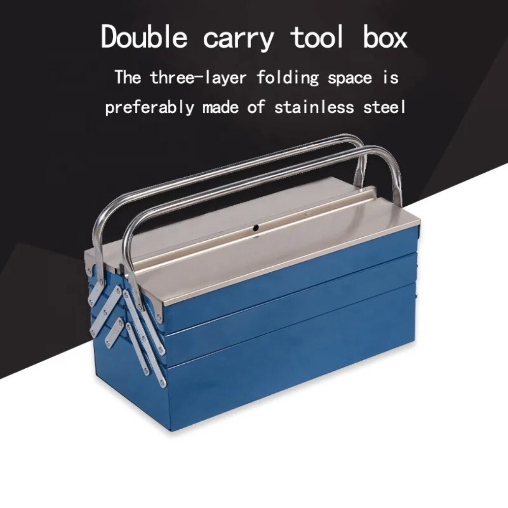eBay Factory Hot Sale Metal Tool Box Portable Cantilever Metal 2 Tray Storage Tool Box With Double Handle Type box,tool box size 350*200*160mm, Application Daily Life weight 5.5kg item Portable Plastic Dry Box color sliver metrIal stailless steel Feature Waterproof Shockproof Dustprooof Packing paper box Logo OEM ODM Aaccepted