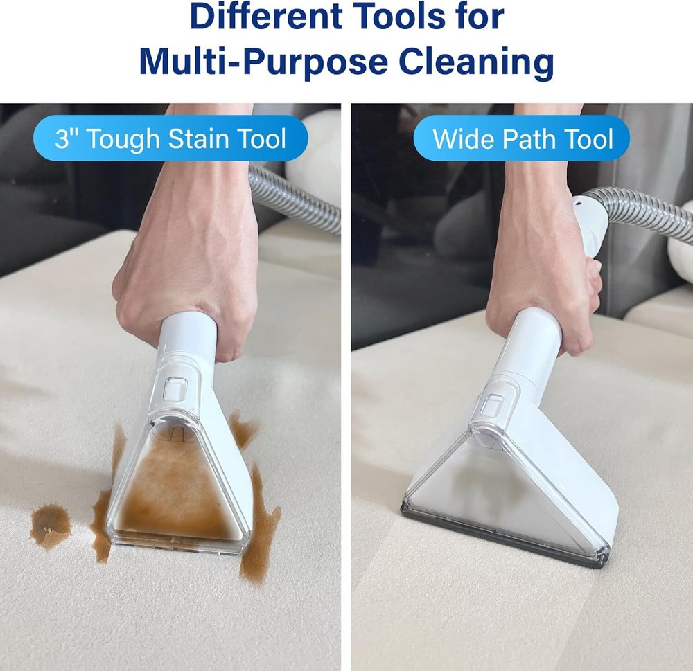 Portable Carpet Cleaner Machine, Carpet Shampooer, 15Kpa Upholstery Cleaner with 3 Tools, 54oz Large Water Tank, 16.4ft Power Cord, Spot and Stain Deep Cleaner for Rug, Couches, Car,Blue Item Description About this item 【Powerful Suction with 500W Motor】: This carpet cleaner machine (Blue) has a powerful suction of 15KPa and 500W super power, can be quickly cleaned, and the cleaning effect is better, and can help us solve the family cleaning problem to the greatest extent. It is recommended to wipe the fabric dry after cleaning the stains for optimal results. 【3 Tools for All Your Cleaning】: The carpet cleaner machine comes with 2 types of cleaning tools: Wide path tool for quickly tackling large stains. Tough stain tool for carpets, couches, upholstery, stairs, car interiors, even pet beds. The carpet cleaner machine also features a self-cleaning function that can clean the dirty water inside the pipes. (Friendly reminder: Accessories are stored inside the dirty water tank.) 【Dual Water Tank】: Portable upholstery cleaner machine features a dual-tank system with a 54oz clean water tank and a 42oz dirty water tank, allowing you to easily detach the tanks for filling, draining, and cleaning. Tips: Do not exceed the MAX line in the dirty water tank, as it may cause the carpet cleaning machine's suction to stop. 【Portable and Compact】: The upholstery cleaner machine comes with an ultra long hose (5.5 ft) and power cord (16.4ft), and this portable carpet cleaner is lightweight and easy to move around to clean multiple surfaces throughout your home. The brush and power cord can be stored on the machine's hook to save space. 【Versatile / Multipurpose】: This carpet cleaning machine is recommended for use with low-foam neutral cleaning agents, (Cleaning sofa, carpet and other cleaning agent ratio 1:30; Dish soap is diluted at a ratio of 1:10 for optimal performance.) It is suitable for cleaning carpets, sofas, stairs, and other household surfaces, as well as car seats. It provides a comfortable cleaning experience and helps maintain a clean environment. › See more product details *Leakage problems are usually caused by improper installation of the sewage tank. Ensure that the sump tank is installed perpendicular to the machine with no gaps in the sides to ensure that the bottom joints are completely closed. *There is too much sewage in the sewage tank. We recommend pouring out the sewage before use. Alternatively, you can find us for assistance. Note: Do not exceed the MAX line with sewage. *Yes, we recommend using it with a low-foam neutral detergent. The recommended dilution ratio for the sofa cleaner is 1:30, and for the dishwashing liquid, it is 1:10. Payment We accept payment only through PAYPAL Shipping We ship products worldwide through standard express courier service, it will reach within 7 to 10 days to abroad buyers, we ship the product after recieved clear payment and give full information about shipment to the buyer Return We accept product return within 7 to 21 days from delivery date but product should be in original position and not in damaged condition,the return shipping charges will be buyer responsibility