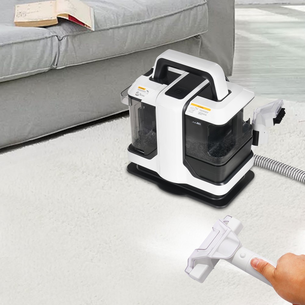 Portable Carpet Cleaner Machine, Powerful Deep Stain Cleaning for Couch, 450W Description Do you want to give your home a new look? Then try our cleaner machine. With its high-quality material, powerful cleaning function, and equipped with 2 different cleaning brushes to meet your cleaning needs, it can clean every crevice to the maximum and give you an efficient cleaning experience, so it will be your ideal choice! Key Features Sturdy and Durable: It consists of high-quality plastic and iron with an injection molding process, which is durable, comfortable to use, and resistant to rust and corrode, so it can remain beautiful and practical for a long time. Cleaning Assistant: 2 cleaning brushes(big and small cleaning) allow you to install them on the product to clean different scenarios, which not only meets your cleaning needs but also gives you a clean home environment and provides health protection for your children and family. Powerful Function: It has a rated air intake power of 450W, a maximum suction power of up to 11Kpa, an airflow rate of up to 2.53Gal/s, a suction speed of up to 14.08oz/min for large brushes, and 13.02oz/min for small brushes, which provides you with efficient cleaning. Elaborate Design: Two tanks, one for clean water (38oz) and the other for dirty water after cleaning (29.92oz), effectively separate clean water from sewage for better cleaning results. The clear design also makes it easy for you to check the capacity and make adjustments promptly. Space-saving: The water hose can be wrapped around the storage slot of the product housing, together with its compact size (11.81*8.27*13.58 inches), it can be placed under a table or in a cabinet without taking up too much space. Easy to Clean: Thanks to its simple construction, smooth surface, detachable cleaning heads and deep self-cleaning function, you can easily clean this product at ease. Ideal Gift: Thanks to its practicality and powerful functions, you can give it to your friends as a Christmas, Thanksgiving or Halloween gift! Protective Package: We use reformed paper pulp for inner box packaging, designed to maximize the protection of the product from damage during transportation. Details Long Power Cord and Water Hose: The 3.94ft water hose and 16.4ft power cord provide a larger cleaning area and flexible operation. Convenient Handle: This ergonomic handle is not only comfortable to grip but also convenient for you to move the product. Handle Holder: It helps you to organize your cleaning heads more conveniently. Organizer Ports: Two ports for power cord wrap help to keep the power cord organized. Application It can be used in homes, hotels, clubs, restaurants, and so on to clean stains, debris, dirt, pet hair, etc. from sofas, carpets, curtains, beds, cushions, dolls, office chairs, cars, and more. Circumstances May the Carpet Cleaner Machine Leak 1. The water tank is not installed tightly. 2. The hose connection is not firmly installed. 3. The water tank is clogged. 4. The connection between the water tank and the machine is blocked. How to Deal with Leak 1. Pls install the water tank correctly. 2. Ensure that the buckle of the installation interface is firmly installed. 3. Clean the water tank in time to avoid accumulation of residues. 4. Clear the blockage in time of the interface of the water tank and machine. How to Clean and Prevent Bacterial 1. Press the self-cleaning button to clean the brush head and hose. 2. Clean the water tank promptly to ensure there are no blockages. How to Deal with Spots and Stains 1. Pour the cleaner directly onto the stain. 2. Turn on and spray water on the stain. 3. Turn off and scrub with a brush first. 4. Turn on the switch to suck away the dirty water. Specification Model: JCE002 Color: White and Black Material: Plastic and Iron Process: Injection Molding Style: Modern Type: Handheld Mount Type: Free Standing Power Source: Corded Electric Plug: US Standard Rated Voltage: 110V Rated Power: 450W Clean Water Tank Capacity: 1080ml/ 38oz Dirty Water Tank Capacity: 850mL/29.92oz Noise: About ≤80dB Max. Suction Force: 11KPA Maximum Air Flow: 11.5L/2.53Gal/s Suction Speed (Big Brush): 400ml/14.08oz/min Suction Speed (Small Brush): 370ml/13.02oz/min Number of Cleaning Brushes: 2 Waterproof Level : IPX4 Water Hose Length: 1.2m/3.94ft Power Cord Length: 5m/16.4ft Operating Radius: 6.2m/20.34ft Overall Size: 30*21*34.5cm/ 11.81*8.27*13.58in Package Size: 37*36.5*26cm/ 14.57*14.37*10.24in Gross Weight: 5.3kg/11.68lbs Net Weight: 4.8kg/10.58lbs Package Included 1* Cleaner Machine 1* English User Manual Notes Please note that this product should only be used wet. Please use a neutral cleaner (not included). Please read the English user manual and the labels on the product carefully and pay attention to the safety precautions inside. When you do not use the machine, please turn off the power promptly, and clean the machine after maintenance, if you have just received a new machine, we recommend that you let the machine stand at normal room temperature before using it. Please allow the slight color difference caused by the shooting light and 1-3 cm error due to manual measurement, and make sure you do not mind before ordering. Payment Delivery details Terms of sales About us Contact us Payment We accept ebay payment 。 Fees such as import duties, taxes are not included in the item price or shipping costs. These charges are the buyer's responsibility. Delivery details Shipping: 2-9 working days to: USA Terms of sales We maintain high standards of excellence and strive for hundred percent customer satisfaction. Feedback is very important to us. We hope that you contact us immediately before you give neutral or negative feedback, so that we can address your concerns. It is impossible to address issues if we do not know about them! About us Your satis faction is our ultimate goal. We work hard to earn your trust and future business. Our certified technicians have tested each item before