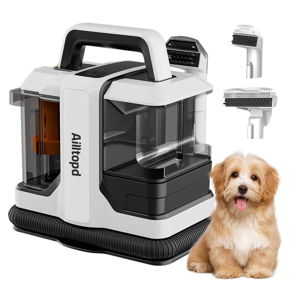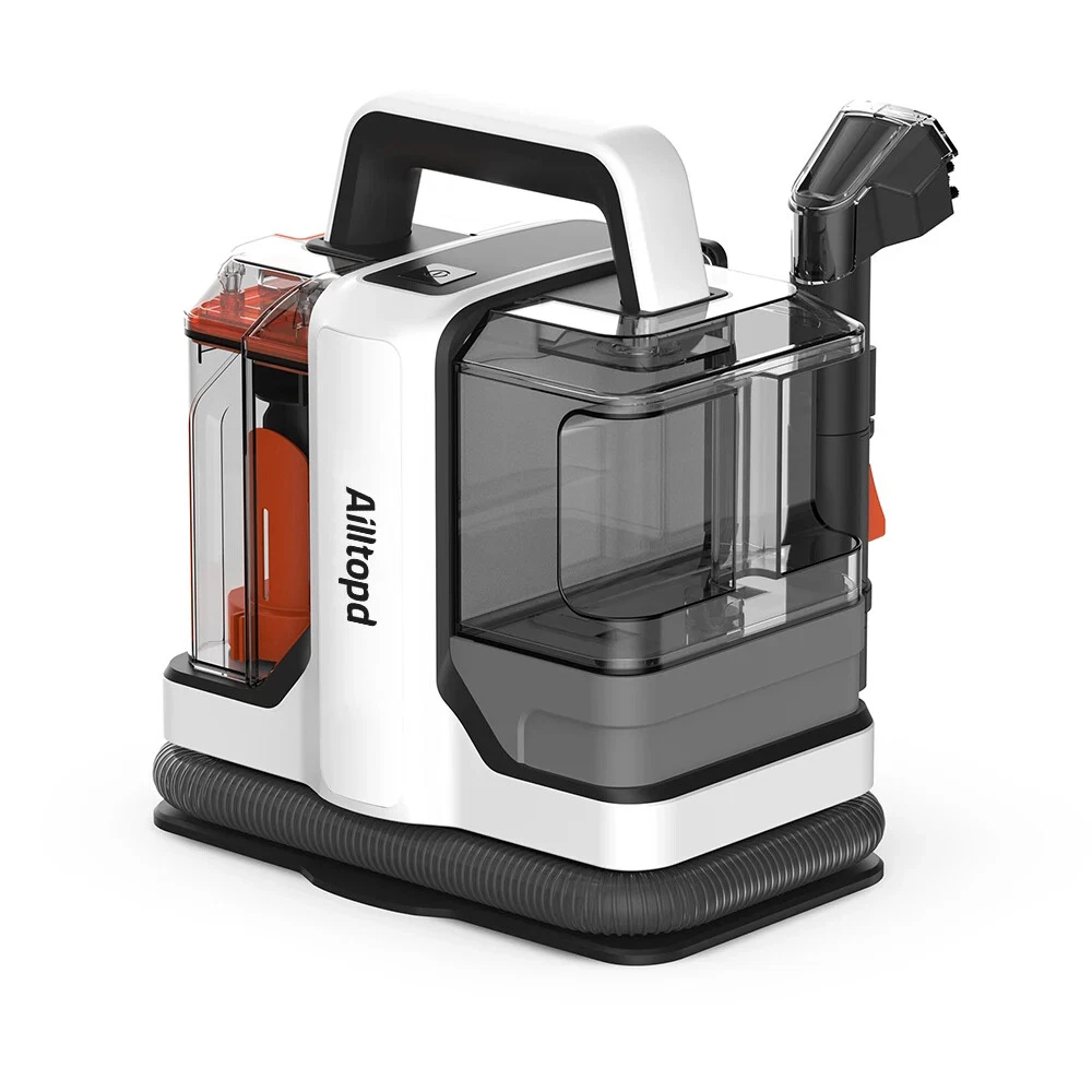 Features 【DUAL LARGE TANKS】: The Dual Tank System has a large water tank capacity of 0.8L sewage tank and 1.08L clean water tank, respectively,so you can clean farther while clean water and dirty water stay separate,and achieving longer uninterrupted cleaning time.The clean water tank can be added our equipped agent and sprayed evenly on the carpet or pad to ensure better cleaning results. 【LONGER REACH FOR LARGER CLEANING】: The upholstery cleaner machine with an ultra long hose and power cord and the carpet cleaner is lightweight and easy to move from one cleaning job to the next.and easy to clean the Hose Rinse Tool flushes the machine with water to remove any left behind dirt & debris. 【PORTABLE CLEANING】: The upholstery cleaner machine with an ultra long hose and power cord and the carpet cleaner is lightweight and easy to move from one cleaning job to the next. And the wires and hoses can be easily stored on the bracket of the cleaning machine.The brush can be stored on the machine's dual brush hook. Don't take up space in the home. 【POWERFUL SUCTION】: The Ailltopd carpet cleaner machine is equipped with a 450W motor, which can provide a super suction force of 11Kpa. which can quickly and deeply handle various stains and stubborn paint, such as beverages, juice, pet urine, dust on sofa covers, etc. It is also equipped with a strong suction system, ensure that the carpet can dry quickly after cleaning, allowing it to quickly return to its normal state, making your home environment healthier and safer. 【WIDE APPLICATION RANGE】: The carpet cleaner machine is for fabric cleaning, and cleans most fabric products that cannot be cleaned as a whole, such as sofa, mattresses,car seat,and other difficult to clean items,and is equipped with two sizes of brush heads, which can be used for different areas of stains and can perfectly handle leaks and accidents for you, providing a comprehensive cleaning experience and making it a new look. Description Rated inlet power:450/750W Max Suction:11/15Kpa Rated Voltage:220-240V(EU)/110V(US) Rated Frequency:50/60Hz Max air flow:≥11.5 l/s Suction Water Speed(Big brush):400 ml/min Suction Water Speed(Small brush):370 ml/min Sound power noise:≤80 dB(A) Protection Class:IPX4 Certification:CE,CB Clear Water Tank Capacity:1080ml Dirty Water Tank Capacity:800ml Power Cord Length:5.5m Hose Specification: ø32,1.2m Package Include 1x Main 1x Small Brush 1x Large Brush 1x Clean Water Tank 1x Sewage Tank