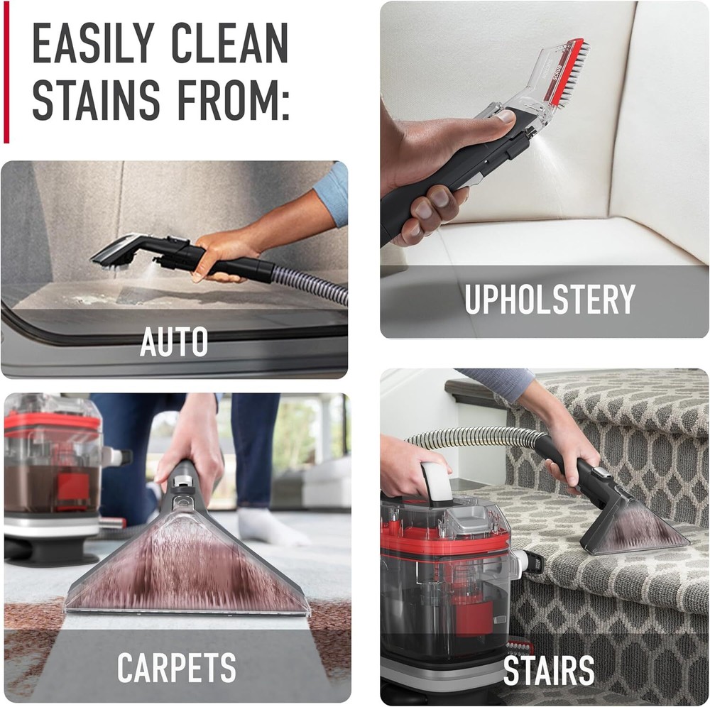 This portable carpet cleaner is a lifesaver for quick cleanups! It handles everything from pet stains to spilled drinks with ease. The wide path tool makes large messes simple, while the tight spot attachment gets into corners. I love how lightweight and easy to use it is - just fill, clean, and empty. The rinse tool keeps maintenance effortless. Perfect for upholstery, stairs, and car interiors too. After tackling red wine on my light carpet, I'm amazed by how well it works. Definitely worth having for any home with kids or pets!