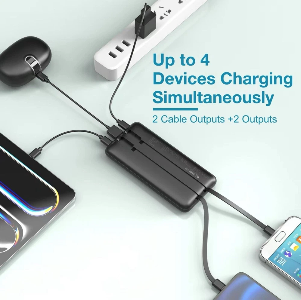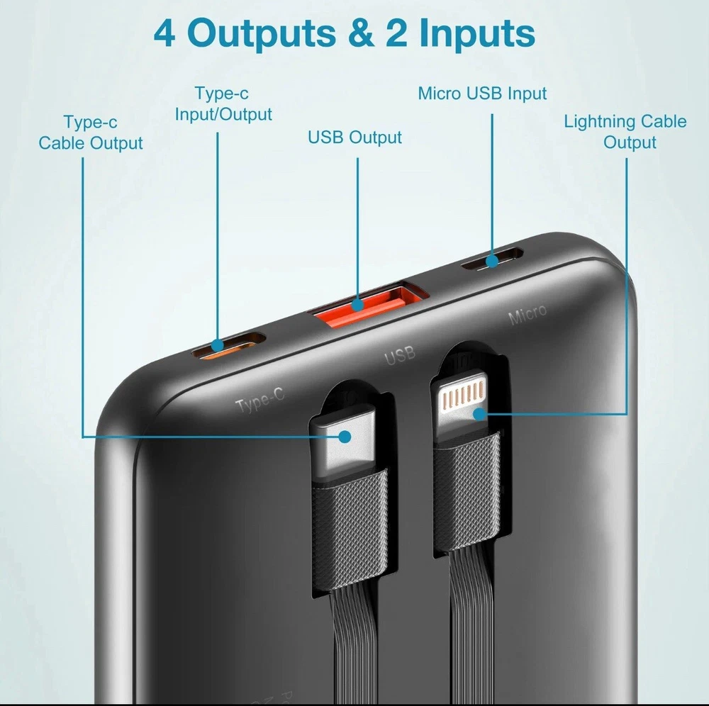 This portable charger is the perfect solution for those who are always on the go. With 4 outputs and 2 inputs, it allows for simultaneous charging of multiple devices. The charger comes with a charging cable and is compatible with both universal brands and models. The sleek black color and compact design make it easy to carry in your pocket or backpack. The charger is suitable for use with a variety of connectivity options, including lightning and USB-C. With a voltage of 12V, this portable charger is a reliable and convenient option for charging your devices.