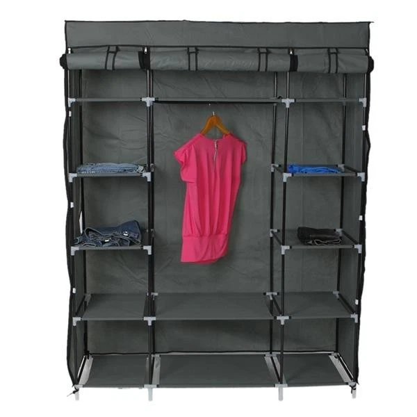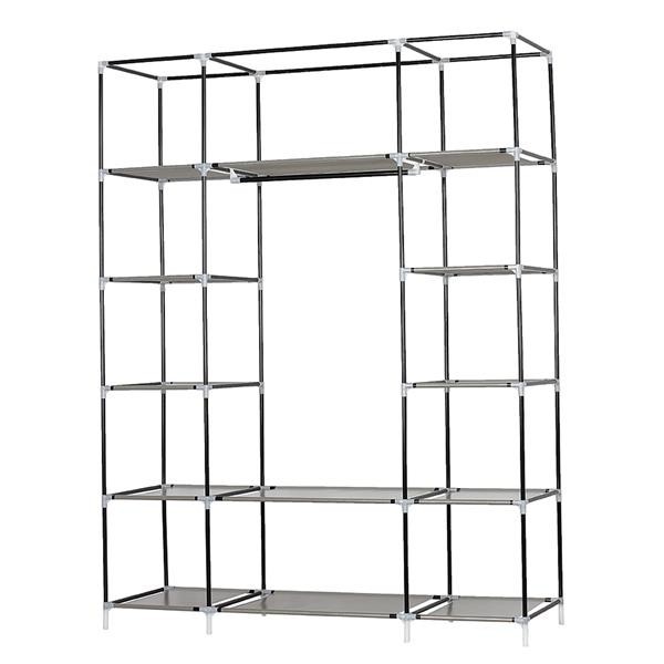 Introductions: Troubled about storage issues in your house? Try our 5-Layer 12-Compartment Non-woven Fabric Wardrobe Portable Closet! With 5 layers and 12 spacious compartments, it adds more space for all your clothes and accessories and makes your home neatly organized. Two hanging rods on the top let you store longer outfits. Crafted into a sturdy alloy construction with non-woven fabric cover, it is durable for long-lasting use. Rolling front doors keep the contents protected from dust and moisture. Don't hesitate to bring it home! Features: 1. 5 layers and 12 spacious compartments, make your home neatly organize 2. Add more space for all your clothes and accessories 3. Two hanging rods on the top let you store longer outfits 4. Crafted into a sturdy alloy construction with non-woven fabric cover 5. Durable for long-lasting use 6. Rolling front doors keep the contents protected from dust and moisture 7. Concise design blends in with any home decor 8. Easy to assemble, require no extra tools Note: 1.When receiving the goods, please confirm the product according to the listing of instructions. Once you find Less pieces, please provide relevant pictures to contact us. We will deal it in the time. 2.Please install goods with the instruction manual. 3.It is recommended that the installation should not be too tight to adjust easily. After the structure is installed, firm the interface for more stability. Specifications: 1. Material: Alloy & Plastic & Non-Woven Fabrics 2. Color: Gray 3. Type: 5 Layers 12 Lattices 4. Steel Pipe Diameter: 0.51" / 1.3cm 5. Dimensions: (52.4 x 18.1 x 67)" / (133 x 46 x 170)cm (L x W x H) 6. Weight: 120.28oz / 3410g Package Includes: 1 x Non-Woven Fabric Wardrobe 1 x No Canvas Wardrobe 1 x Cloth Case 3 x Large Layer Cloths 10 x Small Layer Cloths 10 x Five-Pass Joints 32 x Four-Way Connections 4 x Tee Couplings 1 x Hang Lever 95 x Steel Pipes