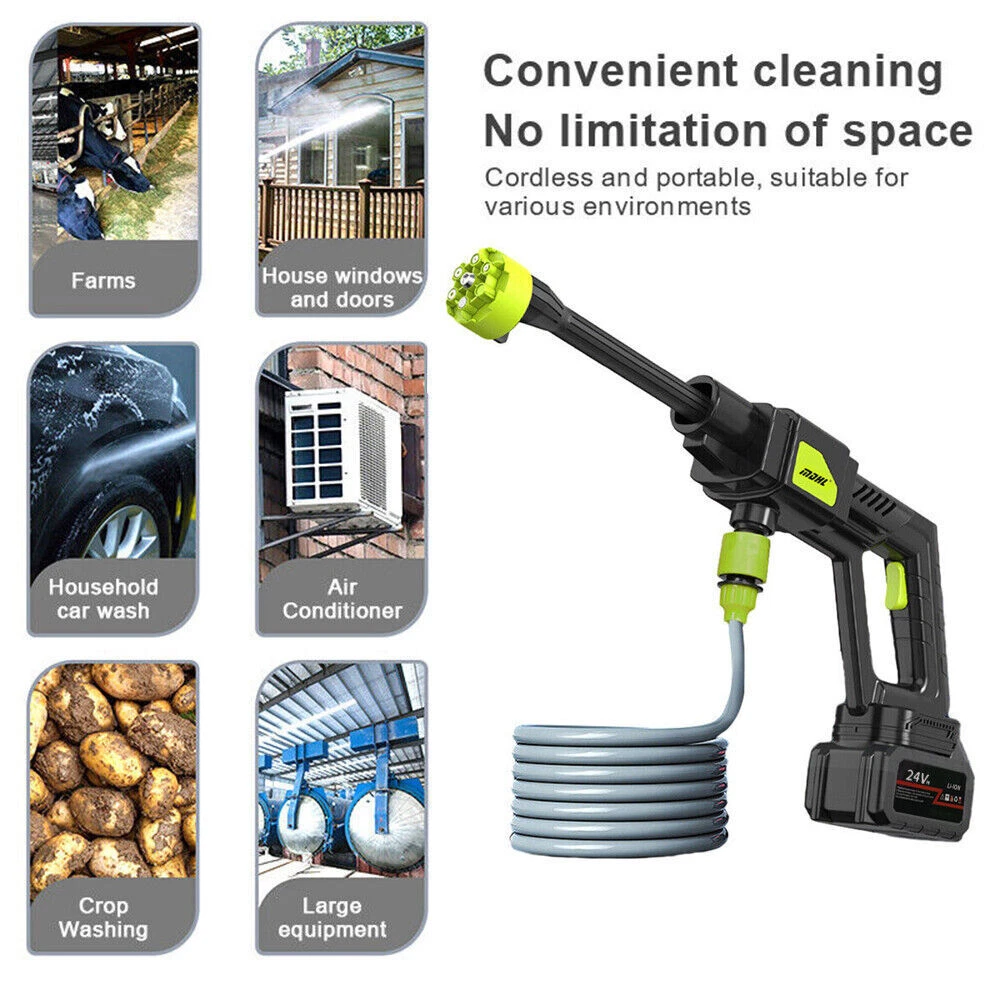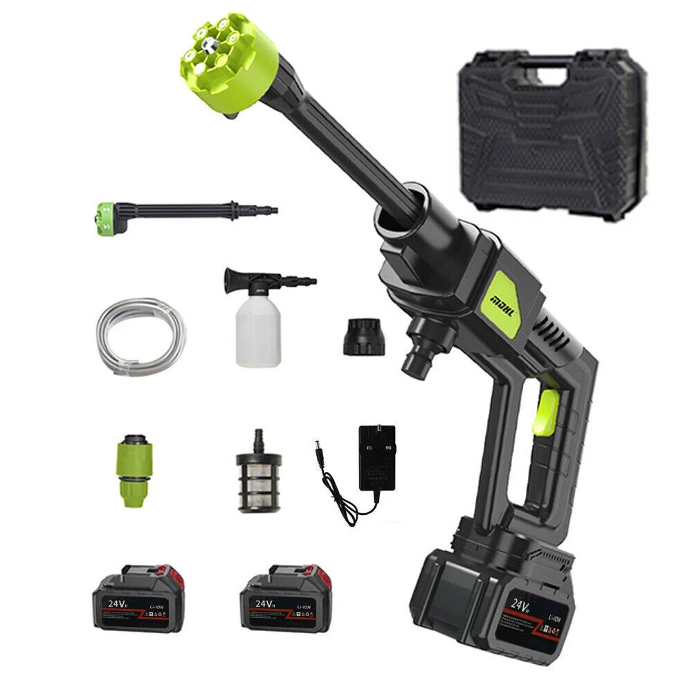 Features : 【Upgraded brushless motor】 【Multiple Spray Patterns】 【POWERFUL BATTERY】 【Draw Water from Anywhere】 【Versatile Use】 Specification : Motor: Brushless Motor Material: ABS and copper Power Supply:Lithium battery Battery capacity: 12000mAh(Note: A single battery is 1200mah, a total of 10 batteries are connected in series and parallel) Power:300W Rated voltage:21V maximum voltage:48V Product pressure: 30Bar Drive: Lithium battery wireless drive Spray type of water gun: 6-IN-1 Multi-Function & Rotatable Spray Nozzles Jet stroke: 6-12 meters Water pipe length: 5 meters Car washing equipent type: household car washing machine Water source type: Bucket / Faucet Self-priming Scope of application: car washing, watering flowers, water vegetables, spraying, garden cleaning, etc. Portable Cordless Car High Pressure Washer Jet Water Wash Cleaner Gun +2 Battery Features : 【Upgraded brushless motor】: Most cordless pressure washers use brushed motors for it ,we use brushless motors .brushless motor is upgrade motor ,it has higher efficiency and controllability, longer working life ,save electric power , brushless motors lack brushes and physical commutators, they require less overall maintenance .and its cost is also much higher than brushed motor. 【Multiple Spray Patterns】:The battery powered pressure washer is equipped with adjustable nozzles from 6in1 nozzles and foam sprayers. You can turn the nozzle freely according to your cleaning needs. Easily removes all kinds of stubborn stains. Suitable for a variety of scenarios, including vehicle cleaning, exterior wall and floor cleaning, window and door cleaning, etc. Foam bottle attachment for quick foaming to easily remove stains from vehicles and windows. 【POWERFUL BATTERY】:Powered by 2 21V batteries, it is not limited by wires, very convenient to carry outdoors. One charge can provide up to 30-50 minutes of uninterrupted cleaning experience. 【Draw Water from Anywhere】: The portable pressure washer with a 16.4FT hose that makes it easy to take water from any source, so it's suitable for rivers, pools or buckets. It can also be connected to a faucet. The hose is equipped with a filter that effectively filters out particles, waste leaves or sludge, making it easy to draw water from buckets, pools, rivers or any water source. 【Versatile Use】Widely used for cleaning vehicles, bicycles and boats. The portable electric cleaner is also perfect for a variety of cleaning tasks in the home and garden. It effectively waters plants, cleans walls, floors, bathrooms, swimming pools, doors, driveways, fences and hard-to-reach corners. Specification : Product name: Wireless High Pressure Car Wash Washer Gun Motor: Brushless Motor Material: ABS and copper Power Supply:Lithium battery Battery capacity: 12000mAh(Note: A single battery is 1200mah, a total of 10 batteries are connected in series and parallel) Power:300W Rated voltage:21V maximum voltage:48V Product pressure: 30Bar Drive: Lithium battery wireless drive Spray type of water gun: 6-IN-1 Multi-Function & Rotatable Spray Nozzles Jet stroke: 6-12 meters Water pipe length: 5 meters Car washing equipent type: household car washing machine Water source type: Bucket / Faucet Self-priming Scope of application: car washing, watering flowers, watering vegetables, spraying, garden cleaning, etc. Package included: 1x Wireless car washing machine 1x Lithium battery 1x Charger 1x 5m Water pipe 1x 6-in-1 nozzle 1x Filter 1x Foam pot 2x Adapter Payment Shipping Return Contact us About us Payment 1.Paypal, Credit Card, G Pay etc, many payment way is accepted. 2.Please be sure your shipping address is correct before make a payment. Shipping 1.We will ship out the item within 1-3 business days after comfirming the payment, appreciate your patience. 2.If the items are broken on the way( we will check the orders clearly before we sent them ),please contact us in 3 days you received it. We will send you a new one or refund your payment. Return 1.We stand behind every buyer.Items can be returned for exchange or refund within 30 days. 2.Please contact us when you have any confusion of our item, we will solve the trouble for you as soon as possible. Contact us 1.This is professional Seller.We will reply your message within 24 hours. 2.Please contact us whenever you have any question about the item. We will deal with it as soon as possible. 3. If you are unhappy with the item or our service,please Contact Us before leave feedback,just give me a chance,thank you! About us 1. Unless specified otherwise, all our products are IN STOCK and are shipped from Local warehouse - Not Overseas! 2. We provide a 30 day Satisfaction Guarantee or your money back (provided items are in the same new and resaleable condition.) 3. We have a PayPal Verified Business Account, please buy with Confidence! 4. Every item will be tesrted before send.We know our products well and if we don't have the answers we will do our best to find them for you! 5. Our friendly team look forward to serving you! Your satisfaction is our No.1 Priority We will do our best to satisfacy you.