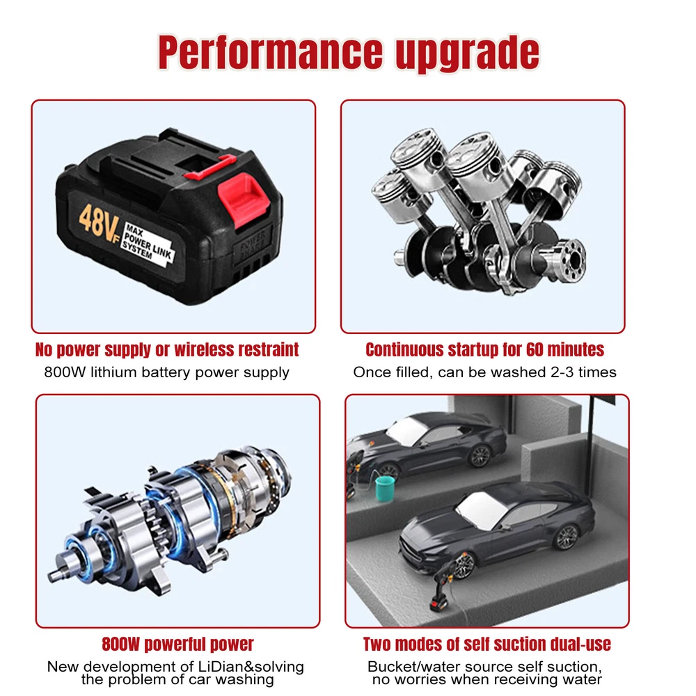 Portable Cordless Power Washer for Cars Yards Cleaning with Water Spray Gun