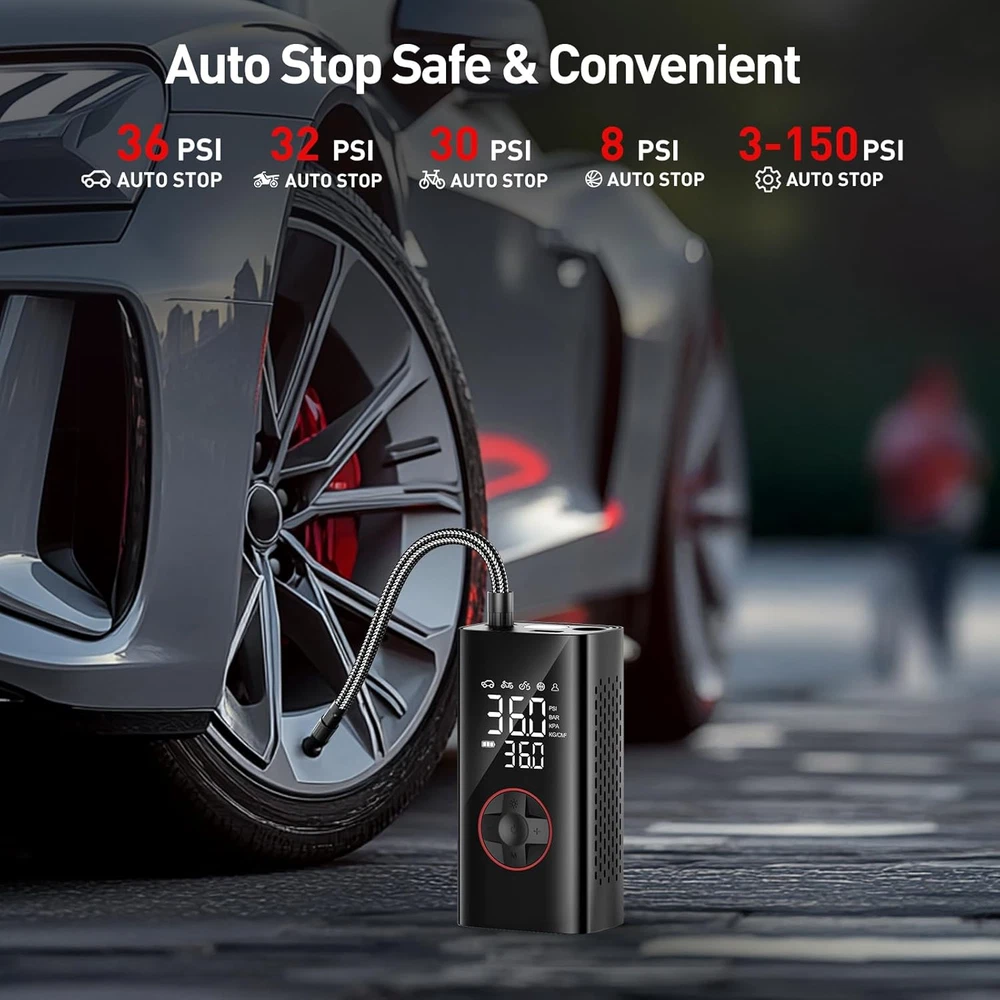 Store New Arrivals Add to Favorite View Feedback Contact Tire Inflator Portable Air Compressor - Cordless Air Pump for Car Tires - 150PSI &10000 Mah Battery Portable Tire Inflator for Car with Pressure Gauge, Mini Tire Pump for Bike, Motorcycle, Ball Description Item model number ATJ-008 Style atvs Power Source Battery Powered Noise Level 20 dB Country of Origin China Warranty Description 3 Batteries Included? Yes Batteries Required? Yes Battery Cell Type Lithium Ion Material Plastic Model Name ATJ-008 Item Package Quantity 1 Item Weight 1.15 pounds Special Features Portable, Cordless, Automatic Shut-Off, Quick Inflation Special Feature Portable, Cordless, Automatic Shut-Off, Quick Inflation Part Number ATJ-008 Color Black Batteries 2 12V batteries required. (included) Voltage 12 Volts (DC) Recommended Uses For Product Tire Inflation Included Components USB charging cable, Mini Tire Inflator Product Dimensions 3.54 x 2.83 x 5.83 inches Size Mini 6X Faster Tire Inflation: Tire inflator offers rapid inflation up to 150 PSI, inflate 6X faster than others air pump, from 30 to 35 PSI in just 40S. The car tire air pump portable fully inflates car tires (0-36 PSI) in just 5 minutes, with a built-in gauge for precise readings. It's an essential accessory for car, bike, motorcycle, ball, and inflatables Mini & Portable Design: Portable air compressor for car tires is compact size strikes the perfect balance between portability and functionality. The air compressor is easy to carry, store in a backpack, mount on a bicycle, or keep in your car, making it ideal for emergencies, outdoor activities Multifunctional Tire Pump: Portable air pump serves as a versatile emergency tool. Our electric tire pump has 3 modes of LED lights: constant, SOS and flashing to help with tire inflation and dark conditions. With USB ports, turning it into a power bank for your electronic device Cordless Charging: Air compressor for car is equipped with 10000 mAh rechargeable battery for cordless charging. With a single full charge, you can inflate six 195/55/R15 car tires (0-36 psi). Electric air pump is ideal for emergency use, providing peace of mind for cars and motorcycles during travel on the road 5 Modes Tire Inflator: The portable tire inflator offers 5 preset inflation modes (Car, Motorcycle, Bike, Ball, and Custom Mode), with 4 pressure unit options- PSI, KPA, BAR, KG/CM. The portable air compressor also features an automatic shut-off function to ensure safety when a preset pressure is reached, and a pressure gauge for precise monitoring Prompt Service: If you have any confusion or problems, please let me know (24-hour online service), we'll take care of it for you right away Product Description The video showcases the product in use. The video guides you through product setup. The video compares multiple products. The video shows the product being unpacked. 1 Five Preset Modes 2 Preset Pressure Value 1 Power Bank Function 2 Tire Inflator Set 3 Portable & Mini 4 Product Details ABOUT US We offer the best prices around on high quality products. Our E-store includes media such as books, movies, music and games while offering electronics, toys, sporting apparel, clothing, tools, general home, garden items and more. SHIPPING We are always working hard to ensure your package arrives as soon as possible. Please understand that some factors like weather, high postal traffic, and the performance of shipping companies are outside of our control. We offer free shipping to the lower 48 states and ship within 2 business days of payment, usually sooner. We do not accept P.O. Boxes. Please provide a physical address. RETURNS We offer a 30-Day Return Policy on items which you are not completely satisfied with. You have the option for a full-refund or an exchange of the item. No returns are available on items shipped outside of the USA. PAYMENT We accept PayPal. CONTACT US This page content is yet to come Please ad us to your favorite seller and visit again later Thank You CUSTOMER SATISFACTION We try our very best to make sure every customer is completely satisfied. If there's a problem, message us! We're happy to help.