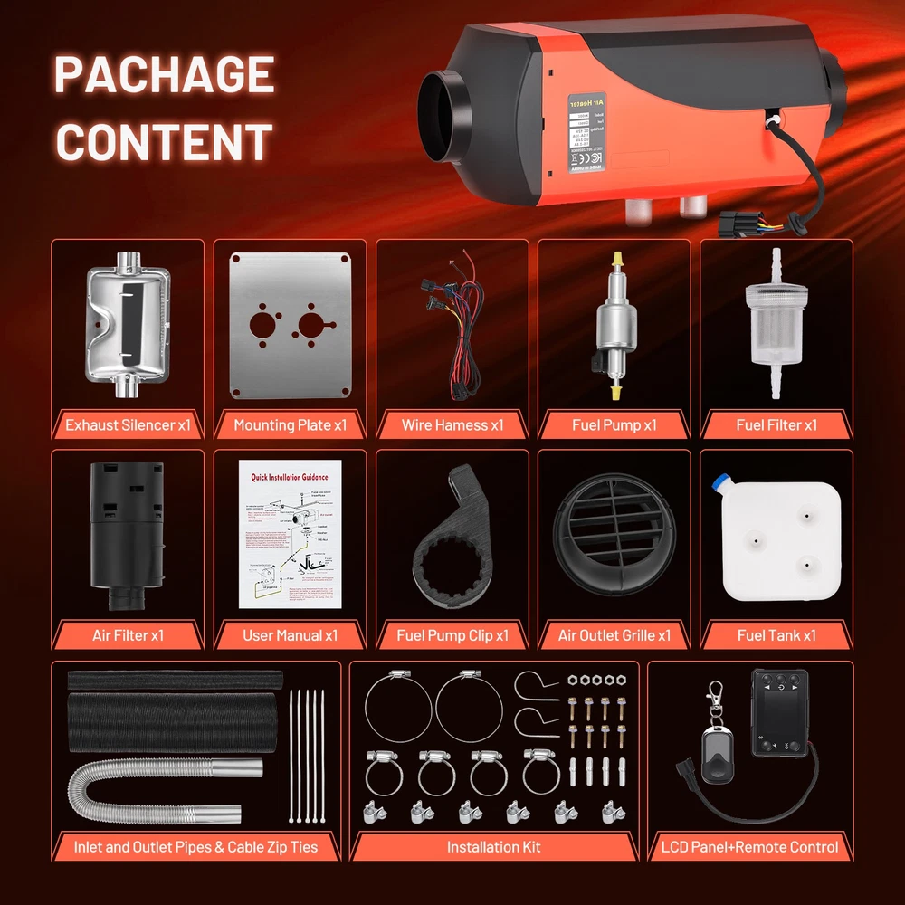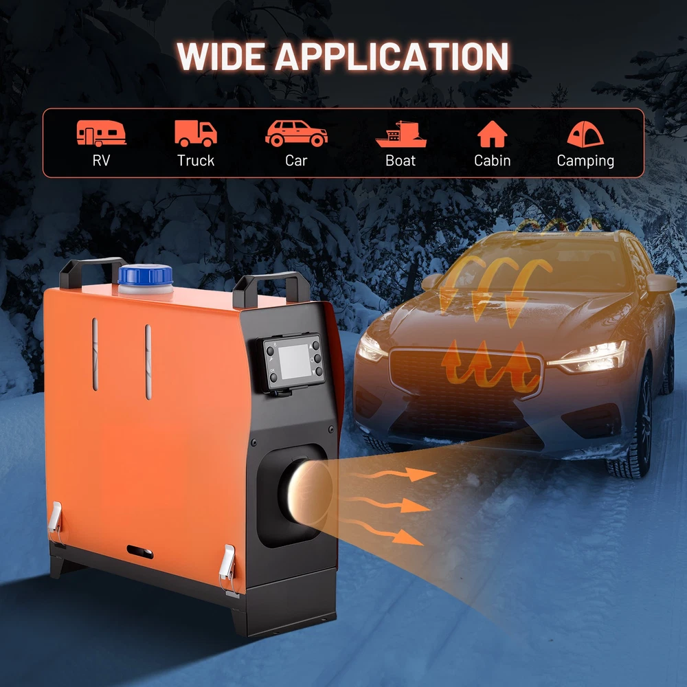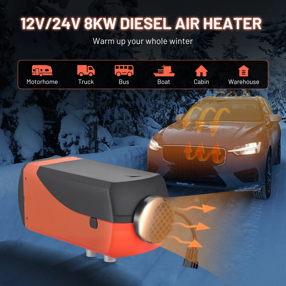 Portable Diesel Air Heater 8KW 12V/24V for Car Bus RV Indoors Camping Fishing Diesel Air Heater Description: Key Features: 1. Preheat the engine coolant to avoid engine wear started at low temperature and defrost the glass. 2. It has low noise and keeps the in-car temperature among a suitable range and helps you drive safely in cold winder. 3. It enables to control the diesel air heater in a long distance for preheating and adjustment. 4. Eco-friendly product, low fuel and power consumption, suitable for longer periods of operation. 5. LCD display makes it convenient to monitor the working status of the heater at anytime. 6. All in one unit, compact and space-saving, easy to install and remove. 7.Material: plastic & aluminum 8.High-quality reinforced ignition plugs 9.High-quality reinforced pure copper fuel pump 10. Bluetooth display 11.B1003 wide-voltage motherboard 12.High-quality black steel motor 13.310S combustion chamber (high quality, more complete diesel combustion, durable) Note: - It is normal that the ignition fails when the first time you start the machine, because the oil pipe of the oil circuit is in the vacant state at that time. Please restart and the machine will work normally. - Remote control needs to be set before use. - Please confirm the car battery voltage before purchasing. - If you have any concerns, please do not hesitate to contact us. Compatible Models and Years: - For all types of diesel mechanical vehicles, such as cars, buses, RVs, trucks, construction vehicles, etc. Specifications: * Condition: 100% Brand New * Heater Power : 8KW * Fuel: Diesel (5L) * Voltage: DC12V/24V / AC110V * Material: Metal & Aluminum * Car Air Conditioning Type: Heating * Switch Type: LCD Switch * Remote Control Distance: 100m(Without Obstacle) * Radiator Working Temperature: -40℃~+50℃ * Operating Temperature of the Oil Pump: -40℃~+40℃ Package Includes : Notice : *Due to the manual measurement and different measurement methods, please allow 1-3cm deviation. *Professional installation is highly recommended. *For any needs please contact us. *Please contact us if you need installation video Payment Delivery details Terms of sales About us Contact us Payment 1.We only accept PayPal. PayPal is the only online payment method we accept. Please make sure you have a valid/confirmed PayPal account prior bidding. 2.All Paypal Payments must be Confirmed. Payment must be made within 48hrs of the auction end time. Non-Paying bidders will be reported. 3.When you get your package,maybe you will pay some charges, it's taxes for local customs,not pay to us, and the fees are depends on the customs, all buyer are same. Delivery details 1.Items will be shipped within 2 business days after payment is received. 2.We ship to your eBay address. Please make sure your eBay address is correct. Buyer takes responsibility if eBay address is wrong. 3.Import duties, taxes and charges are not included in the item price or shipping charges. Please check with your country customs office for these additional charges. 4.We shipping using UPS or USPS from our nearest warehouse to you. Tracking numbers will be emailed upon shipment. Terms of sales 1.Please feel free to email us if you have any question. 2.We appreciate you contact us via eBay message when you are not satisfied rather than open case or leave negative feedback directly. We'll try our best to solve the issue. 3.Refund will be issued once we receive your returned items. Buyer is responsible for all return shipping charges. 4.Please contact us for return process before you return the item. 5.All items for exchange or refund must be returned in "as new" condition. About us We are the responsible seller ,always provide high-quality products and best service .If you have any questions, please contact us, and will try our best to help you. Please contact us by eBay Message, and we will reply you within 24 hours. Thank you very much! Contact us We are the professional auto parts manufacturer , and provide line lock, AN hose end fittings , fuel line , fuel filter , fuel regulator , exhaust cutout , exhaust tips , exhaust muffler and so on .The quality of the product to be secured. If you have any questions or any needs , please contact us , and will try our best to help you.