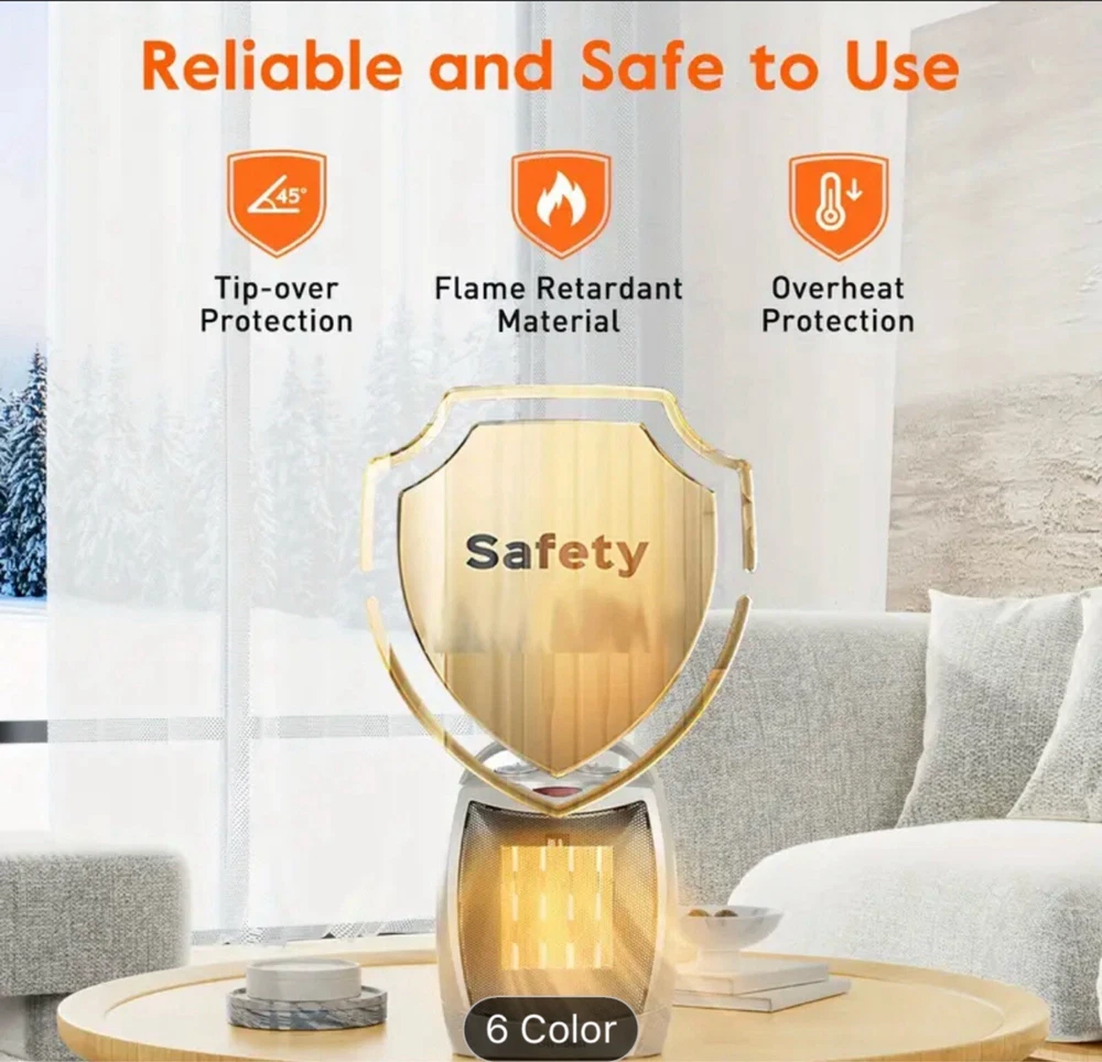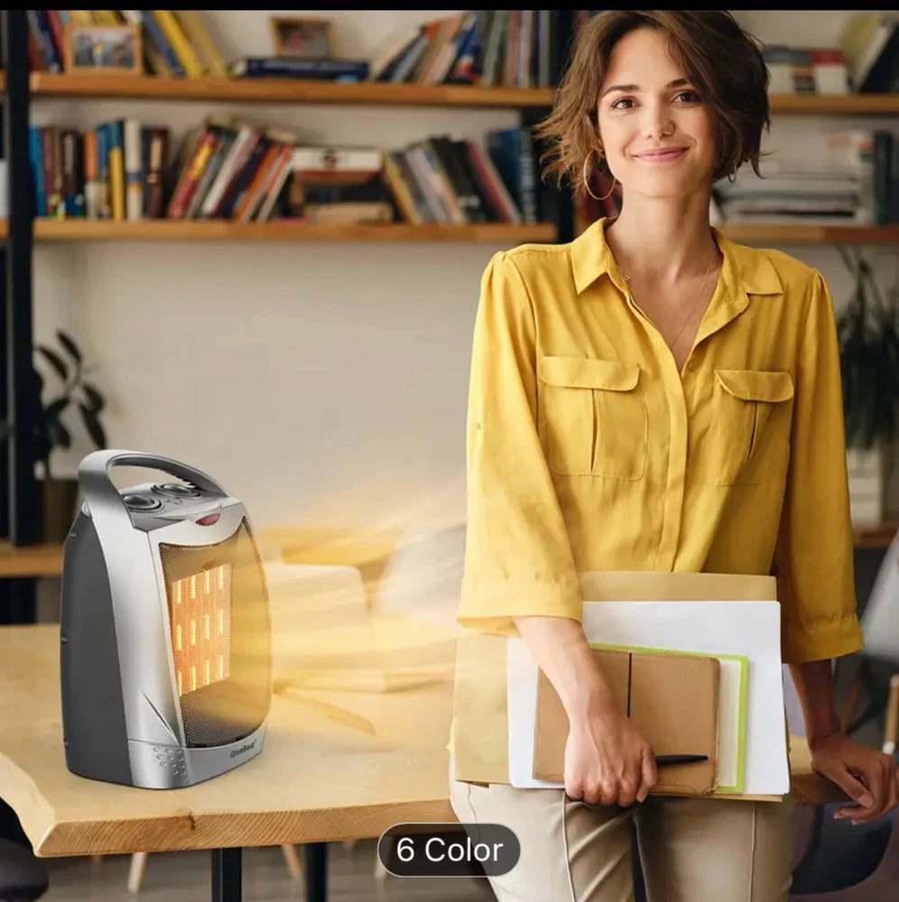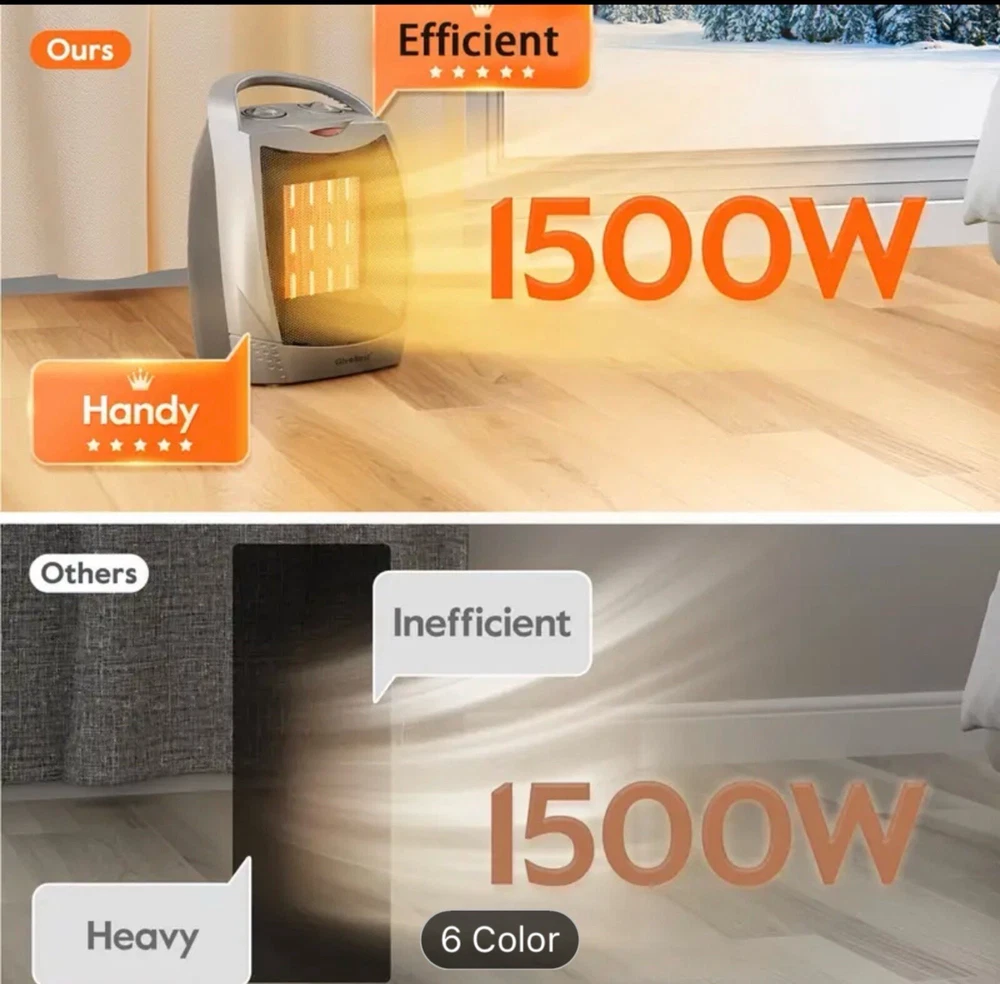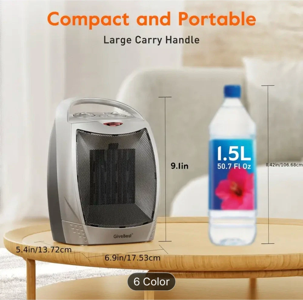 Portable Electric Space Heater 1500W/750W - Safe, Quiet, Ceramic,