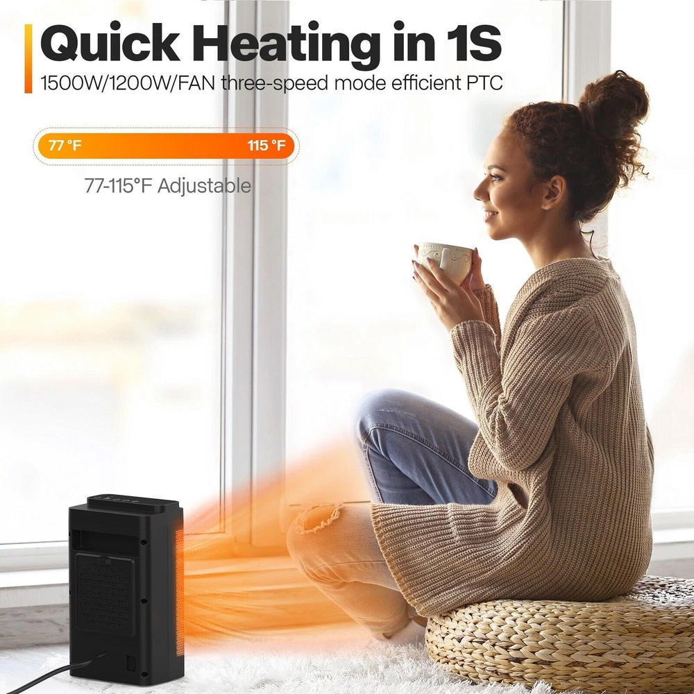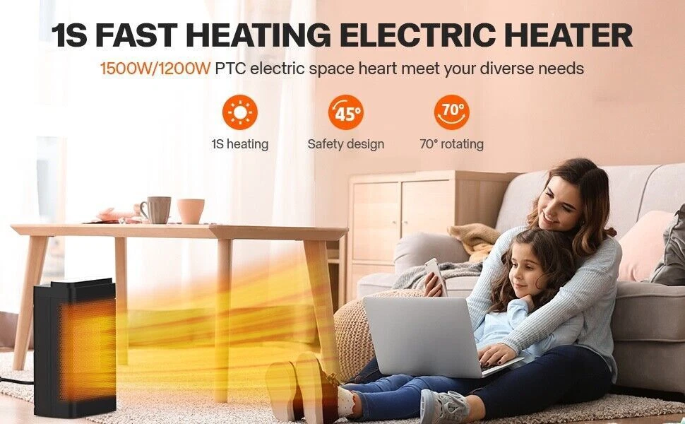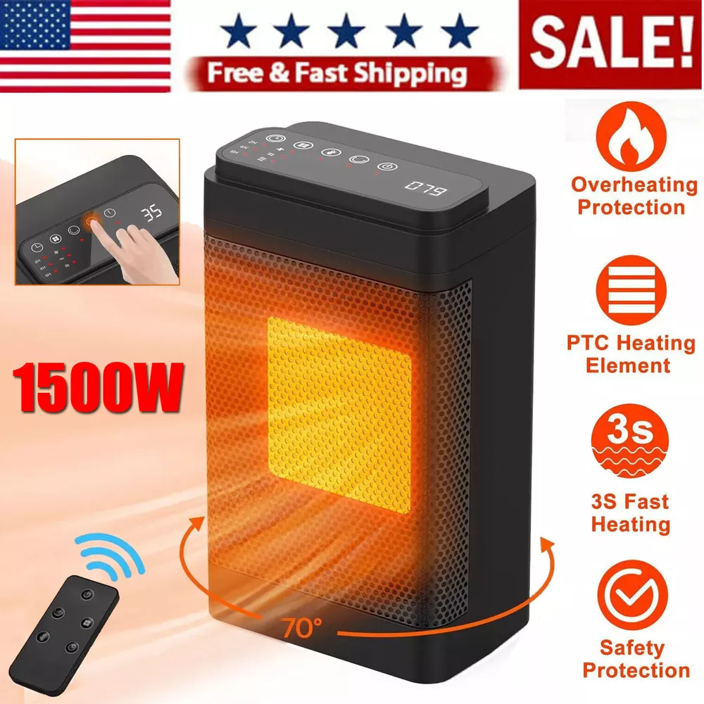Features: 2 Sec Rapid Heating: 50-115°F LED Adjustable Temperature: Tip-over Protection: Convenient&Portable: Low Noise&Energy-Saving: Specification: Product Name:Portable Electric Fan Heater Winter,electric warmer Working Voltage:110V Power:1500W Switch Type: Touch Applicable area: 21-30㎡ Power Plug:US standard power plug Shake Head:shake its head in all-round perspective Fast Heating: 3 seconds fast heating,instant heating Package Included: 1 x 1500W Portable Electric Space Heater 1 x Remote control 1 x Instructions Portable Electric Space Heater For Large Room 1500W Digital Thermostat Remote Features: 2 Sec Rapid Heating: Advanced PTC ceramic heating technology combined with ultra-efficient fans,2s fast heating of high-efficiency PTC element and 70° wide oscillation, increasing the heat distribution area while heating efficiently. In the cold winter, our electric heater can fill every corner of the bedroom and office with warmth in a short time. 50-115°F LED Adjustable Temperature: The intelligent indoor space heaters is designed with a digital thermostat that allows you to precisely adjust the temperature from 50-115°F in 1°F increments on the sensitive LED touchscreen to reach a comfortable environment. Besides, a remote is equipped so that you do not need to get up in the cold weather. Tip-over Protection: We ensure the safety of you and your loved ones by adding an advanced overheat protection sensor as well as a smart tip-over switch, which will automatically turn off the heater if it overheats or is tipped over by you.children or pets. Cool to the touch, reinforced prongs, and flame retardant materials make this heater a must-have for every home. Convenient&Portable: Small space heater size: 7.3×4.9×16 inch, weight: 2.64lb. Light weight and size make you take it with you and use wherever and whenever you need it, such as bedrooms, offices, garages, bathrooms, kitchens, etc. Low Noise&Energy-Saving: Electric space heater has noise level as low as 40 dB, excellent mute function make you more efficient at work and more comfortable in sleep. 1500W gear selection, and stable thermostat control to achieve low energy consumption and enough heating. Specification: Product Name:Portable Electric Fan Heater Winter,electric warmer Working Voltage:110V Power:1500W Switch Type: Touch Applicable area: 21-30㎡ Power Plug:US standard power plug Shake Head:shake its head in all-round perspective Fast Heating: 3 seconds fast heating,instant heating Package Included: 1 x 1500W Portable Electric Space Heater 1 x Remote control 1 x Instructions Payment Shipping Return Contact us About us Payment 1.Paypal, Credit Card, G Pay etc, many payment way is accepted. 2.Please be sure your shipping address is correct before make a payment. Shipping 1.We will ship out the item within 1-3 business days after comfirming the payment, appreciate your patience. 2.If the items are broken on the way( we will check the orders clearly before we sent them ),please contact us in 3 days you received it. We will send you a new one or refund your payment. Return 1.We stand behind every buyer.Items can be returned for exchange or refund within 30 days. 2.Please contact us when you have any confusion of our item, we will solve the trouble for you as soon as possible. Contact us 1.This is professional Seller.We will reply your message within 24 hours. 2.Please contact us whenever you have any question about the item. We will deal with it as soon as possible. 3. If you are unhappy with the item or our service,please Contact Us before leave feedback,just give me a chance,thank you! About us 1. Unless specified otherwise, all our products are IN STOCK and are shipped from Local warehouse - Not Overseas! 2. We provide a 30 day Satisfaction Guarantee or your money back (provided items are in the same new and resaleable condition.) 3. We have a PayPal Verified Business Account, please buy with Confidence! 4. Every item will be tesrted before send.We know our products well and if we don't have the answers we will do our best to find them for you! 5. Our friendly team look forward to serving you! Your satisfaction is our No.1 Priority We will do our best to satisfacy you.