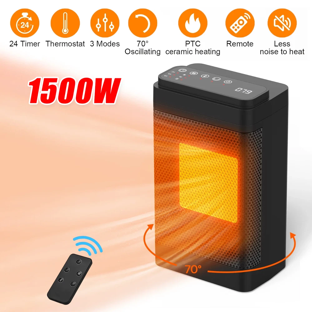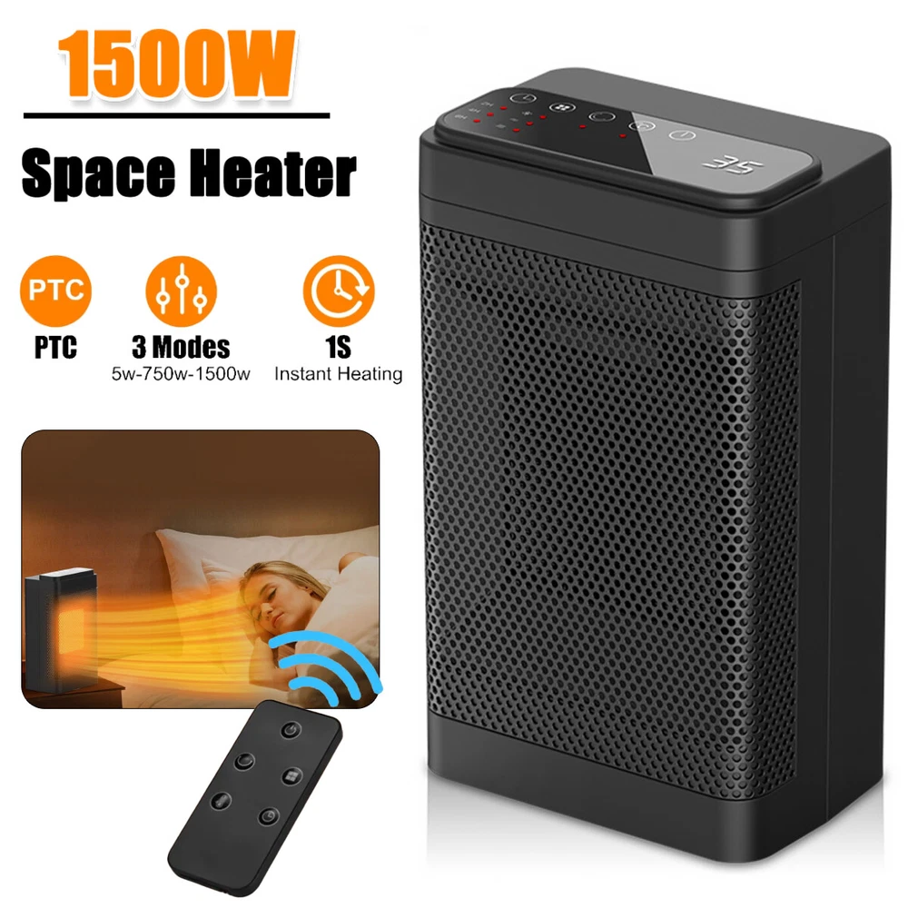Portable Electric Space Heater For Large Room 1500W Digital Thermostat Remote