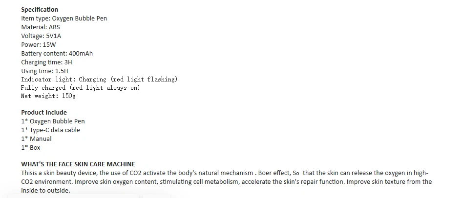 Portable Facial CO2 Bubble Pen Rechargeable Skin Care Beauty Device Home Use
