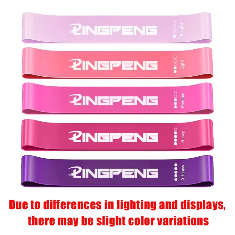 Description The resistance band set can be easily transported to use wherever you like. Get a great resistance bands workout in at home, the gym or when travelling Material: Latex Circumference: 600mm Size(Circumference * Width * Thickness): 600*50*0.35mm 600*50*0.5mm 600*50*0.7mm 600*50*0.9mm 600*50*1.1mm Features: Easy to grip and don't roll up through your body. Bands for different stretch levels: Extra Light, Light, Medium, Heavy and Extra Heavy. Resistance bands for legs and arm, to strengthen your muscles, shape your body or to recover after workout. Storage in a small mesh bag, you can put it in your purse, suitcase or backpack. They are made from eco friendly natural latex material.