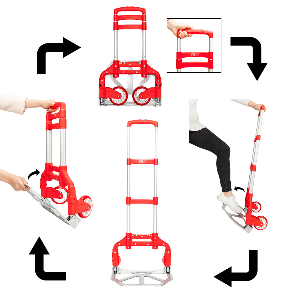 Portable Foldable Travel Cart Trolley Luggage Utility Carrier in Red