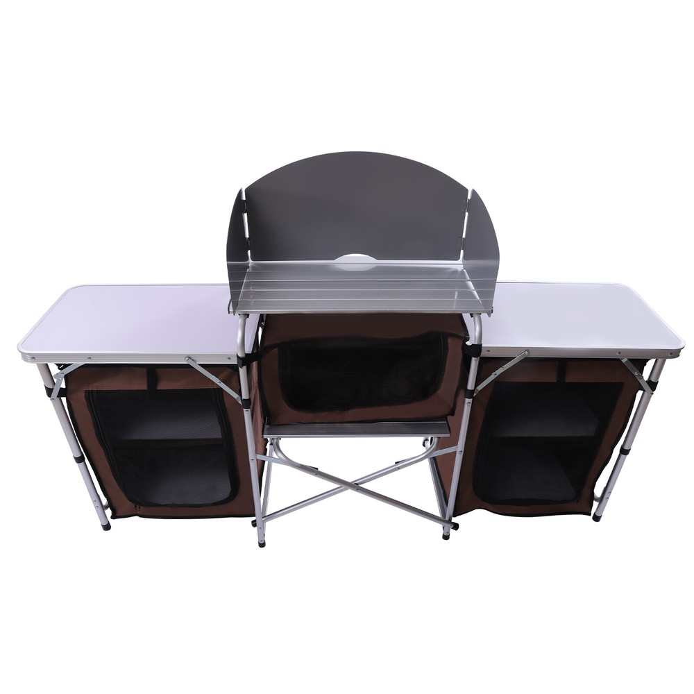 Folding Camping Kitchen Table Picnic Cabinet Table Portable Cooking Storage Rack Foldable Camping Kitchen Station Kit Folding Grill Table Tabletop & 2 Side Table Specification Color: Brown Model: Xh14645 Material: Aluminum Alloy, Oxford Fabric, Mdf Surface Treatment: Brushing Aluminum Tube Diameter: Ø25 Ø23 Ø19mm/ Ø1 Ø0.9 Ø0.7inch Aluminum Frame: 32mm/1.3inch Density Board Thickness: 4.5mm/0.2inch Product Overall Size: 174*46*110cm/69.3*18.4*43.3inch Product Folded Size: 79*49*10cm/31*19*3.9" Middle Table Size: 66*34*80cm/26*13.4*31.5inch Side Table Size: 60*40*70cm/23.6*15.7*27.6inch Cross Support Frame Height: 40cm/15.7inch Package Size: 80*57*12cm/31.5*22.4*4.7inch Gross Weight: 14kg/30.9lbs Net Weight:13.2kg/29.1lbs Load Capacity per Table: 50kg/110lbs Description Camping Is a Great Way to Relax and Unwind. but Camping May Require some Good Equipment, Such As a Folding Camping Kitchen Station for Barbecue. Our Camping Kitchen Station with 3 Tables Is the Ideal Choice for You. It Is Made of Strong Aluminum Alloy Frames and 600d Oxford Fabric, Very Strong and Solid with a Good Load-bearing Capacity. Folding Design Is a Good Choice for Carrying out. so Hurry up and Buy It to Camp with Your Family! Key Features High-quality Materials: the Tables of This Camping Kitchen Station Are Mainly Made of Aluminum-alloy, 600d Oxford Fabric and Mdf, Which Are Very Sturdy and Solid. Each Table Can Roughly Withstand 50kg/110lbs of Weight. You Can Use It with Confidence. Portable: This Folding Camping Kitchen Station Is Designed for Camping and Outdoor Carrying. It Is Light in Weight and Small in Size After Folding Easily, Which Is Very Convenient for Outdoor Use. Good Stability: the Cross and Square Aluminum Alloy Frames Are Solid Enough to Make the Table Stand Firmly on the Ground Without Wobbling. Thoughtful Windshield: the Center Table Is Equipped with a 3-Sided Windshield to Prevent the Wind from Blowing out the Fire While You Cook. Enough Space: This Kitchen Station Consists of Three Tables with Many Compartments, so It Not Only Has Enough Storage Space for Camping Supplies but Also Is Available for Several People to Make or Enjoy Food at the Same Time. It Is a Good Choice for Multi-person Camping! Suitable Height: the Highest Operating Table of This Camping Kitchen Station Is 31.5inch, Which Is Suitable for Most Adults to Comfortably Stand for Operation Without Bending down. Easy to Assemble: the Structure of This Portable Kitchen Station Is Simple and Can Be Easily Assembled by One Person. Relaxing Outdoor Time: It Is Very Relaxing and Enjoyable to Take Our Camping Chair with Your Family or Friends out for Camping or Picnics. Stylish Appearance: the Simple Line Design Looks Neat and Stylish, so It Is a Good Choice for Camping. Guaranteed Customer Service: Your Satisfaction Is Our Top Priority, We Will Make Things Right for You. If You Are Unsatisfied with Our Products, You Can Contact Us and We Will Ensure You Have a Pleasant Shopping Experience in Our Store. Details Cloth Covers: with the Cloth Covers, Things in the Compartments Will Not Fall off Easily. It Is Also Equipped with Straps That Can Be Easily and Firmly Fixed to the Table Legs. Moreover, the Grid Zipper Door of the Cloth Cover Is Easy to Open and Close As Well As to See and Find the Contents Inside. Anti-slip Pads: All the Feet Are Equipped with Anti-slip Pads to Prevent the Table from Moving Around. Hooks : Oxford Bags Are Connected to the Table with High-quality Metal Hooks to Ensure Their Stability and Easier Removal. Brushed Surface: After Being Brushed, the Tabletops Are Very Smooth. Moreover, the Brushed Tabletops Are Both Waterproof and Easy to Clean. Wrapped Edges: the Edges of the Mdf Tables Are Wrapped to Prevent Scratches and Bruises, Making Them Safer to Use. Application This Camping Kitchen Station Is Designed for Outdoor Use, You Can Use It in Your Garden, on the Beach, on Camping or Hiking Trips, and Fishing. You Can Even Use It at Home! Package Included 1* Table Frame 2* Metal Frames 1* Windshield 3* Brown Fabric Covers Notes Please Wear Gloves for Installation to Prevent Unnecessary Scratches. If the Equipment Is Very Dirty, Use a Mild Detergent and a Damp Cloth to Clean It. Avoid Using Sprays and Other Harsh Cleaners As They May Stain, Dirty or Dull the Surface. Make Sure the Unit Is Completely Dry and Store It in a Carrying Bag in a Dry, Ventilated Area. Please Allow the Slight Color Difference Caused by the Shooting Light and 1-3 Cm Error Due to Manual Measurement, and Make Sure You Do Not Mind Before Ordering. Payment Delivery details Terms of sales About us Contact us Payment We accept ebay payment 。 Fees such as import duties, taxes are not included in the item price or shipping costs. These charges are the buyer's responsibility. Delivery details Shipping: 2-9 working days to: USA Terms of sales We maintain high standards of excellence and strive for hundred percent customer satisfaction. Feedback is very important to us. We hope that you contact us immediately before you give neutral or negative feedback, so that we can address your concerns. It is impossible to address issues if we do not know about them! About us Your satis faction is our ultimate goal. We work hard to earn your trust and future business. Our certified technicians have tested each item before shipping. The unit comes with 1 year limited warranty on all manufacturing defects. a) If you receive a defective item, you may return it or ask for a discount. Please contact us within 14 days after you receive the package. b) What you returned must be intact and in its original packaging as re? u. Customer is responsible for shipping costs of the returned item. c) We will cover the cost of shipping back t with the shipping rate indicated in the registration page. We will send you a new unit or refund the full payment you paid. Thank you. Contact us Business Hour Business Hour: Monday To Friday: 8:30 AM to 5:00 PM (Beijing China time) Due t