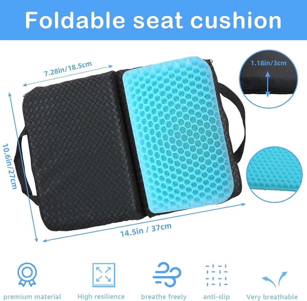 Portable Gel Seat Cushion Foldable Gel Travel Cushions for Long Sitting Press... Sedentary Comfort: This gel seat cushion made with gel, soft and durable, our pressure relief seat cushion disperse hip pressure, keep the hip curve. Relieve the pressure pain of the tailbone, provides additional comfort for any chair, seat, bench or stadium seat. Sitting for a long time will not feel stuffy, breathable, high resilience, comfortable, and not tired Good air Permeability: The portable seat cushion adopts a double-sided structure design, the texture is safe and does not deform, and has built-in free-flowing air channels to increase airflow, prevent stuffiness, maintain comfort, and bring ultimate coolness and comfort. Highly elastic gel always maintains its original shape without losing support, cracking and collapsing Removable anti-slip case: The seat cushion comes with a removable cloth cover with silicone anti-slip particles on the bottom to prevent it from moving from the seat. The cloth cover is hand and machine washable for easy cleaning. Size:14.5"x10.6" x1.18" Portable: The gel chair cushion adopts a foldable design to save space and is equipped with a handle for easy portability. It can also be carried in a handbag, backpack or luggage. The office chair seat cushion comes with a removable cover and is machine washable. You can take it to the stadium, office, plane, car, bus, train, other rooms, etc Perfect Gift: Gel cushion is ideal for any home, office or office desk chair, and for outdoor, garden or garden chair. Provide you with the comfort you need when you need it. Gel cushion can be given to your family and friends who are often sedentary.I believe they will like this gift Shipping We offer FREE shipping on all orders! We ship within Three business days of payment, usually sooner. We use a selection of shipping services such as UPS, FedEx, USPS etc. We only ship to the lower 48 states, no APO/FPO addresses or PO Boxes allowed. Local pickups and combined shipping options are not provided at this time. Return You can return a product for up to 30 days from the date you purchased it. Any product you return must be in the same condition you received it and in the original packaging. Please keep the receipt. Payment We accept payment by any of the following methods: PayPal Please pay as soon as possible after winning an auction, as that will allow us to post your item to you sooner! Feedback Customer satisfaction is very important to us. If you have any problem with your order, please contact us and we will do our best to make you satisfied. Contact Us If you have any queries, please contact us via ebay. We usually respond within 24 hours on weekdays. Please visit our eBay store to check out other items for sale! Thank you for shopping at our store.