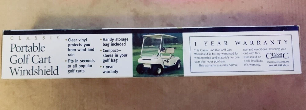 From Classic Accessories is a Portable Windshield for a Golf Cart Brand NEW in box, never opened.