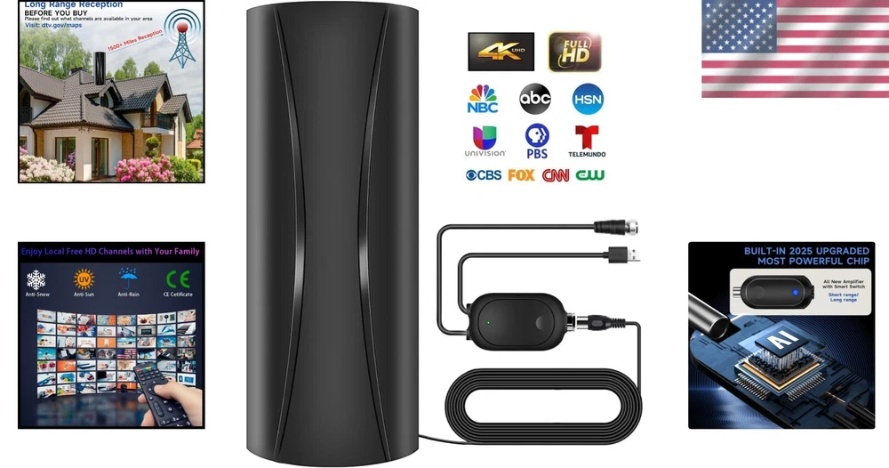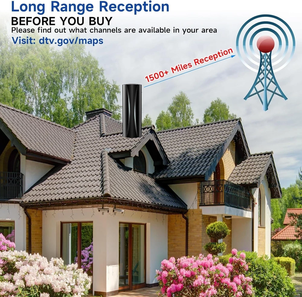 Portable HD TV Antenna, 36ft Cable, 1500 Miles Range, Perfect for 8K/4K