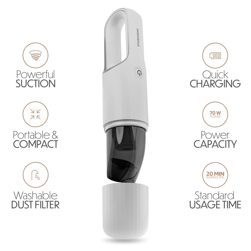 ✅ BUST THE DUST AWAY - This cordless vacuum is fitted with an ultra-powerful suction and a strong motor so you can eliminate dirt, dust, and other particles that may be lurking on any surface. ✅ SLEEK & STYLISH DESIGN - Flaunting a minimalist and chic design, this hand vacuum is available in three colors: black, white, and pink. It strikes the perfect balance of style and performance. ✅ VERSATILE & EFFICIENT - Enjoy universal compatibility as this small vacuum seamlessly works on almost any surface. It cleans your car interior, sofa, carpet, furniture, and even your keyboard! ✅ ENJOY WIRELESS FREEDOM - Easily clean even hard-to-reach places as the limiting cords no longer bound you. This hand held vacuum offers user mobility, making your cleaning tasks more manageable. ✅ ERGONOMIC CONSTRUCTION - The compact body of this mini vacuum makes it very comfortable to carry around wherever you need it. Its lightweight form enables you to clean longer without tiring your arms.