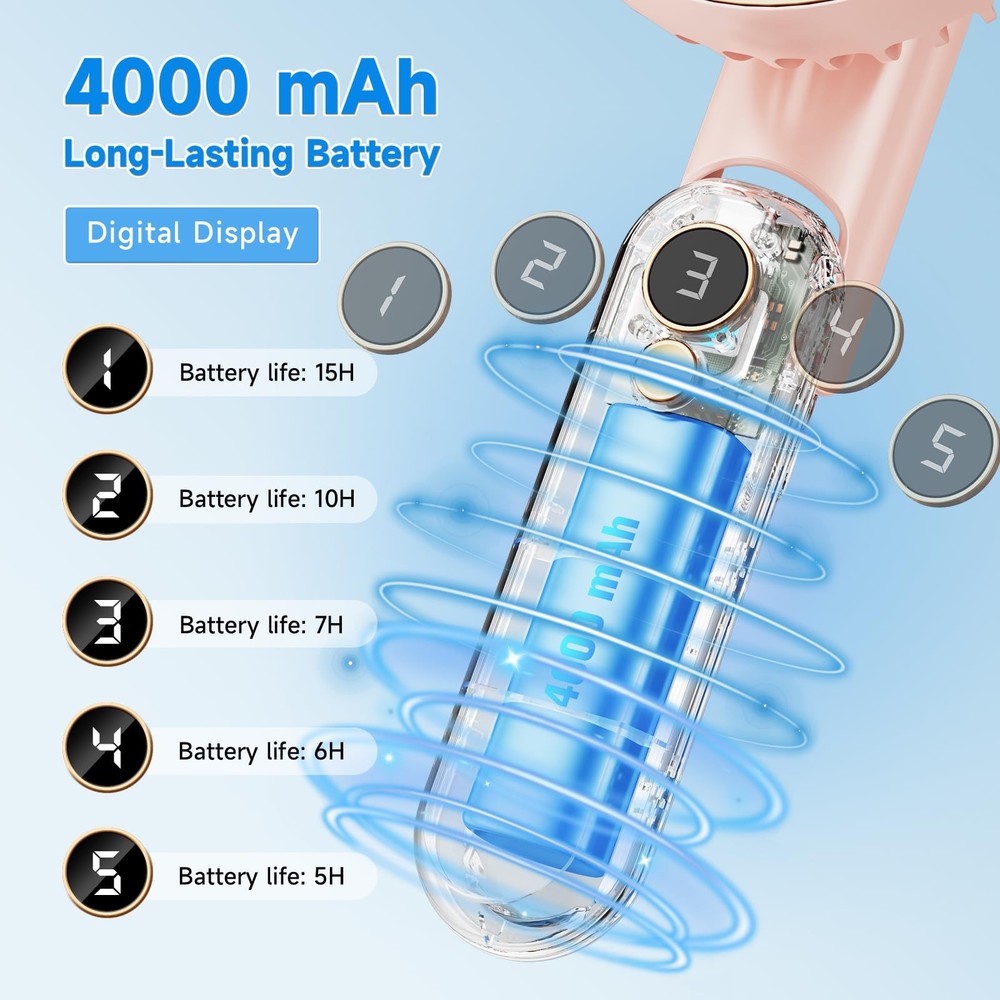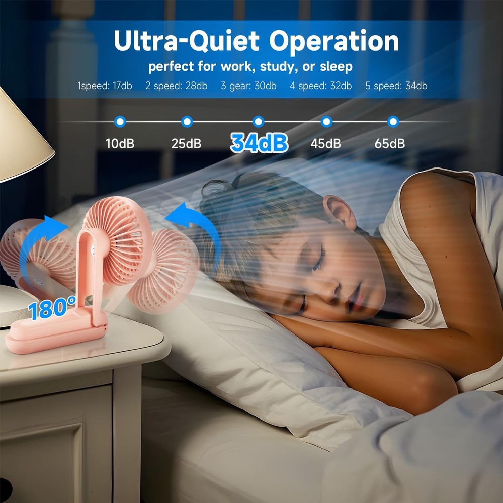 Beat the heat and stay refreshed wherever you go with the Portable Handheld Fan—your ultimate cooling companion! Whether you’re hiking, working, or simply relaxing at home, this mini fan handheld is designed to keep you cool and comfortable all day long. With its sleek, lightweight design and powerful performance, it’s the perfect portable fan for travel, office, or daily use.  Why Choose ?  Long-Lasting Cooling Power: Equipped with a 4000mAh rechargeable battery, this portable fan rechargeable offers up to 15 hours of continuous operation on a single charge. No more worrying about running out of battery during your adventures!  5 Adjustable Speeds: Customize your cooling experience with gentle, natural, or strong airflow. This handheld fan portable ensures you the perfect breeze for any occasion.  Compact & Travel-Ready: This mini portable fan is lightweight and easy to carry. Its foldable design makes it a hand fan foldable that fits effortlessly into your bag, purse, or pocket—ideal for travel fans portable or daily commutes.  Ultra-Quiet Operation: With noise levels below 35dB, this personal fan is so quiet you can use it in the office, at night, or even while sleeping.  Adjustable Head: The 180° adjustable head allows you to direct airflow exactly where you need it—whether it’s your , neck, or body.   Perfect for Every Occasion  Outdoor Adventures: Stay cool during hikes, picnics, or beach trips with this portable fans that blow cold . Daily Use: Keep it on your desk, in your bag, or at home for instant on hot days.  Travel Must-Have: Compact and efficient, this travel fan portable is a lifesaver for long flights, road trips, or sightseeing.   Ideal for Everyone  This versatile hand held fan rechargeable is perfect for hand fans for foldable, , men, or anyone who wants to stay cool, making it a global favorite for summer essentials.  Key Features:  Portable fan rechargeable with long-lasting battery life Mini handheld fan with 5-speed settings Ultra-quiet fans handheld for noise-operation Compact and foldable (hand fan foldable) design  Love  Thousands of happy customers rely on for their cooling needs. Whether you need a small portable fan, pocket fan, or mini fans portable, this fan delivers exceptional performance and convenience.  Stay Cool, Stay Refreshed  Don’t let the heat ruin your day. Grab your portable handheld fan today and enjoy the ultimate cooling experience wherever life takes you! Available in stylish designs, this abanicos de mano is more than just a fan—it’s your summer essential.  Order Now and Experience the Difference!  Why Wait?  Click “Add to Cart” and make the Mini Fan your go-to personal fans solution for hot days and warm nights. With its unbeatable performance and portability, it’s the perfect small fans portable companion for you and your loved ones. Stay cool, stay comfortable, and stay refreshed—every day! 5 -15 Hours Cooling Time: Equipped with a high-capacity battery, our portable fan provides up to 15 hours of continuous use(depending on the gear), ensuring you have a cool and comfortable experience throughout the day. Your Travel Essentials: Our personal fan is lightweight and easy to carry, it's perfect for your travel, outdoor adventures, yoga sessions, office work, gym workouts, and car ride. It is also a best gift for Halloween, Thanksgivings, white elephant, Christmas gifts, stocking stuffer for , girl, , grandma, friends. 180° Adjustable Angle: Our mini fan features a unique 180° adjustable angle, allowing you to easily adjust the direction of the wind to meet your needs in different scenarios, such as outdoor activities, yoga, office work, gym workouts, and as a desk fan. Ultra-Quiet Operation: Our fan operates quietly, ensuring you can enjoy a cool and comfortable environment without any noise disturbance, whether you are working in the office, practicing yoga, or relaxing at home. 5-Speed Wind Adjustable Hand Held Fan: Our fan offers 5-speed settings, allowing you to choose the perfect wind speed for your needs, from gentle breeze to strong wind, providing a more personalized and comfortable experience. Excellent : If there is any problem with our hand fan, we provide excellent , ensuring you can help and whenever you need it.