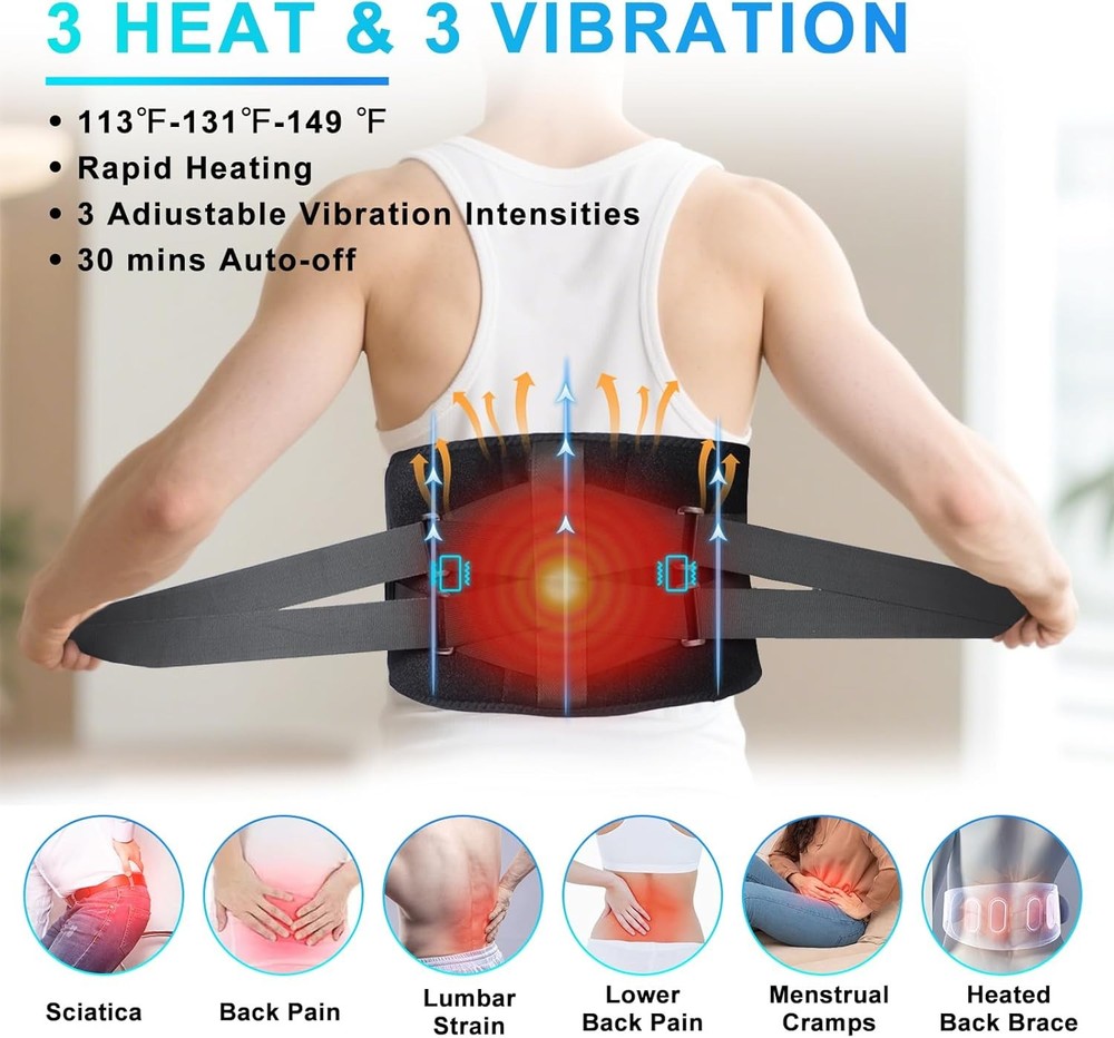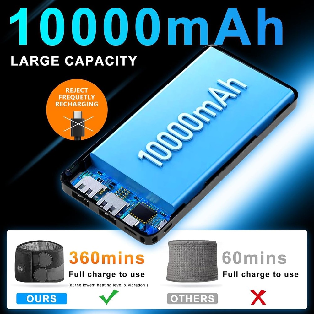 Experience Ultimate Relaxation with Our Portable Heating Pad & Massager! Introducing the Youth Feast Portable Heating Pad for Back – the perfect solution for soothing lower back pain and tension. With its advanced features, this cordless heating pad combines heat and vibration for a customizable and comfortable experience, wherever you are! Key Features: 10000mAh Cordless Heating Pad: Enjoy 2 weeks of daily massage cycles without frequent recharging. Take your relaxation anywhere – at home, in the office, or at the gym. Comfortable Wear: Perfect for relaxing while doing chores or during long trips. This heating pad melts away your cares and provides warmth on chilly days. 3 Heating and 3 Vibration Settings: Choose from three heat levels (45℃-65℃) and three vibration modes, allowing you to find the perfect combination for your comfort. Lower Back Support: Features three non-removable support poles for superior lower back support, ideal for long hours of housework or heavy lifting. Pain Relief: Combines heat and vibration to effectively relieve hip and waist pain, muscle tension, and more, making pain management easier. Adjustable Fit: The extension band stretches up to 58", ensuring a snug fit for various waistlines and allowing for hands-free use. Important Reminders: Charger not included; use your own USB charger. Battery may arrive not fully charged for safety during transport. Why You'll Love It: This portable heating pad is all about convenience and comfort. Imagine relaxing in your favorite chair, or even while doing household chores, with soothing heat and vibrations working to ease your tension. Its lightweight design means you can take it on the go, providing you with the relief you need during long car rides, flights, or any time you're away from home. Enjoy your daily activities while giving your back the care it deserves!