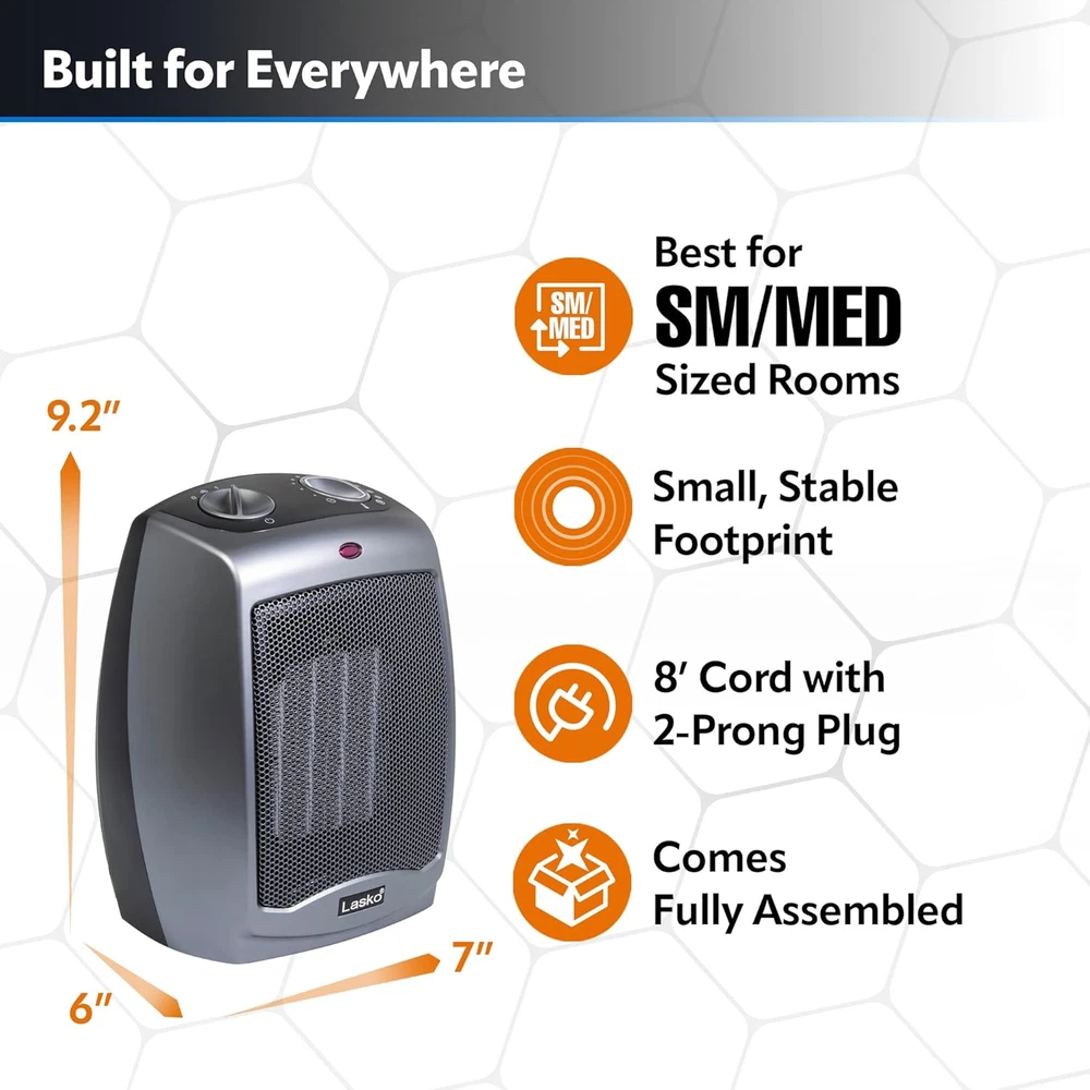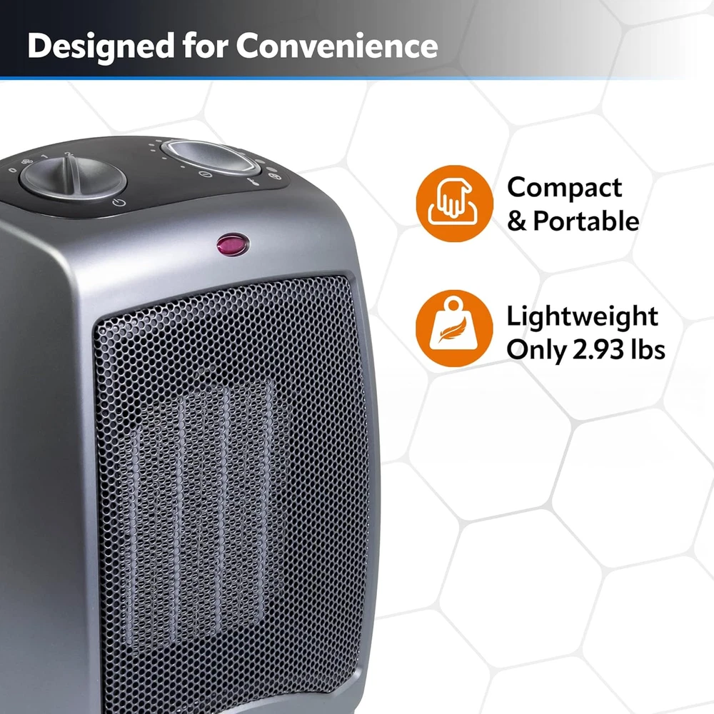 Portable Indoor Electric Ceramic Space Heater with Tip-Over Safety Switch, Overh