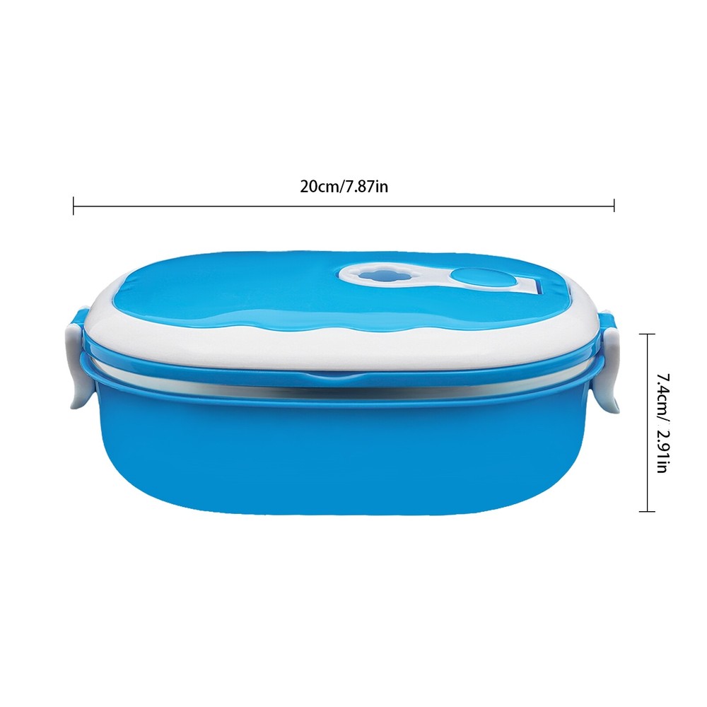 Travel Insulated Warmer Food Container Portable Lunch Box Hot Food Description This lunch box is a good choice when you want to eat healthier or enjoy different foods more easily at work. It is made of high-quality materials, sturdy, safe, and durable. With a sealed lid and sturdy buckles, it is leak-proof, so you can use it confidently. Its lightweight, compact size and portable handles allow you to easily take it around. With it, you can prepare delicious food for your kids, family, and loved ones. Key Features Build to Last: Food-grade stainless steel, PP, rubber, silica gel, and injection molding process make this item harmless, safe to use, corrosion resistant, high temperature resistant, and odorless, so it can withstand the test of time. Convenient Life: This product is refrigerator-safe and microwave-safe, so you can freeze your prepped meals and pack them to-go in the morning and easily reheat meals in the office. Sealed and Spill-proof : The sealed lid with silicone sealing ring and buckle design not only prevents the soup from spilling but also enhances the heat preservation effect. Large Capacity: A 30.44-ounce capacity can satisfy the food needs of kids and adults, allowing you to store rice, soups, and fruits. Insulation Function: Its stainless steel inner liner and well-sealed lid allow for an insulation time of about 1-2 hours when the room temperature is 68℉, so you don't have to worry about the food quickly becoming cold. Easy to Carry & Storage: Its lightweight(0.55 lbs), compact size(7.87*2.91in), and foldable arch handles allow you to easily place it in your bag and carry it to different places. You can keep your fitness and nutrition goals by using this item to take healthy meals and snacks wherever you go. Effortless Cleaning: The simple structure, removable lid, and smooth surface allow you to easily clean it with a wet wipe, water, and mild cleaning agent. Beautiful Appearance: The pleasing blue tone with little white embellishment, smooth lines, and simple style make this item modern and fashionable. Ideal Gift: This beautiful and practical lunch box is a great birthday or holiday gift for your family, friends, and kids, so they can enjoy a more convenient life. Customer Service : We aim to provide quality products and services. If you have any problems, please feel free to contact us. We will reply and solve the problem for you as soon as possible. Details Anti-slip Feet: The four anti-slip feet improve the stability of this item without easy sliding or scratching the tabletop. Rubber Ventilation Hole: It makes it easy to open the lid when the pressure inside the box is high. Round Edges: The round edges add beauty to this product and take care of your skin. Application It enables you to prepare various foods for work, school, picnics, or camping, as well as nutritional meals for children or visiting patients. Specification Color: Blue Style: Modern Shape: Rectangle Number of Tiers: 1 Number of Items: 1 Closure Type: Buckle Process: Injection Molding Material: Stainless Steel, PP, Silicone, Rubber Insulation Time: About 1-2h (Room Temperature: 20℃/60℉) Capacity: 0.9L/30.44oz Product Size(L*H): 20*7.4cm/7.87*2.91in Package Size: 20*15*8cm/7.78*5.91*3.15in Gross Weight: 0.31kg/0.68 lbs Net Weight: 0.25kg/0.55 lbs Package Included 1* Lunch Box Notes For a better insulation effect, you can preheat the stainless steel inner liner with boiling water before filling the meal. When food needs to be placed, pour out the hot water and quickly cover the food while it is hot. Please cover the product tightly when heating it in the microwave. Please clean it several times with boiling water before use for high-temperature disinfection. Please clean it with a soft cloth, warm water, and diluted food detergent. Please do not use alkaline bleach, metal cloth, chemical cloth, etc. Please clean it and keep it dry for a long time use. Please do not contact with salt-containing substances (or other acidic or alkaline substances) such as sauces and soups for a long time to avoid rusting. Sometimes, the inner side of the stainless steel liner may have red rust spots due to the influence of substances such as iron in the contents. You can soak it in diluted vinegar with warm water for ten minutes and clean it. Please avoid overturning, collision, and strong impact, as this may cause deformation of the product, affecting its aesthetics and usage effectiveness. Please allow the slight color difference caused by the shooting light and 1-3cm error due to manual measurement. Please make sure you do not mind before you order. Payment Delivery details Terms of sales About us Contact us Payment We accept ebay payment 。 Fees such as import duties, taxes are not included in the item price or shipping costs. These charges are the buyer's responsibility. Delivery details Shipping: 2-9 working days to: USA Terms of sales We maintain high standards of excellence and strive for hundred percent customer satisfaction. Feedback is very important to us. We hope that you contact us immediately before you give neutral or negative feedback, so that we can address your concerns. It is impossible to address issues if we do not know about them! About us Your satis faction is our ultimate goal. We work hard to earn your trust and future business. Our certified technicians have tested each item before shipping. The unit comes with 1 year limited warranty on all manufacturing defects. a) If you receive a defective item, you may return it or ask for a discount. Please contact us within 14 days after you receive the package. b) What you returned must be intact and in its original packaging as re? u. Customer is responsible for shipping costs of the returned item. c) We will cover the cost of shipping back t with the shipping rate indicated in the registration page. We will send you a new unit or refund the full payment you paid. Thank you. Contact us Business Hour Business Hour: Monday To Friday: 8:30 AM t