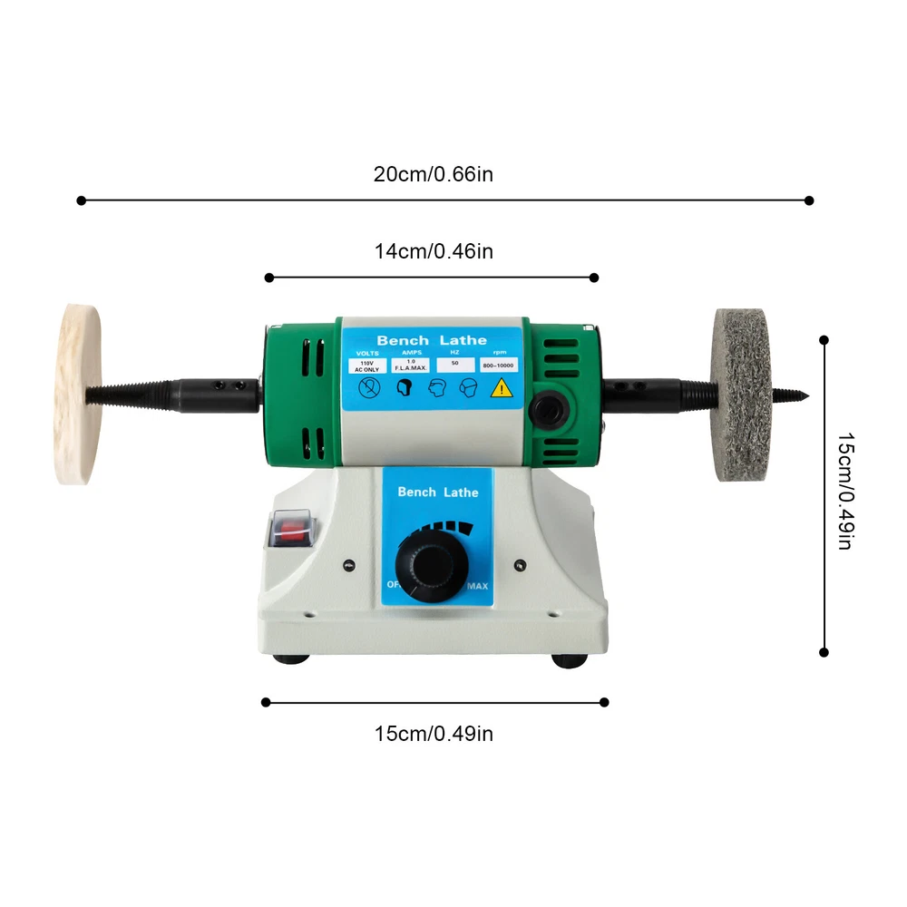 welcome to gosdtopnew! Description The multifunctional bench buffer polisher has advantages such as versatility, high efficiency, easy operation, good polishing effect, and simple maintenance. With a 320W high-speed motor and adjustable speed, it can meet various polishing needs and is widely used in fields such as machinery, electronics, automobiles, furniture, and hardware products. Key Features Build to Last: This polisher uses high-quality aluminum alloy and plastic material with plastic spraying treatment, making it anti-rust and strong. Powerful Polishing: Using a 320W pure copper motor, this motor can drive the polisher at a high speed of up to 10000rpm, providing you with powerful polishing force and a significant polishing effect with low noise&vibration. Variable Speed: You can achieve step-less speed adjustment from 800–10000 rpm through the control knob to meet multiple required speeds for polishing different materials. A Professional Polisher: Equipped with a main machine, 2 cloth wheels, 2 fabric wheels, and other essential accessories, it is a professional polisher for polishing, milling, removing rust, and more. High Safety: The double-insulation motor, premium bearing that can balance temperature around 86℉, and the heat-sink holes on the machine can enhance electrical safety and ensure the heat can be discharged at a faster speed to protect the motor from being burned out due to long-term use. Easy to Install&Use : Two mounting holes on the base facilitate installation on the desktop, ensuring stable operation. Two tapered spindles can be connected to a 0.3" motor shaft and can accommodate muslin or buffing/polishing/grinding wheels with a diameter of up to 4". Compact Design: Its compact size(7.87*5.9 inches) and 8.15 lbs lightweight make this polisher easy to carry and store without taking up much space, as well as fits any countertop. Effortless Maintenance: Equipped with pre-lubricated ball bearings and dustproof motor casing, it's almost maintenance-free. You simply clean and replace the polishing wheel regularly. Ideal Gift: Such a powerful and practical polisher is an excellent gift to professionals or enthusiasts of DIY projects for various holidays such as Christmas and birthdays. Protective Package: To prevent the product from being damaged and bumped during transportation, we packed it with foam to protect your products to the maximum extent possible. Buy with Confidence: We have been working hard to provide better service and quality for our customers, which is our goal. If there is any problem with our products, please contact us in time. Details Carbon Brush Installation Port: You simply rotate out the carbon brush cover with a flat head screw(not included) to replace the carbon brush and extend its service life. Dustproof Cover: The dustproof cover on the power switch improves electric safety, keeps it clean, and makes it durable. Anti-slip Feet: The anti-slip feet can reduce vibration and provide additional support to better maintain the stability of the product without scratching the tabletop. Power Cord: With a 4.9ft power cord, you can use this polisher without worrying about the distance. Power Indicator: The right and left power indicators prompt whether the power supply is working properly, thus helping you better understand the working status and issues of the device. Application It is suitable for cutting, carving, drilling, grinding, polishing, and milling diamond, gold, leather, metal alloy, silver, stainless steel, wood, etc. It applies to the machinery/instrument/furniture manufacturing industry, electronics industry, metal processing, etc. Specifications Color: White, Green Style: Modern Shape: Round, Square Material: Aluminum Alloy, Plastic Treatment: Plastic Spraying Assembly Required: Yes Compatible Material: Wood, Jade, etc. Power Source: Corded Electric Plug: US Standard Voltage: AC 110V Frequency: 50Hz Power: 320W Amps: 1 F.L.A.MAX. Idle Speed: 800-10000rpm Number of Cloth Wheels: 2 Number of Fiber Wheels: 2 Spindle Diameter: 8mm/0.3inch Power Cord Length: About 1.5m/4.9ft Main Body Length: 14cm/5.5inch Base Length: 15cm/5.9inch Product Size(L*H): 20*15cm/7.87*5.9inch Package Size: 15*20*20cm/5.9*7.8*7.8inch Net Weight: 3.7kg/8.15 lbs Gross Weight: 4.5kg/9.9 lb Package Included 1* Bench Buffer Polisher 2* Tapered Spindles 2* Cloth Wheels 2* Fiber Wheels 4* Spindle Screws 1* Allen Key 1* English Manual Notes Please use the correct buffing wheel and polishing compound. This package only includes cloth wheels and fiber wheels, you need to purchase other accessories if you want to use this polisher for carving, drilling, etc. Please distinguish the left and right spindles to ensure the wheels can work. The wheel won't stay on the spindle because you installed the spindle backward. When using this tool, please pay attention to the safety of electricity and take necessary protective measures. And it should be kept out of reach of children daily. Please do not wear loose clothing, scarves, ties, or hand jewelry when operating to avoid danger from being caught in moving or rotating parts. When cutting jade, it needs to add water. Please read the operating manual completely before use. And pay particular attention to the safety instructions included. Please allow the slight color difference caused by the shooting light and 1-3cm error due to manual measurement, and make sure you do not mind before you order. Payment Delivery details Terms of sales About us Contact us Payment We accept ebay payment 。 Fees such as import duties, taxes are not included in the item price or shipping costs. These charges are the buyer's responsibility. Delivery details Shipping: 2-9 working days to: USA Terms of sales We maintain high standards of excellence and strive for hundred percent customer satisfaction. Feedback is very important to us. We hope that you contact us immediately before you give neutral or negative feedback, so that we can address your con