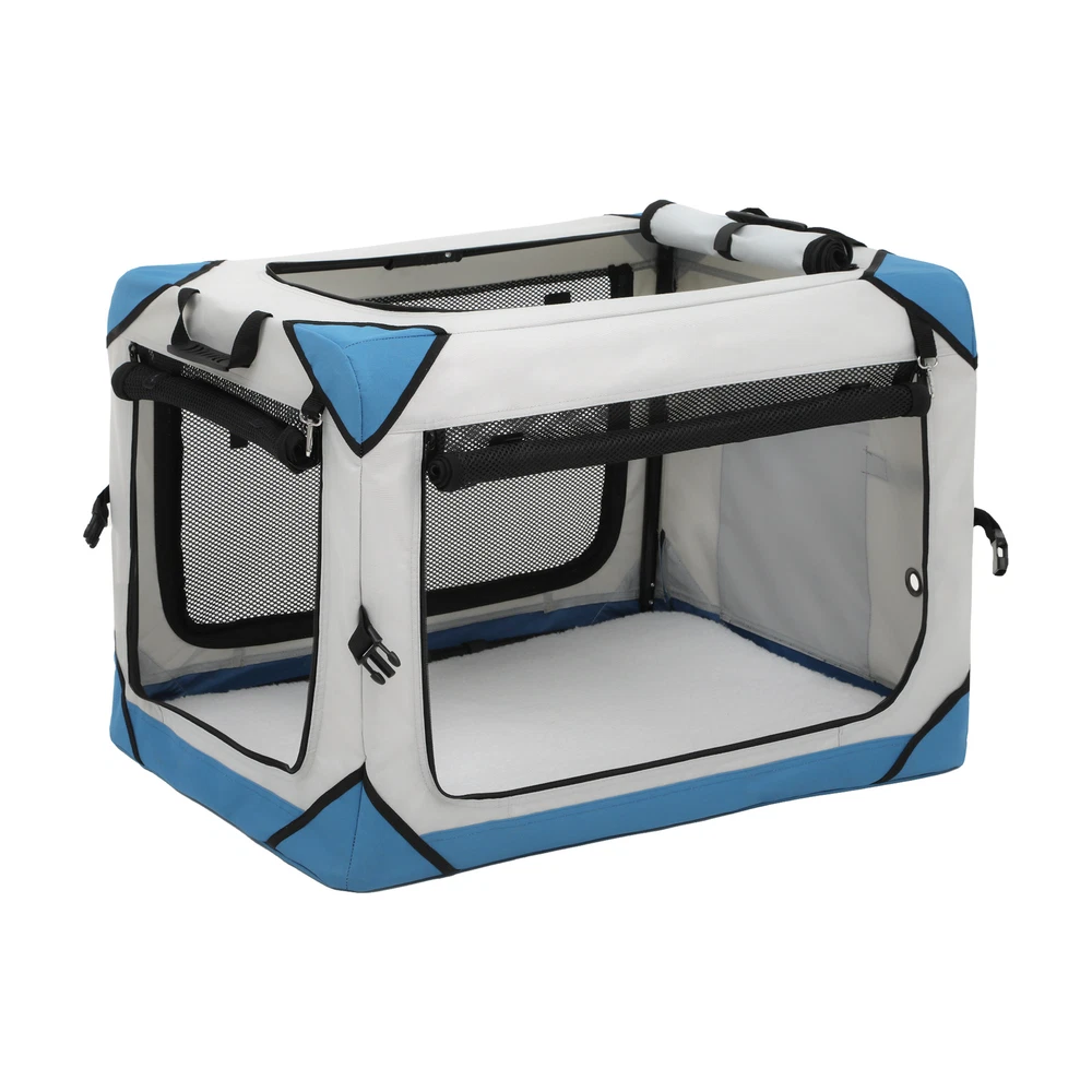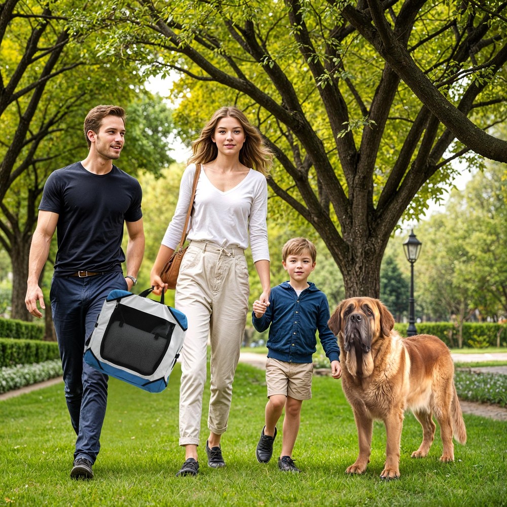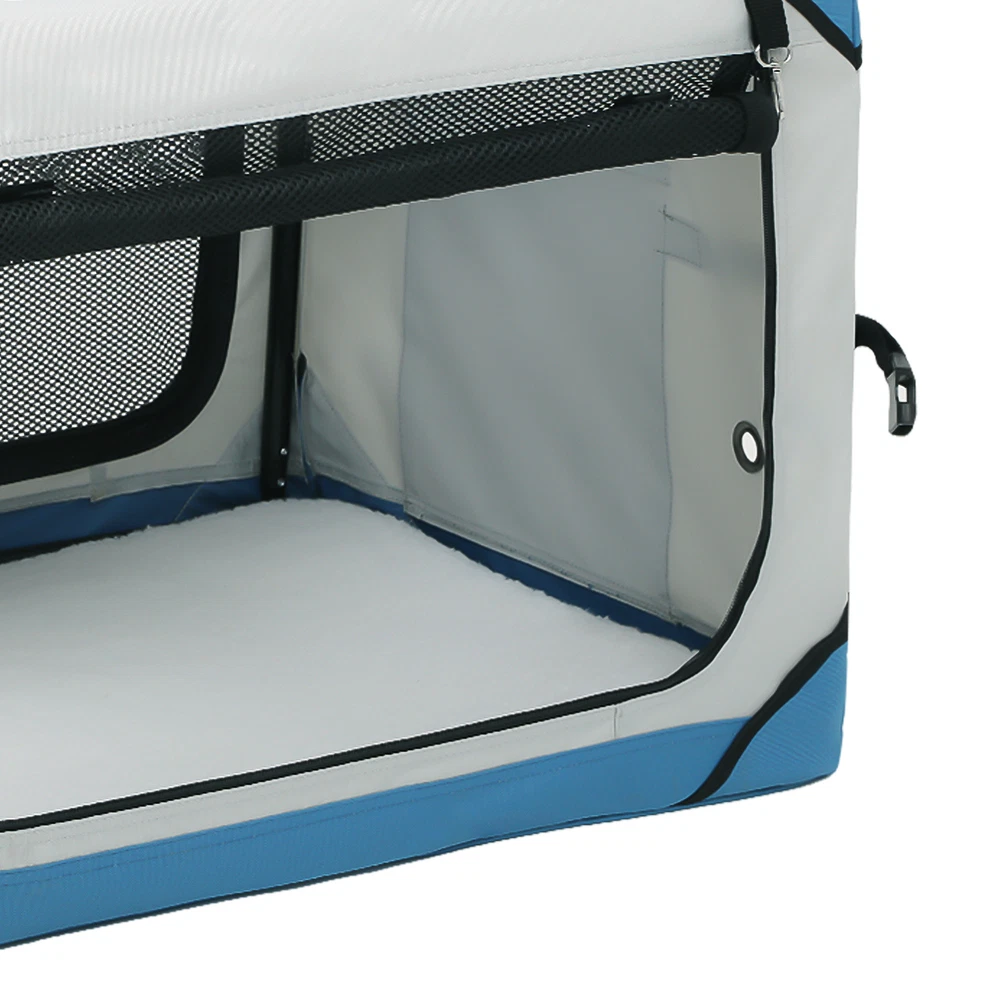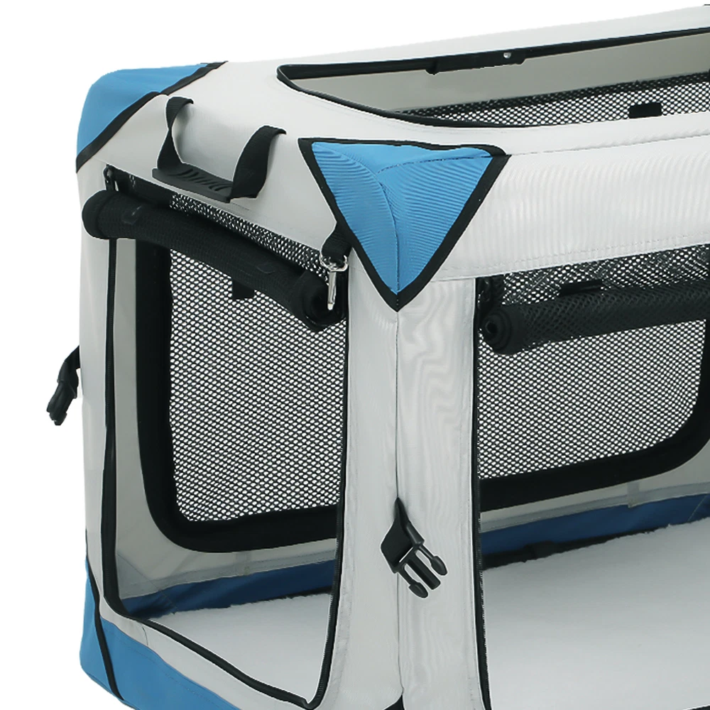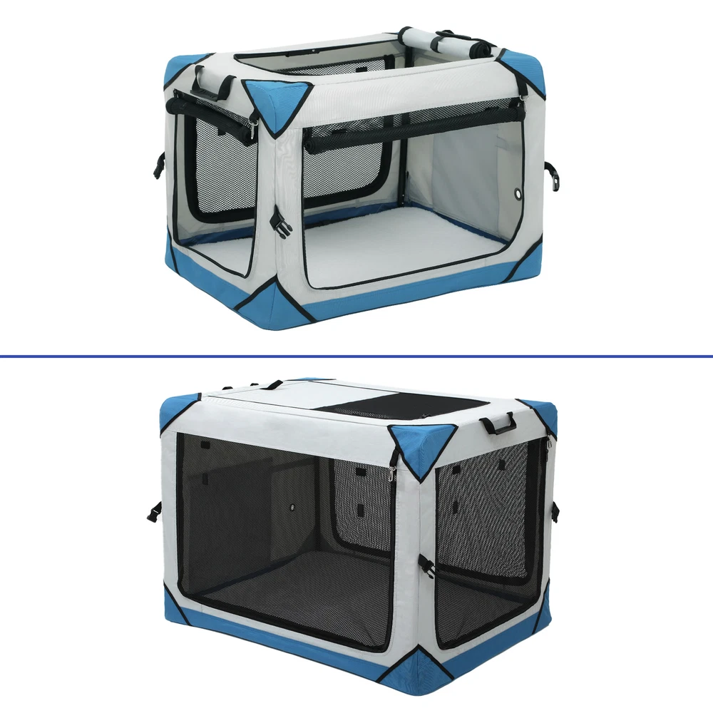 Portable Dog Crate Large Pet Travel Carrier Waterproof Camping Cage w/ Plush Pad < /div> Product Description NOTE: Professional Installation would be Highly Recommended. Description: 1. Color: Light Gray + Deep Blue 2. Material: Iron Tube, 600D Oxford Fabric, Eyelet Mesh Fabric 3. Special Design: Waterproof, Zipper Closure, Storage Bag, Three Sides Doors, Top Openable 4. Suitable for: Large Size Dog/Pet, Travelling Carrier, & Camping Cage Features: 1. Spacious and Convenient: This collapsible dog crate measures 36" L x 25" W x 25" H, providing ample space for pets up to 32" L and 21" H, with a maximum weight of 70 lb. Perfect for home and travel use. 2. Portable Design: Lightweight at 10.2 lb, this dog crate is easy to transport. The included storage bag makes it convenient to pack and carry, perfect for on-the-go pet owners. 3. Versatile Access: Features three side doors and a top that can be opened, allowing easy access and flexibility. The zipper closures ensure your pet remains secure while providing hassle-free entry and exit. 4. Durable Construction: Built with a sturdy iron tube stand and reinforced with spray coating. The 600D Oxford fabric and 190g eyelet mesh fabric ensure durability and breathability for your pet's comfort. 5. Waterproof and Easy to Clean: The waterproof fabric ensures easy maintenance and cleanliness, keeping your pet dry and comfortable in all conditions. Ideal for both indoor and outdoor use. Dimensions: 1. Overall Dimensions: 36" L x 25" W x 25" H 2. Maximum Pet Size: 32" L x 21" H 3. Maximum Weight: 70 lb 4. Item Weight: 10.2 lb Package Included: 1. 1x Dog Crate 2. 1x Accessory Kit 3. 1x Instruction Shipping 1. Normally the item will be dipatched within 1 business day if payment is cleared before 12pm PST. 2. Please verify the correct shipping address in your PayPal account before making the payment. We only dispatch the item to the address that is sent to us at the time of checkout. 3. We don't ship to Hawaii, Alaska, Puerto Rico, APO/FPO/PO Boxes. 4. We don't provide local pick-up service. 5. Normally we will use USPS, UPS, FedEx & LTL to dispatch items. Payment 1. We accept PayPal and credit card. 2. We will ship to the confirmed Paypal shipping address that is provided with the payment only. Return 1. 30 days Money Back Guarantee. 2. Please contact our customer service to receive a RMA form first if want to return the item. 3. All returned items MUST in new condition with the original package. Contact If has any problem, please contact us by sending an ebay message. Our customer service will resolve the problem as soon as possible. On Feb 13, 2025 at 02:28:40 PST, seller added the following information: