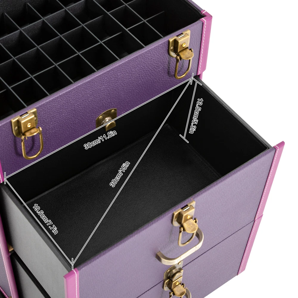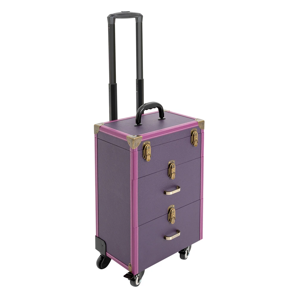 Portable Makeup Train Case Professional Cosmetic Trolley Travel Vanity Organizer Makeup Train Case, Rolling Makeup Trolley Case, Nail Polish Organizer, Jewelry Travel Cosmetic Train Case w/ 4 Wheels, Purple Description If you are troubled by storing all your hairdressing tools in order and finding them easily, our makeup train case can be of great help to you. Featuring high durability, attractive appearance, large capacity, universal wheels, humanized handles, a telescopic rod, and more, this product is easy to carry outside while keeping practical and beautiful. It is an ideal choice for young manicurists, make-up artists, and hairdressers/cosmetics lovers to store various cosmetics. Application It is good for manicurists, makeup artists, both beginner and professional, freelance makeup artists, wedding makeup artists, celebrity makeup artist, and cosmetic trainees. Specification Target Audience: Unisex Adult Caster Type: Swivel Mounting Type: Free Standing Material: PU, PVC, Zinc Alloy, Aluminum Alloy Color: Purple Shape: Rectangular Number of Tiers: 3 Number of Wheels: 4 Max. Load-bearing Capacity: 40kg/88.2lbs Number of Keys: 2 Lid Size: 36*23cm/14.2*9inch Wheel Height: 7cm/2.8inch Telescopic Rod Length (Min.): 38cm/14.9inch Telescopic Rod Length (Max.): 86cm/33.8inch Second Tier Inside Size: 30*19.5*13.5cm/11.8*7.7*5.3inch Each Compartment of Top Tier Size(L*W): 3.5*3.5cm/1.4*1.4inch Each Compartment of Third Tier Size: 14.5*19*13.5cm/5.7*7.5*5.3inch Top Tier Height: 9cm/3.5inch Second&Third Tier Height: 17cm/6.7inch Overall Case Body Size: 36*23*49cm/14.2*9*19.3inch Overall Product Size: 36*23*101cm/14.2*9*39.76inch Package Size: 63*32*41cm/ 24.8*12.6*16.14inch Gross Weight: 10kg/22.04 lbs Product Weight: 9kg/19.84 lbs Key Features Beautiful Appearance: Elegant p urple color combined with a rectangular frame, smooth lines, and delicate lychee texture gives this product a stylish and beautiful look. High-quality bronze hardware and exquisite stitching also add to its appearance. Durable and Sturdy: This product is constructed with premium PU, PVC, and reinforced corners, aluminum alloy rod, zinc alloy-wrapped edge , which is waterproof, wear-resistant , and has a long service life. Categorized Storage : The 3-tier and compartment designs, cubicles, and a large clear pocket on the lid give this case a large capacity to hold your daily cosmetics and makeup tools in a categorized way, allowing you to quickly find what you want. And the dividers are removable for organizing different sized bottles. Easy to Move&Carry: 4 universal wheels (2 of which are lockable) ensure that the case can be moved smoothly and silently in all directions and allow for safe fixation to handle different road conditions. The telescopic handle and top handle give it high portability. Easy to Clean: The lid and drawer designs can prevent dust from entering, along with the waterproof surface, making it easy to clean. You just need to wipe off the dirt with a wet cloth. High Safety: The 4 latch locks and waterproof surface provide maximum protection and security for your toiletries, giving you peace of mind while traveling. Excellent Load-bearing Capacity: The sturdy construction and the zinc alloy frame provide the product with an excellent weight-bearing capacity of 88.2 lbs. You can place all kinds of hairdressing and beauty tools in it with confidence. Protective Packaging: To prevent the product from being damaged and bumped during transportation, we pack it with pearl cotton for maximum protection of your products. After-sales Service : We aim to provide quality products and services. If you have any problems, please feel free to contact us, and we will reply and solv e the problem for you as soon as possible. Details Back Buckles: The back of the luggage has two hardware eight-nail back buckles to make the case more stable and to ensure that it remains as good as new when repeatedly opened and closed. User-friendly Drawer Handle: The 2 comfortable drawer handles of the second and third tiers allow for convenient closing/opening of the drawers, thus ensuring easy access to the inside items. Structure Overview The inside of the lid has a makeup bag where you can keep the things you use regularly for quick and easy access. The first tier can be used for nail varnish or other small items. The second tier is suitable for larger items such as hair dryers, curling wands, nail art machines, and more. The third tier has two compartments for medium items, such as cosmetics, hairspray spray. Package Included 1*Makeup Train Case 2*Keys Notes Please note that cosmetics or makeup tools are not included. This product is a carry case only. This product includes two keys. Please allow the slight color difference caused by the shooting light and 1-3 cm error due to manual measurement, and make sure you do not mind before ordering. Payment Delivery details Terms of sales About us Contact us Payment We accept ebay payment 。 Fees such as import duties, taxes are not included in the item price or shipping costs. These charges are the buyer's responsibility. Delivery details Shipping: 2-9 working days to: USA Terms of sales We maintain high standards of excellence and strive for hundred percent customer satisfaction. Feedback is very important to us. We hope that you contact us immediately before you give neutral or negative feedback, so that we can address your concerns. It is impossible to address issues if we do not know about them! About us Your satis faction is our ultimate goal. We work hard to earn your trust and future business. Our certified technicians have tested each item before shipping. The unit comes with 1 year limited warranty on all manufacturing defects. a) If you receive a defective item, you may return it or ask for a discount. Please contact us within 14 days after you receive the package. b) What you returned must be intact and in its original packaging as re? u. Customer is responsible for shipping cos