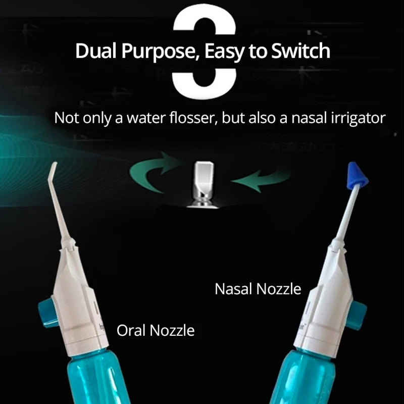 • High Pressure Oral Irrigator :This portable dental tool effectively cleans your teeth, reaching areas that brushings cannot, preventing cavities and gum disease. • Manual Operated :Operated manually, this irrigator allows you to control the flow of water, ensuring a comfortable and efficient cleaning experience. • Portable Design :Designed for convenience, this oral irrigator is easy to carry around, making it perfect for on-the-go dental care. • Durable Material :Made from high-quality plastic, this oral irrigator is built to last, providing long-term service for your dental health. • Versatile Use :Ideal for both adult and children, this oral irrigator is a great addition to any dental care routine, helping to maintain healthy teeth and gums. • Easy to Use :With its user-friendly design, this oral irrigator is easy to use, making dental care a breeze.