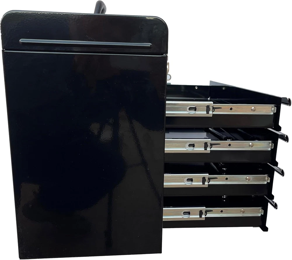 Store New Arrivals Add to Favorite View Feedback Contact Portable Metal Tool Chest with 4 Drawers, 20" 4-Drawer Tool Chest Cabinet with Ball Bearing Drawer Slides, Steel Tool Storage Box Organizer 4004 Black Description Item model number ABC Country of Origin China Top Material Type Steel Number of Pieces 1 Number of Compartments 5 Assembly Required Yes Installation Type Freestanding Frame Material Metal Finish Type Black Shining Powder Coating Included Components Shelves Door Style Sliding Material Steel Metal Style Portable,Box,Lockable Item Weight 21.6 pounds Is Customizable No Lock Type Latch Number of Shelves 4 Number of Drawers 4 Shape Rectangular Special Feature Portable, Durable Mounting Type Floor Mount Color Black Handle Material Plastic Base Type Pedestal Back Material Type Alloy Steel Recommended Uses For Product Tools Product Dimensions 8.6"D x 20.5"W x 14.4"H Size 4 Drawer 4 drawers portable storage tool chest with a comfortable top handle and full-length piano hinge Double latch system with pad lock for extra security ALL ball bearing drawer slides for smooth and efforless open-to-close of the drawers The tool box is made of 22 guage steel metal for being durable and sturdy Product Dimension: 20-1/2"(Width) x 8-5/8"(Depth) x 14-1/8"(Height) Product Description Workington 4-Drawer Tool Chest Cabinet Workington is seeking to provide storage and organizer solutions for both industrial and DIY fields. This tool chests series is mainly developed as 3 variations, as 4 drawers chest, 6 drawer chests as well as 9 drawers chest. All of our chests are equipped with ball bearing slides,which contributes to smooth and quite action when being pulled out and inside. The central cam lock mechanism system is added to secure the cabinet in place. Besides, two comfortable side handles make it being portable. Workington Portable Metal Tool Chest with 4 Drawers, 20" 4-Drawer Tool Chest Cabinet with Ball Bearing Drawer Slides Stable and Sturdy: The tool box is made of 22 guage steel metal for being durable and sturdy Comfortable Grip Side Handle: Comfortable grip side handle for being portable Central Cam Lock Mechanism System: Central cam lock mechanism system for extra security Meet Your Tool Storage Need: Plenty of storage space for the 4 drawers and top compartment Specifications Drawer dimension: 17-5/8(W) x 7-5/8(D) x 2-1/8(H) inch Product dimension: 20-1/2(W) x 8-5/8(D) x 14-1/8(H) inch Key Features Ball Bearing Slides All ball bearing drawer slides for smooth and efforless open-to-close of the drawers Top Grip Handles Comfortable grip top handle for being portable Double Latch System Double latch system with pad lock for extra security Four Drawers Four Drawers for plenty of storage sapce ABOUT US We offer the best prices around on high quality products. Our E-store includes media such as books, movies, music and games while offering electronics, toys, sporting apparel, clothing, tools, general home, garden items and more. SHIPPING We are always working hard to ensure your package arrives as soon as possible. Please understand that some factors like weather, high postal traffic, and the performance of shipping companies are outside of our control. We offer free shipping to the lower 48 states and ship within 2 business days of payment, usually sooner. We do not accept P.O. Boxes. Please provide a physical address. For shipping outside of the continental USA, we only use eBay's Global Shipping Program.The item is shipped to KY and then sent to the rest of the world. International customers are responsible for all duties and taxes. Continue to check out in order to calculate costs for shipping the item to your country. Messages regarding eBay's Global Shipping Program MUST be directed at eBay EXCLUSIVELY. RETURNS We offer a 30-Day Return Policy on items which you are not completely satisfied with. You have the option for a full-refund or an exchange of the item. No returns are available on items shipped outside of the USA. PAYMENT We accept PayPal. CONTACT US This page content is yet to come Please ad us to your favorite seller and visit again later Thank You CUSTOMER SATISFACTION We try our very best to make sure every customer is completely satisfied. If there's a problem, message us! We're happy to help. WE ACCEPT Copyright © 2021 AutoDS. | All Rights Reserved