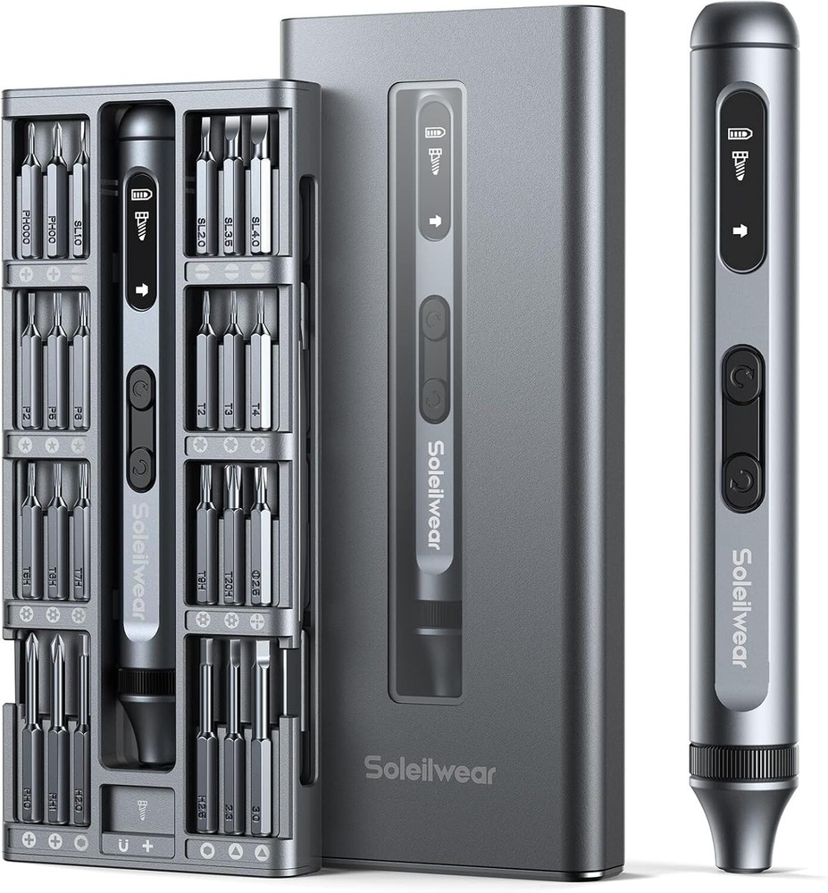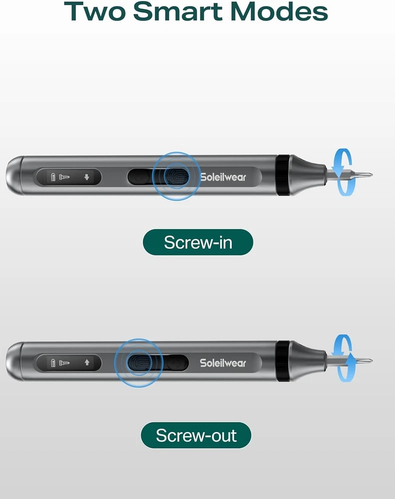 Type: Electric Screwdriver Batteries Required?: Yes Material: Aluminum, S2 Steel Number of Pieces: 52 Item Diameter: 1.1inches Head Size: 1.1inches, 1.77inches Voltage: 5 Volts UPC: Does not apply Batteries: 1 Lithium Polymer Batteries Required. (included) Number Of Items: 52 Power Source: Battery Powered gtin13: Does not apply Color: Grey System of Measurement: Standard (SAE) Battery Cell Type: Lithium Polymer Brand: Unbranded Features: Magnetic, Portable, Dual Mode, Cordless, Magnetic Tip Drive Type: Mixed Set Included Components: 52 Bits Speed: 200 Rpm Package Dimensions: 8.15 X 3.9 X 1.14 Inches Item Weight: 1.1 pounds Batteries Included?: Yes Special Features: Portable, Dual Mode, Cordless, Magnetic Tip Special Feature: Portable, Dual Mode, Cordless, Magnetic Tip
