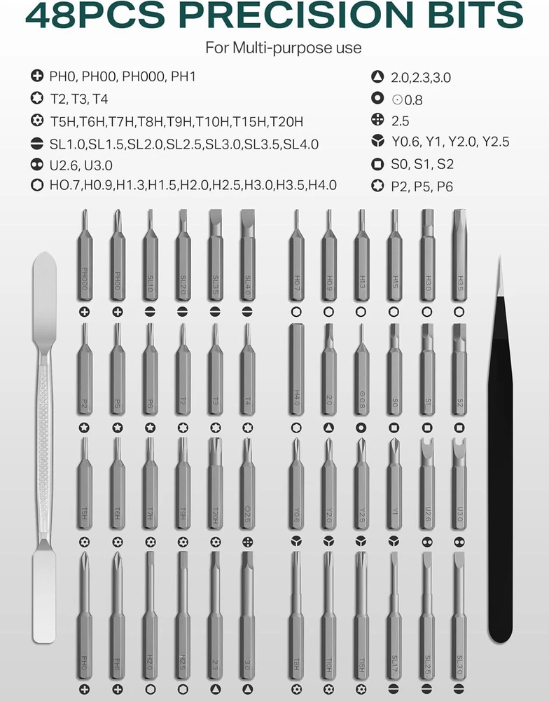 Portable Mini Electric Screwdriver with 48 Precision Bits for Electronics and DIY Repairs