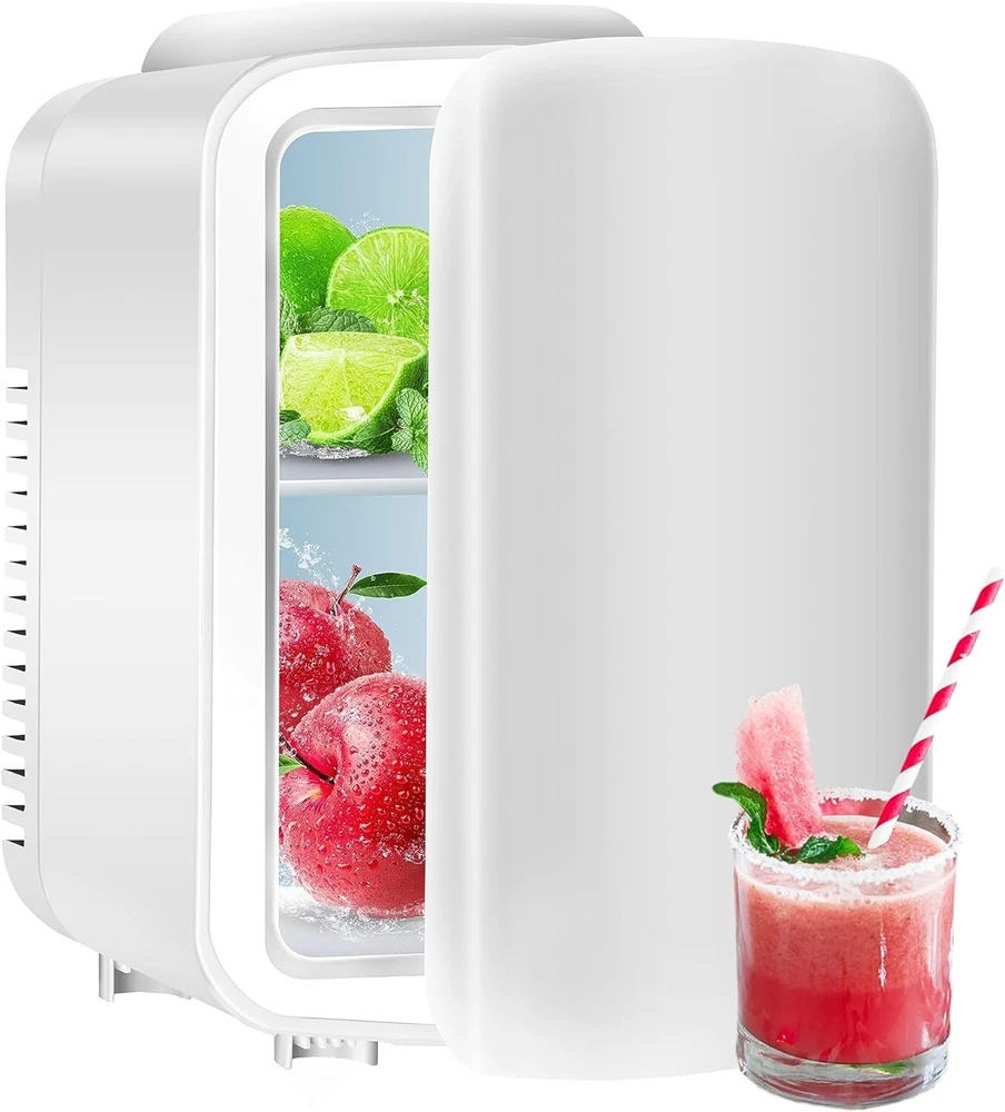 Portable Mini Fridge, 4L/6 Can Cooler and Warmer Compact Refrigerator, White