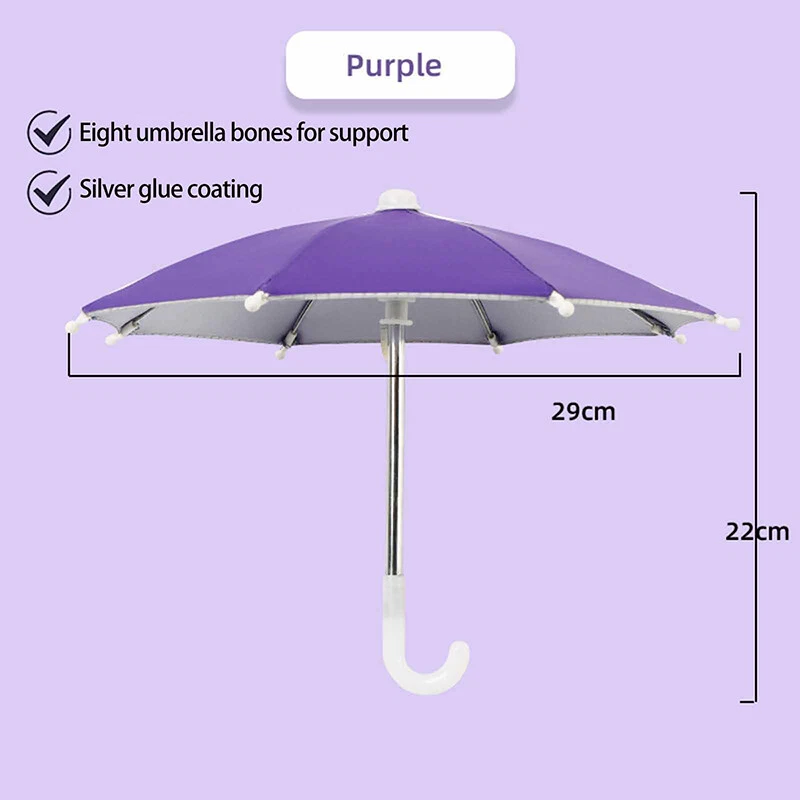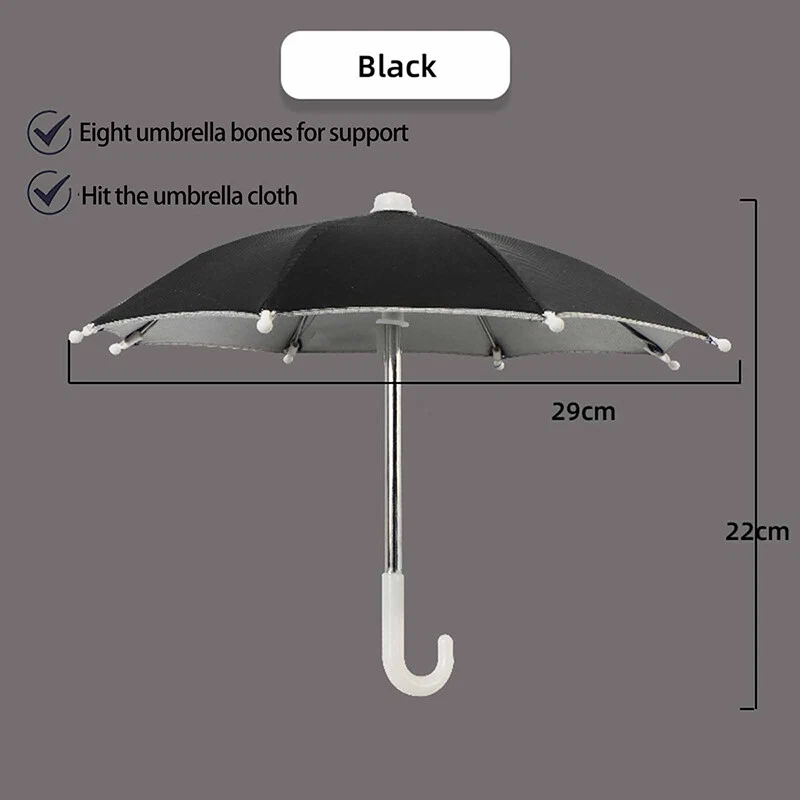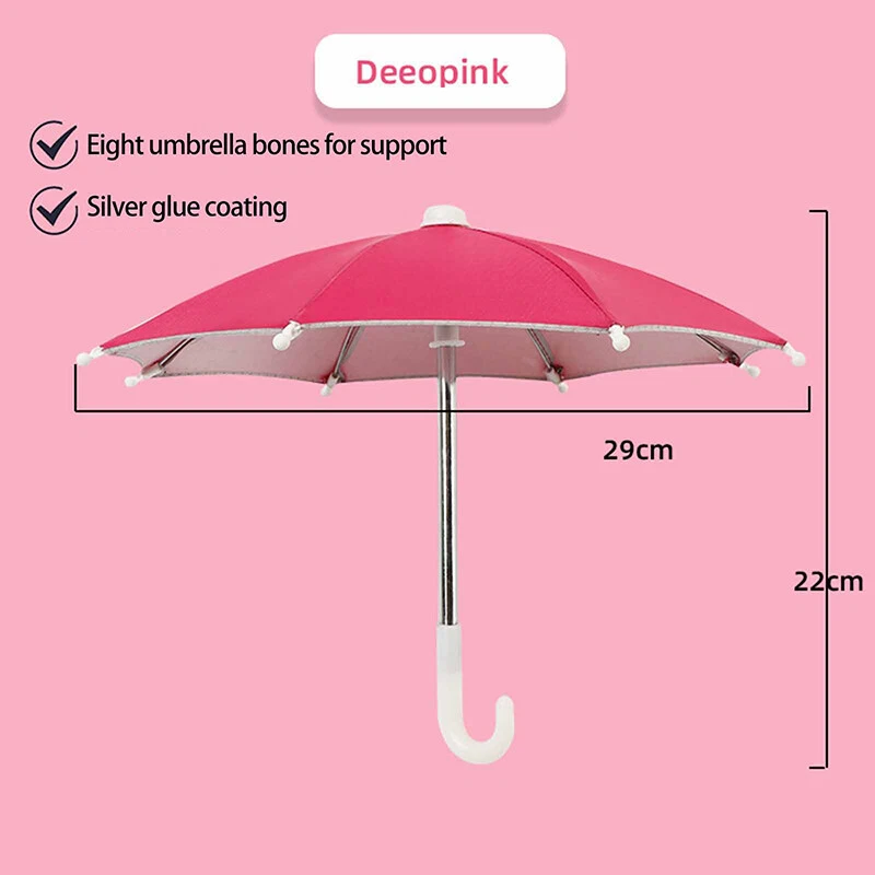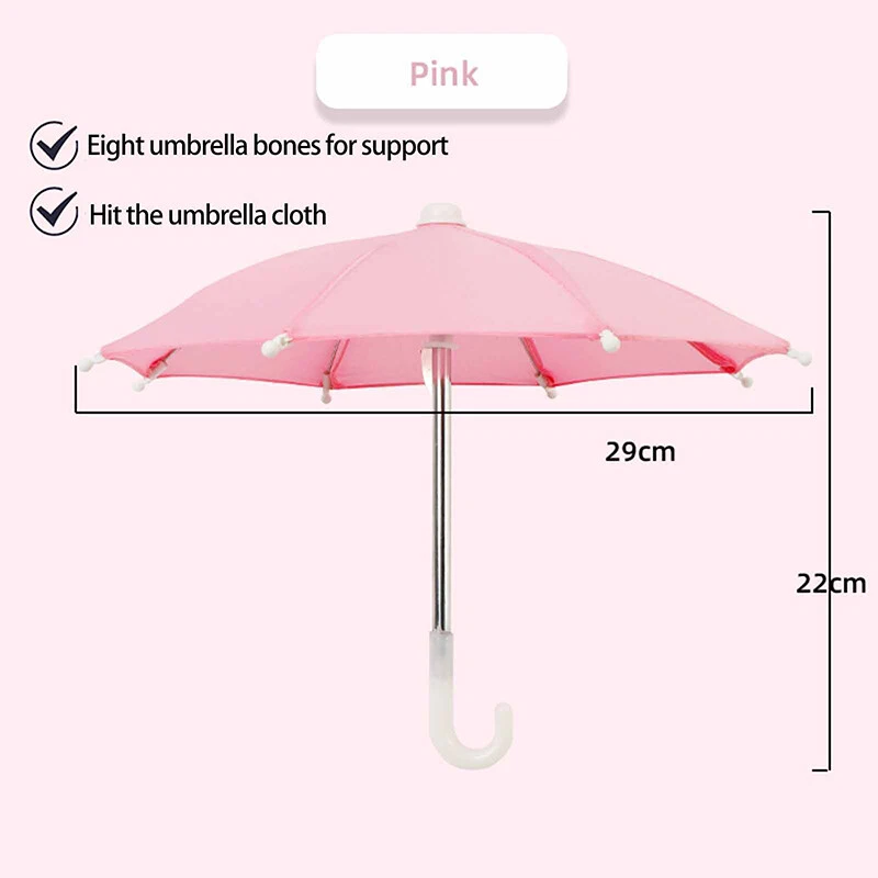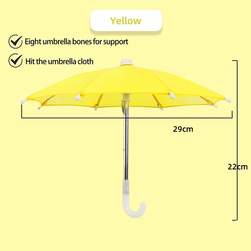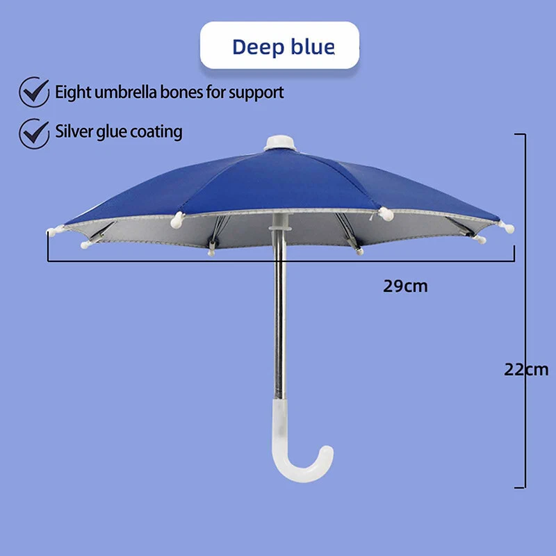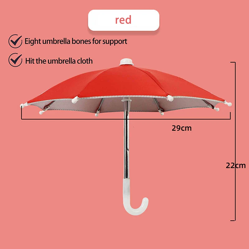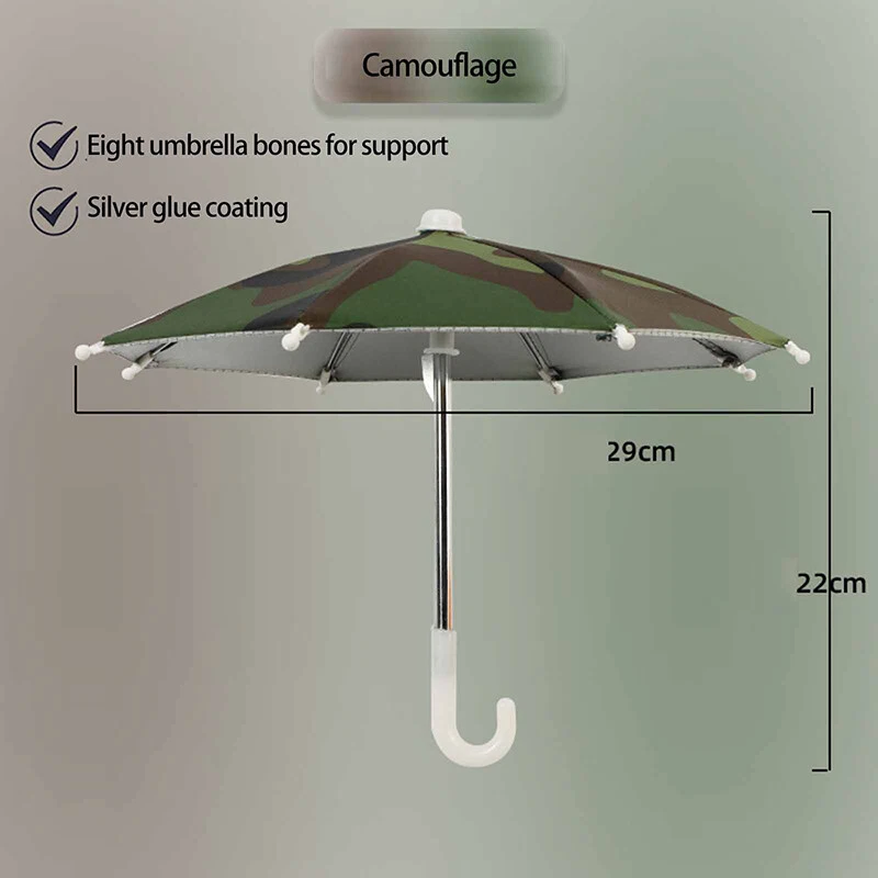 Description: Phone Umbrella: Phone holder, an outdoor sunshade ,light proof umbrella. Material: Environmentally friendly polyester and metal, sturdy and durable. Decorative: A decorative ornament full artistic sense which can be used to decorate the environment and beautify the space. Great gift: Gift for your child for a holiday, birthday reward Light Weight: compact weight makes it perfect traveling. Specification: Material: Polyester+Metal Size:10.63*8.66in/27*22cm Color: Black, Blue, Camouflage, Dark Blue, Green, Orange, Pink, Purple, Red, Rose Red, Yellow Package Includes: 1 Phone Umbrella Notes: Due to differences in lighting and screen settings, the color of this item may vary slightly from the picture. Please allow slight size differences due to different manual measurements. On 5-Dec-2024 at 17:36:37 EST, seller added the following information: