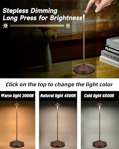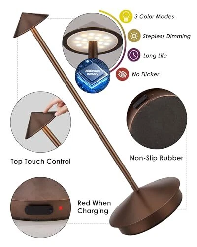 Return Policy Fast Delivery Trusted seller Portable Outdoor Table Desk Lamp, Cordless Led Table Lamp 2 Pack, Small Desk Night Light Dimmable Bar Lamp in Aluminum for Restaurant Home Outdoor, Dimmable 3 Color Modes Product Description 【3 COLORS STEPLESS DIMMING】Our cordless desk lamp has 3 colors light: warm light, warm white light and white light. Click on the top of the light to switch light colors. Long press to adjust the brightness of the light (10%-100%). It will automatically restore the last light brightness when you turn on the bedside table light again. 【CORDLESS LED TABLE LAMP】Battery operated lamp has a built-in 6000mAh high-quality rechargeable battery, has passed the safety certification, Fast charge time about 3 hours, Work time 15 to 40 hours depending on brightness. Get rid of the shackles of traditional wired desk lamps, Your outdoor table lights can be placed anyw. 【ALUMINUM ALLOY TABLE LAMP】: New fast Charge technology, Recharge about 3h; We only uses the highest-grade materials, to provide safe and reliable products to customers. This modern cordless lamp is made of high-quality aluminum alloy metal, scratch-resistant and durable. Dimensions Ø 4.33 x 11.81 inch. 【MULTI-SCENE USE】】Our cordless lamp can match almost any scene and style. Elegant and exquisite shape, very fashionable and warm light, giving you a warm atmosp. Small table lamp is suitable for bedroom, bedside table, office, restaurant, cafe, bar, hotel, outdoor patio lighting, etc. Can be given as a gift to your family and friends. 【PREMIUM CUSTOMER SERVICE】- We will offer one year warranty. If t is any problem, please contact us via email directly for repair, refund or exchange. Shipping Returns Payment Shipping Shipping is FREE to all addresses other than APO/PO boxes in the lower 48 states. All our stock ships from US-based warehouses. Shipped via USPS or UPS (depending on location and package weight) Unless stated otherwise, all orders will ship within 24-72 hours of your payment being processed. Check our feedback to see the great reviews of FAST shipping we offer. Returns Seller does not accept returns Payment We currently accept payment via eBay managed payments only. Once payment is cleared, we will dispatch your shipment within 1-3 business days. Please refer to the "Shipping" tab for more information regarding shipping speed to your destination.