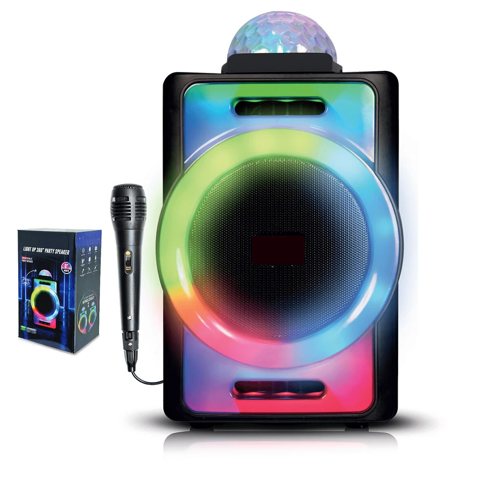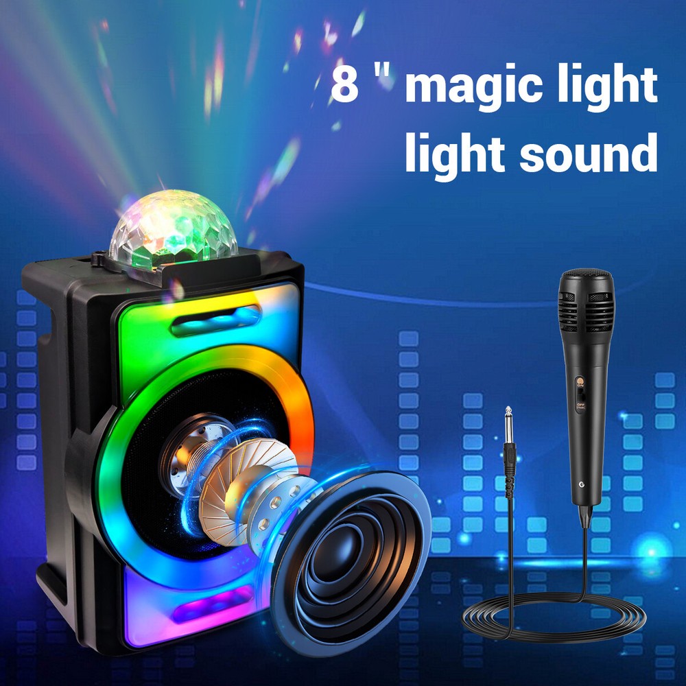 Portable Party Speaker w/ 8-in Woofer 360° Disco Light, Wired Mic,FM/USB/TF Mode 🌟 FEATURES 360° Disco Lights – Multi-color LED lights sync to the beat for a vibrant party atmosphere. Powerful 8" Woofer & Tweeter – Delivers deep bass and crisp highs for immersive 360° audio. WaveSync Technology – Wirelessly connect two speakers for true stereo sound. All-in-One Playback – Supports Bluetooth, USB MP3, AUX input, and FM radio for versatile connectivity. Rechargeable & Portable – 3000mAh battery provides up to 8+ hours of playtime; integrated handle for easy transport. Karaoke-Ready – Includes a wired microphone for singing, speeches, and announcements. User-Friendly Controls – Intuitive panel for adjusting volume, playback, and lighting modes. Dynamic Sound & Light Combo – Perfect for parties, gatherings, and everyday entertainment. 📈 SPECIFICATIONS Driver: 8" Woofer with Tweeter Output Power: 50W RMS Frequency Response: 50Hz–20kHz Connectivity: Bluetooth, USB MP3, AUX Input, FM Radio Battery: 3000mAh Rechargeable (3.7V) Charging Port: Micro USB Microphone Input: Wired Microphone Included Lighting: 360° Multi-Color Disco Lights Control Panel: Volume, Playback, and Input Controls Portability: Integrated Handle 📦 WHAT'S INCLUDED 1 x ABX-890R Speaker 1 x Wired Microphone 1 x MicroUSB Charging Cable 1 x User Manual Payment Return Warranty Shipping Contact us Payment 1. We accept payment via PayPal. Use PayPal at checkout to pay with credit or debit. 2. Immediate payment is required. Shipping will be arranged within 1 business day once payment is cleared. Return 1. We stand behind our items and offer 60 days warranty. All items are in new and working condition unless specified otherwise elsewhere in the description. 2. All Returns - defective or otherwise - MUST BE PREAUTHORIZED to guarantee refund or exchange. Please contact us to get an authorization and return address. 3. Buyer agrees to pay for the cost of re-shipment for undeliverable or wrong addresses. 4. Buyer is responsible for Return Postage as well as a 20% restocking fee if return/replacement is not a result of our mistake such as wrong item. 5. Replacement or Refund will be made upon receipt of the returned item. Please include tracking number so we can process ASAP. If you do not wish to wait for a replacement, please repurchase the item. 6. ALL REFUNDS will be processed via PayPal. Please double check via PayPal history and transaction for confirmation. PayPal will send it back to whatever you used to pay within 3-5 days. Warranty The warranty shall not apply to the following circumstances: a) Damage caused by undue ware&tear, misuse, improper installation or operation, neglect, accidents. b) Damage caused by natural disaters, flood, fire, lightning or pollution. c) If item was opened, any parts removed or repaired by any unauthorized person. Shipping FREE SAME BUSINESS DAY MONDAY- FRIDAY SHIPPING FROM USA. All orders and payments received before 4PM EST (1PM PST) will be shipped the same business day. All other orders within 1 business day. No shipping on Weekends or US Public Holidays. No responsibility for any custom duty Shipping information will be updated when available. Contact us We have always been trying to provide the best service and reliable products for every customer, however, accident may happen sometimes, please contact us to resolve any issue before leaving a negative feedback.