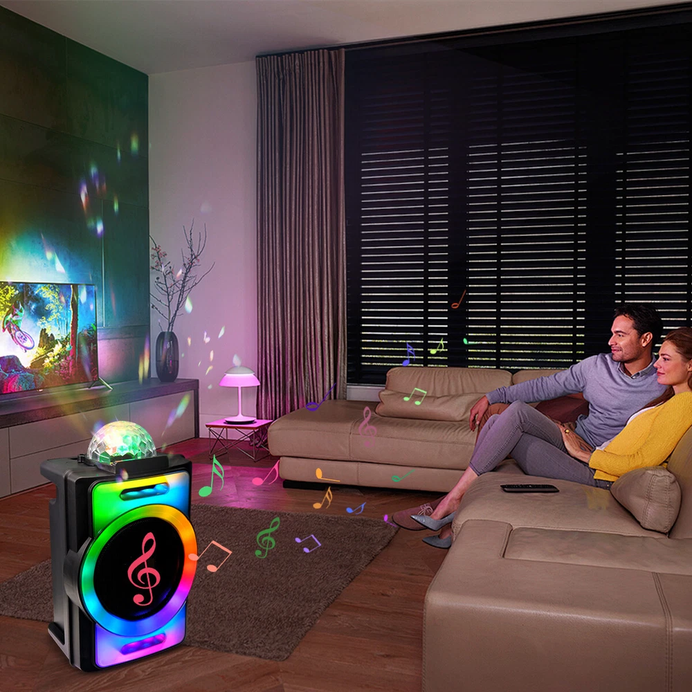 This speaker is a total game-changer for parties! The bass is deep and punchy, the lights sync perfectly with the music, and the wireless pairing option makes the sound huge. Love that it lasts for hours on a single charge, and the wired mic is great for karaoke. Super easy to use with Bluetooth, USB, or even FM radio—definitely worth every penny!