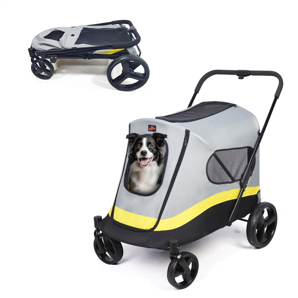 Portable Pet Stroller Dog Cat Cage Jogger Travel Folding Carrier Rainproof Cover Portable Pet Stroller Dog Cat Cage Jogger Travel Folding Carrier Rainproof Cover US SELLER, FAST SHIPPING! Features: Great for injured, sick, elderly, paralyzed, handicapped dogs, dogs with mobility issue. One-click folding mechanism make it easy to operate and fold the trolley in seconds. Portable for leisure walking in the street, shopping, outdoor sports, jogging, hiking. The size suitable for medium to large dog breeds, enjoying outside scene and relax. Constructed of 600D oxford cloth fabric, remains durable, not easy to tear or scratch. Built with strong metal frame that enhances its stable structure, giving more safety. The front omni-directional wheels for shock absorption, fits for all types of road. The rear wheels designed with safety brake system, quickly locks the stroller in place. Zippered opening in the front and back for easy access, come in and go out freely. Enables dogs can enter the stroller by the back door, come out from the front. Breathable mesh on each side, keeps air ventilation and safe, offering high visibility. Sunroof-style mesh panel opening on the top, allowing pets to stick their head out. Simply assemble together, foldable design for outdoor transportation and storage. Equipped with a safety collar hook inside to attach to dogs’ harness, keep secure. Comes a rain cover that provides additional protection for pets against rains, winds. The clear cover to shield the pet from getting wet while still allowing to see outside. Specifications: Type: Pet Stroller Model: 4-Wheel Pet Stroller Feature: Foldable, 4 wheels, breathable Suitable for: Medium to large dog breeds Material: 70% Iron Pipe + 20% 600D Oxford Cloth + 10% ABS Plastic Color: Grey & Light Yellow & Black Net Weight: 10kg/ 22.05 lbs Product Dimension: L * W * H total 74x90x103cm/ 29.13x35.43x40.55 inch Folding Size: L * W * H total 74x90x36cm/ 29.13x35.43x14.17 inch Package Included: 1 x Large Dog Stroller Pushchair 1 x Rainproof Cover 1 x Instruction Guide Payment Delivery details Terms of sales About us Contact us Payment 1.We accept payment by credit card, paypal, payoneer. 2.Upon on payment, please confirm your shipping address. Delivery details 1. All of our products are brand new. 2. All Mirror have passed drop test over 1.2m and quality inspection, ensures the mirror was shipped in good condition before shipment. Terms of sales 1.We are located in NJ, CA ,all the items will be shipped via USPS, UPS Ground, Fedex Ground with tracking number provided. 2. We cannot ship to Alaska, Hawaii & Puerto Rico Addresses. About us About Wisfor At Wisfor,we provide high quality LED bathroom mirrors,focus on the development and innovation of mirrorsand our company has over 10 years backed with professional service experience, and exports products to more than 130 countries around the world. There are severial series of mirrors, Bathroom Mirror with Light, RGB Frontlit &Backlit LED Mirror, Metal Frame Mirror,Decorative Wall Mirror,ect. And many shapes, rectangle, round, oval, and so on.We always focus on the development and innovation of high-quality LED bathroom vanity mirror, to meet your demand and to elevate personality and design tastes. Contact us 1. If you are satisfied with the transaction could you pls leave us a positive feedback 5-star that we will be appreciated. 2. Normally your email would get replied within 24 hours (Business Hours) and your issue will be followed up carefully till we 've reached an agreement. 3. If you have any questions or suggestions before opening a case or dispute ,or leaving any neutral or negative feedback, please contact us first,we will try our best to resolve your problem. Brand BINGOPAW Dog Size L Features Foldable, Shock Absorber, Internal Tether Type 4-Wheel Pet Stroller MPN XJW92KH6 Model Foldable Dog Jogger Wagon Stroller