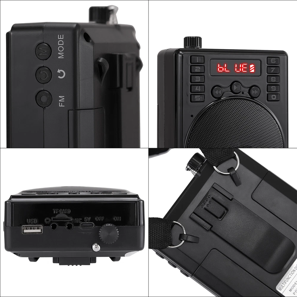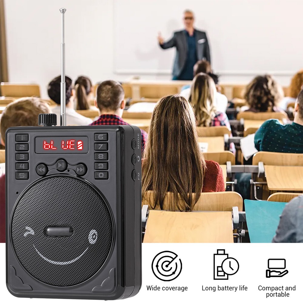 Product Information: Brand:Unbranded Color:Black Product size: 12cm*9cm*5cm Material: ABS Bluetooth model: BT-92 Function: Bluetooth BT connection, USB flash drive, FM, TF card Input voltage: DC5V 0.5A Frequency response: 80HZ --12Khz Output power: 3w Working voltage: 3.5v-4.7v Battery model: 18650 3.7V 800MAH * 2 Charging time: 2-3 hours Usable time: 4-6 hours Product Dimensions: Length (in.):4.72 Width (in.):3.54 Height (in.):1.97 Package Size: Length (in.):5.57 Width (in.):5.12 Height (in.):2.17 Weight (lbs.):0.728 Product features: 1.High quality speakers, stunning sound effects 2.Bluetooth wireless connection 3.Supports wired microphone input 4.Multiple input methods: Bluetooth, FM, TF card U Disk 5.Lightweight and portable design, comfortable carrying str ap Application scenario: Scenes such as speeches, teaching, conferences, outdoor activities, and family entertainment Package include: Wireless amplifier * 1 Wired microphone * 1 18650 battery (800MAH) * 2 TYPE-C charging cable * 1 Hanging rope * 1- English manual * 1