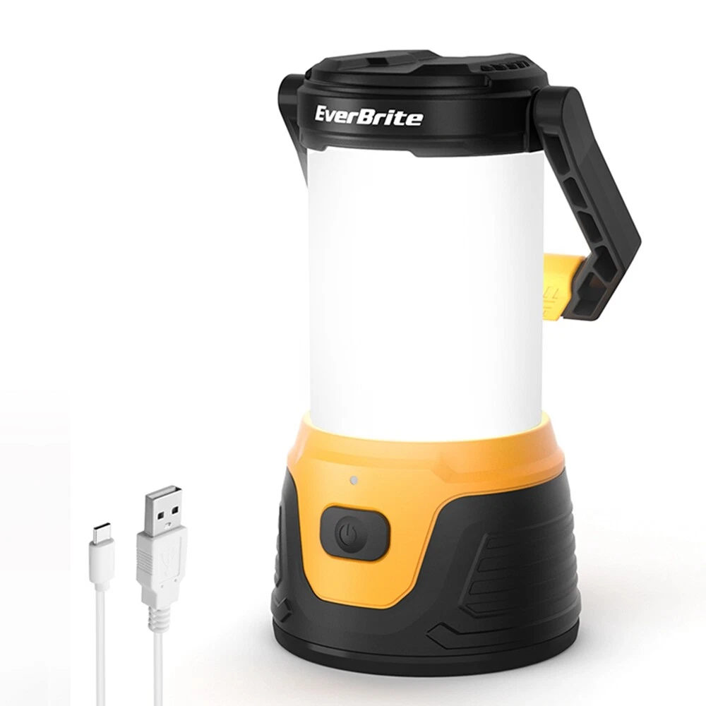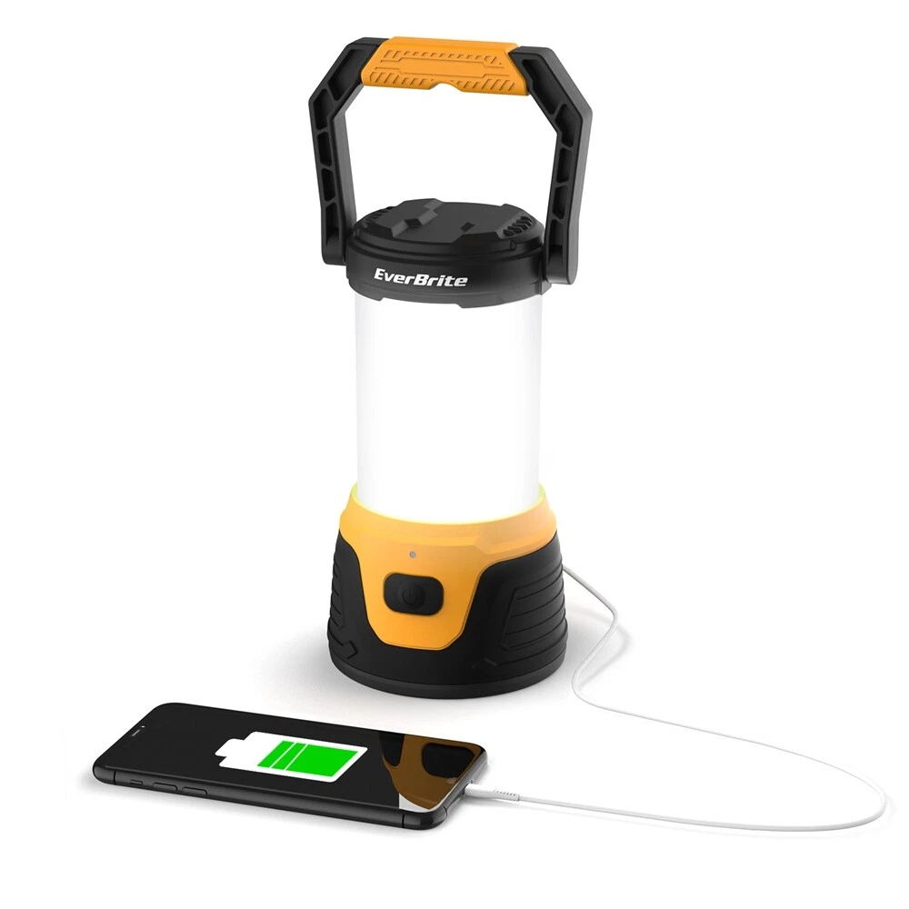 5 Lighting Mode& Memory Function : This EverBrite camping lantern has 5 lighting modes- low, med, high, eco, and strobe mode; Select the mode which you need by pressing the switch button, any mode lights more than 5 seconds can turn off the tent light directly by press the switch, and it will memorize the last lighting mode when next use. Super Bright& 360°Coverage : The Lantern Flashlight has built-in 20 LED light bulbs, with a brightness of up to 1000 lumen on high mode; This camping lantern provides all-around lighting for your camping, 360° lighting area! Rechargeable& Power Bank : The lantern comes with a USB and Type-c data cable; when you are outdoors, you can charge it by car or laptop's USB Port; Built-in 4.4 Ah Battery, 8 hours run time in low mode; You can also use it as a portable power bank for your phone or others electronic devices, that is so convenient for you outdoors or in other emergencies. Easy to Carry/ Use : Adopts comfortable handle material, convenient for portable use; The widened diameter of the base ensures stability when placing the camping lantern on a flat floor or table; You can also hang it where you need, it will provide 360° lighting coverage. High Practicability : This lantern flashlight is perfect for Hurricane Emergencies, Hiking, Camping, Home, and More; This light will burst with power when needed, and you can prepare one for future contingencies. (Note: Lantern doesn't light on while charging, please use it after charging) Product Dimensions ‎4.01"L x 4.01"W x 10.43"H Battery Description ‎Lithium-Ion Item Weight ‎18.7 Ounces Mounting Type ‎Tabletop Mount Number of Batteries ‎2 Lithium Ion batteries required. (included) Voltage ‎5 Volts Manufacturer ‎HANGZHOU GREATSTAR INDUSTRIAL CO.,LTD Part Number ‎041030 Item Weight ‎1.17 pounds Country of Origin ‎China Item model number ‎E041030AB Batteries ‎2 Lithium Ion batteries required. (included) Area Lighting Classification ‎IP44 Power Bank Function: It can charge your phone or other electronic devices in emergency. Brightness up to 1000 lumen, provides 360° lighting area! Convenient to use: Hanging/ Seated/ Portable 5 Lighting Modes- Low/ Med/ High/ Eco/ Strobe Built in 4.4 Ah Battery, 8 hours run time in the low mode